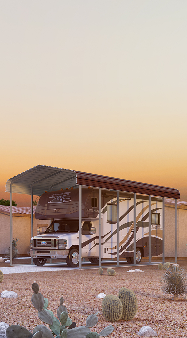 Protect your RV, camper or motorhome with a steel RV cover. Rugged construction and simple assembly keep your RV covered!