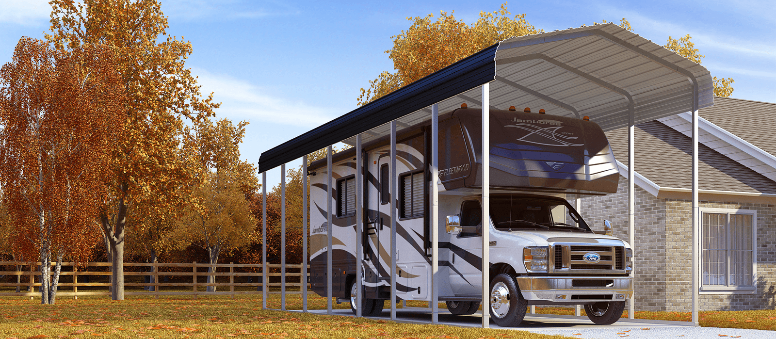 Protect your RV, camper or motorhome with a steel RV cover. Rugged construction and simple assembly keep your RV covered!