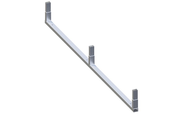 2" x 3"; 15GA; 98.5" long with 3 pins & 3 anchor holes. Also used for VTF-423-B, 7B or 8B. A swaged base rail extension can be inserted into either end of a starter base rail.4' OC 8'2" Starter Base Rail