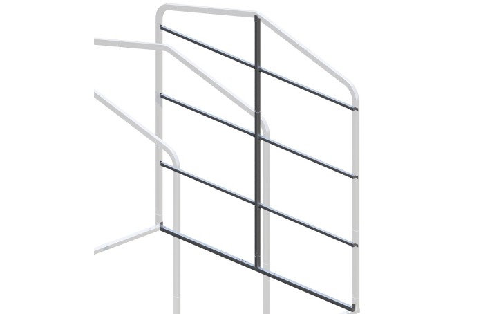 2"sq. 15GA frame components. For 2" x 3" frame structures. Installs inside the rear truss section. Includes base rails, T-connector, center vertical post, horizontal girts for vertical sheet metal application, brackets, frame screws and rebar ground anchors.Back Enclosure Frame Kit - 12'W x 10'H - With Girts for Vertical Sheet Metal