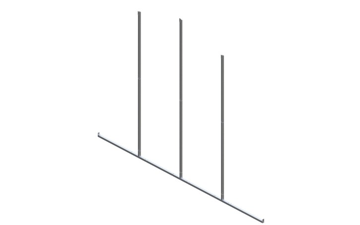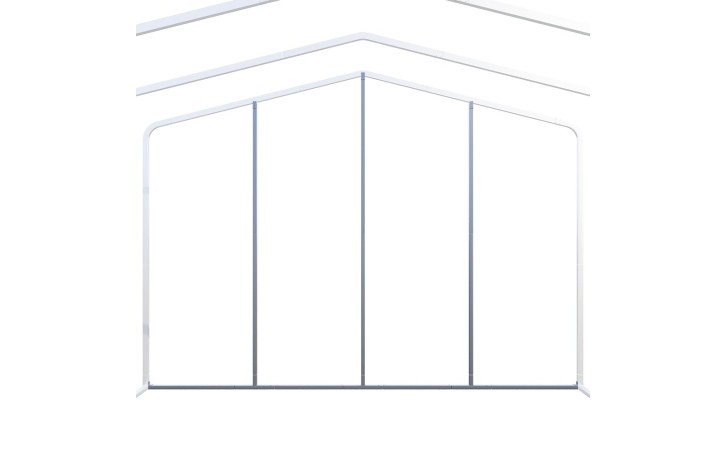 2"sq. 15GA frame components. For 2" x 3" frame structures. Installs inside the rear truss section. Includes base rails, T-connectors, vertical posts, brackets, frame screws and rebar ground anchors.Back Enclosure Frame Kit - 20'W x 12'H - No Girts for Horizontal Sheet Metal