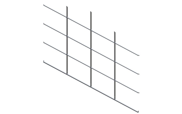 2"sq. 15GA frame components. For 2" x 3" frame structures. Installs inside the rear truss section. Includes base rails, T-connectors, vertical posts, horizontal girts for vertical sheet metal application, brackets, frame screws and rebar ground anchors.Back Enclosure Frame Kit - 24'W x 12'H - With Girts for Vertical Sheet Metal