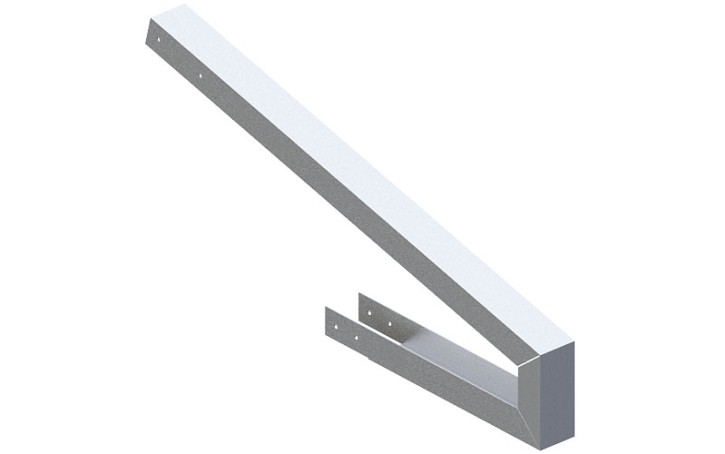 16 GA; 10 holes. Use with 2" x 2" and 2" x 3" steel tube to create a 12" soffit overhang at the eave corners. Bracket ships flat and must be folded to fit.-