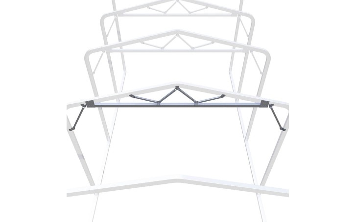 2"sq. 15GA collar tie and 1.5"sq. 18GA web components. For 2" x 3" frame structures. Installs in the peak and attaches to the peak and rafter of the interior frame trusses. Includes collar tie and web/knee brace frame components, brackets and screws.Truss Brace For 12'W Frame - Webbed High Load (Type 3)