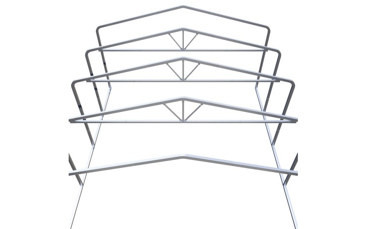 2"sq. 15GA collar tie and 1.5"sq. 18GA center vertical & web components. For 2" x 3" frame structures. Installs in the peak and attaches to the peak and rafter of the interior frame trusses. Includes collar tie and (1) center vertical and (2) webbed frame components, brackets and screws.These are photos of style structures shared with us by the VersaTube community.