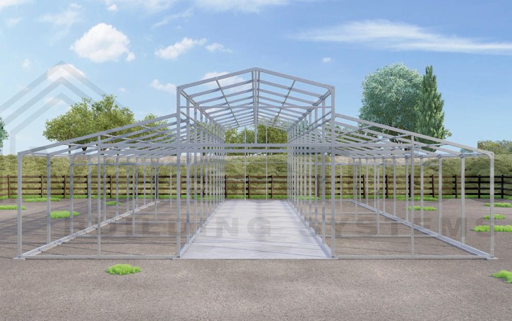 Highlander Series DIY horse barn frame kit offers the ultimate in safety, comfort and protection for your precious investment – your horses – in a traditional center-aisle-with-wings design ready for your exterior and interior finishing choices.
