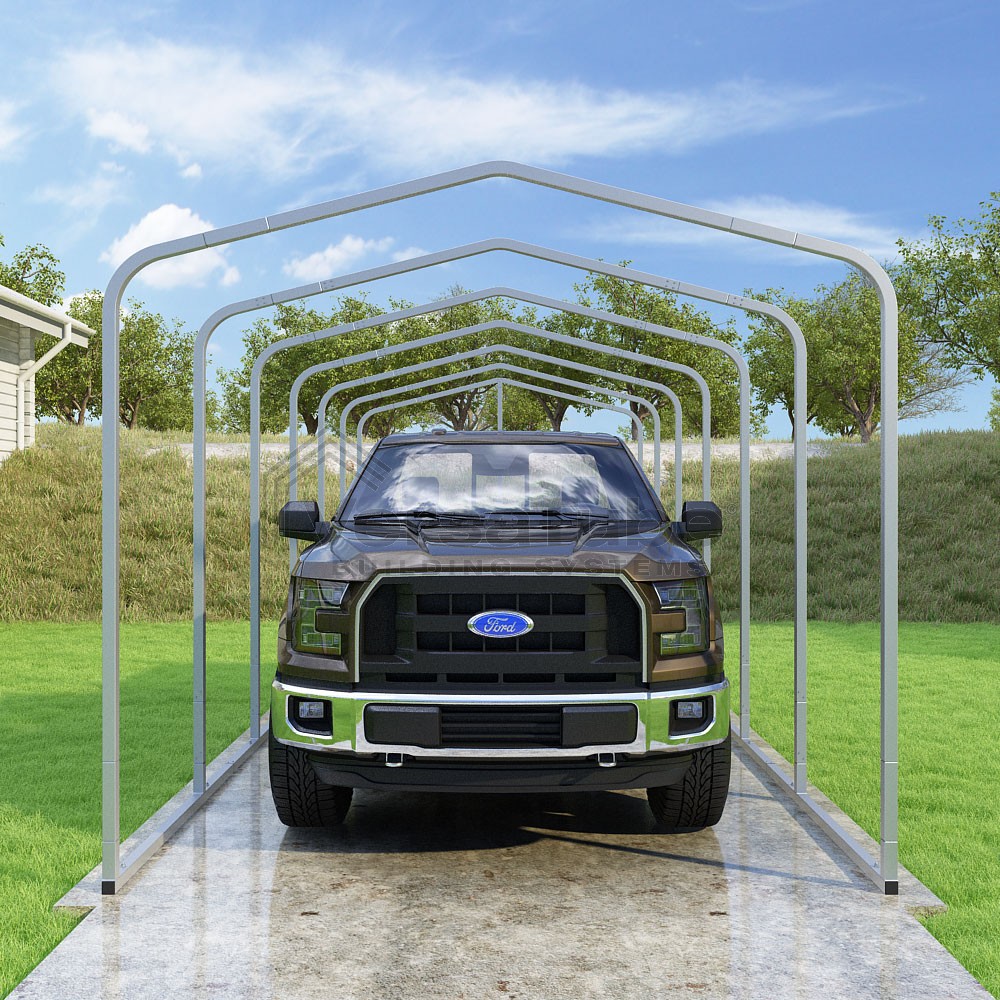 Classic Series DIY carport frame kit is designed for horizontal sheet metal application, resulting in a more cost-effective shelter or canopy solution. The rounded bends allow the sheet metal to naturally roll over the sides ensuring additional protection from elements entering from the sides.