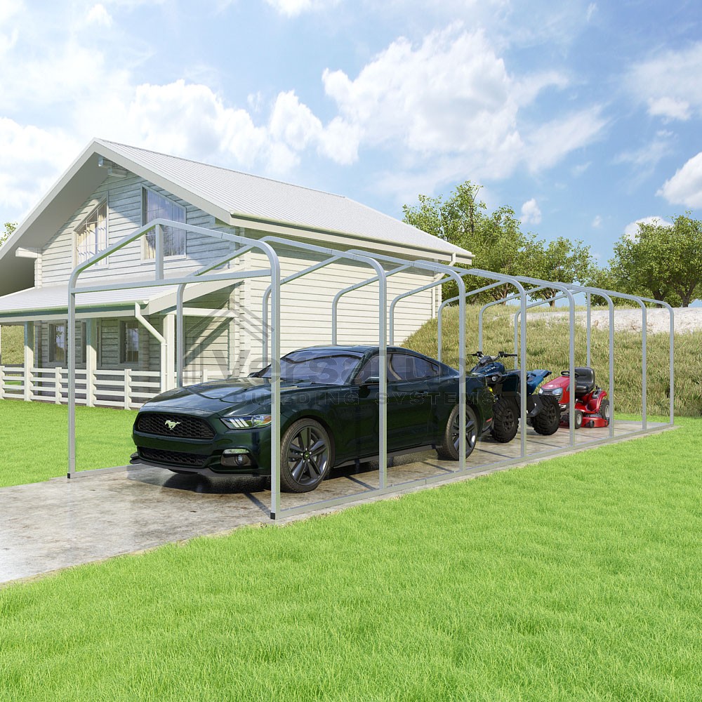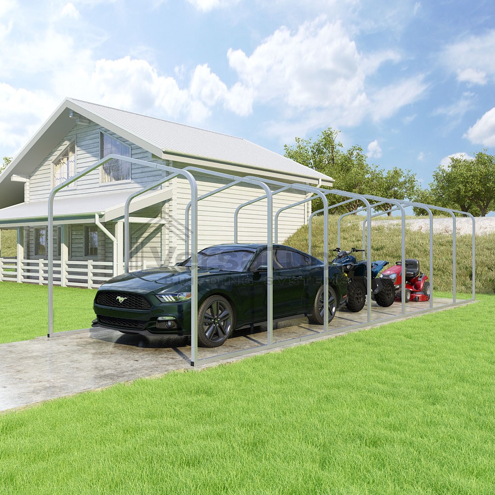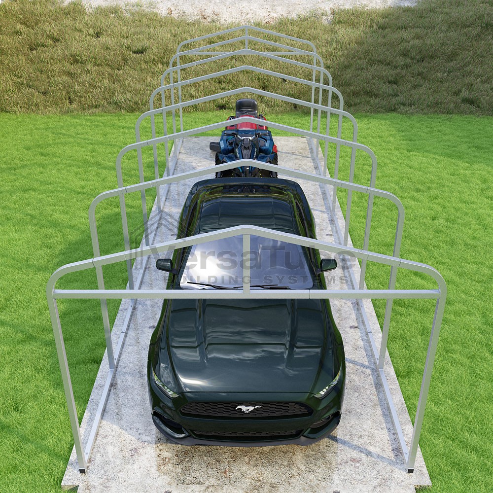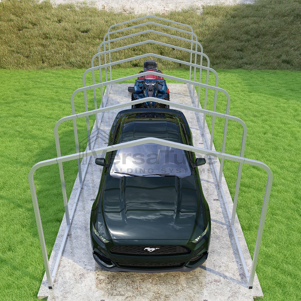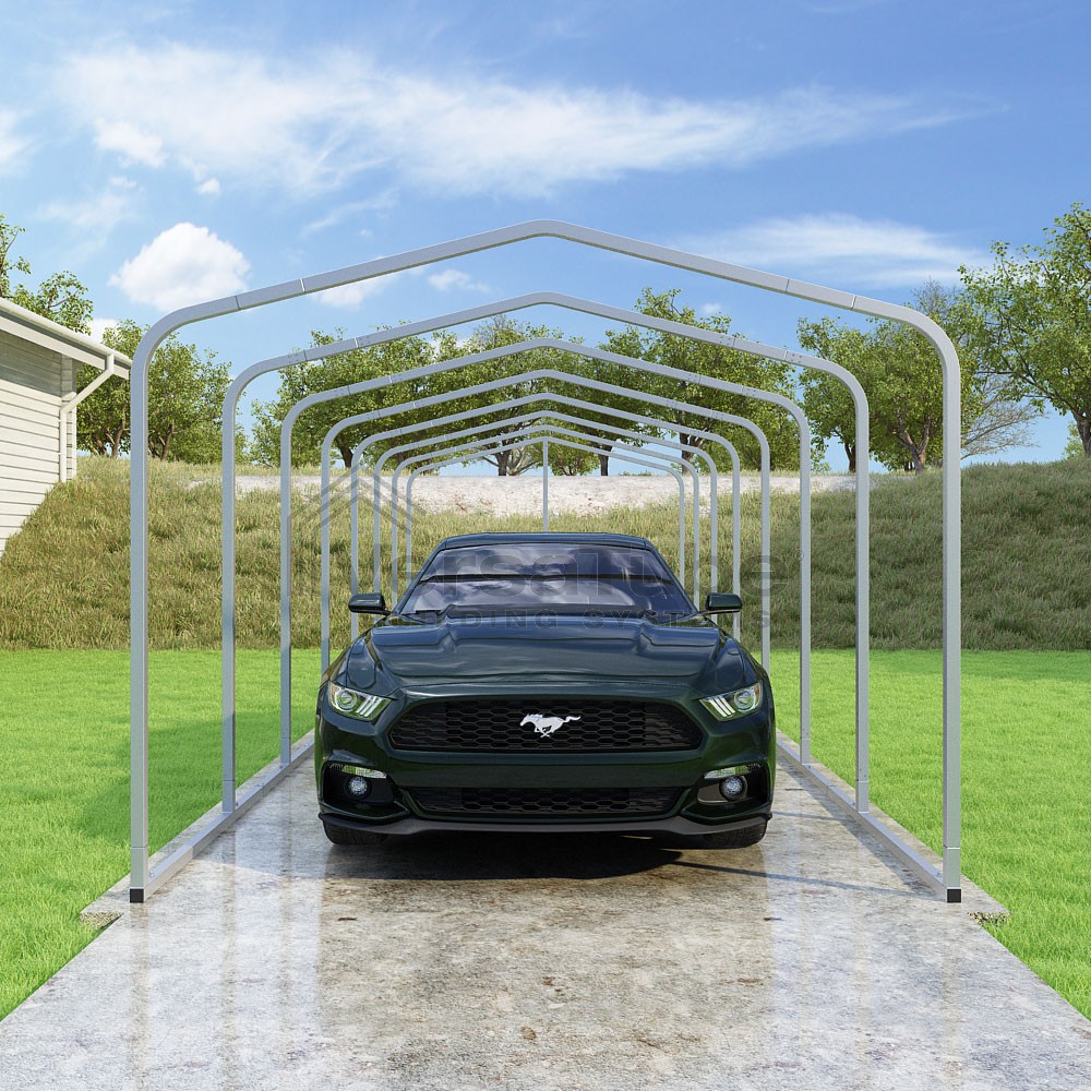 Classic Series DIY carport frame kit is designed for horizontal sheet metal application, resulting in a more cost-effective shelter or canopy solution. The rounded bends allow the sheet metal to naturally roll over the sides ensuring additional protection from elements entering from the sides.