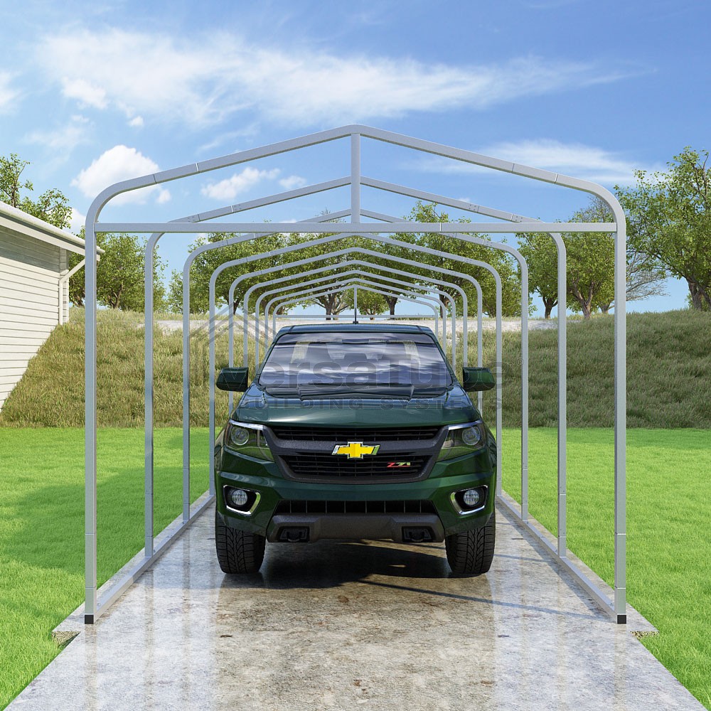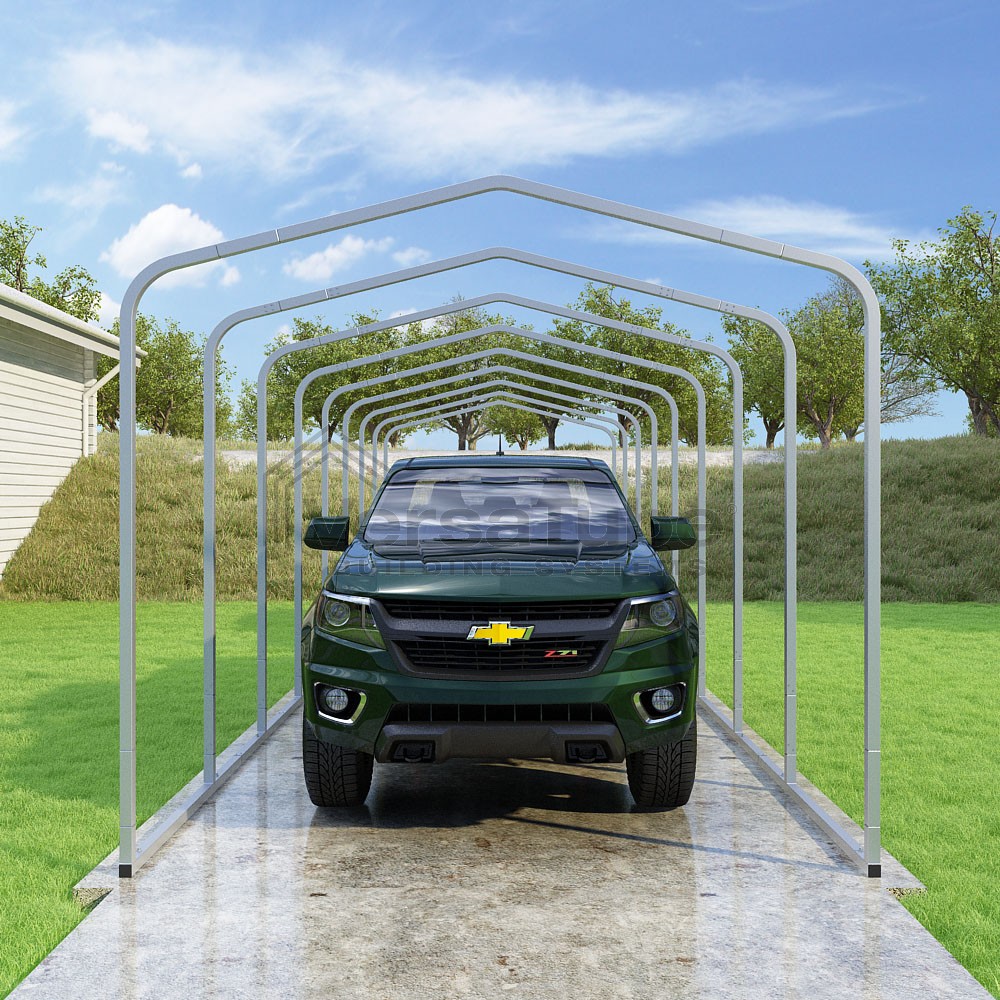 Classic Series DIY carport frame kit is designed for horizontal sheet metal application, resulting in a more cost-effective shelter or canopy solution. The rounded bends allow the sheet metal to naturally roll over the sides ensuring additional protection from elements entering from the sides.