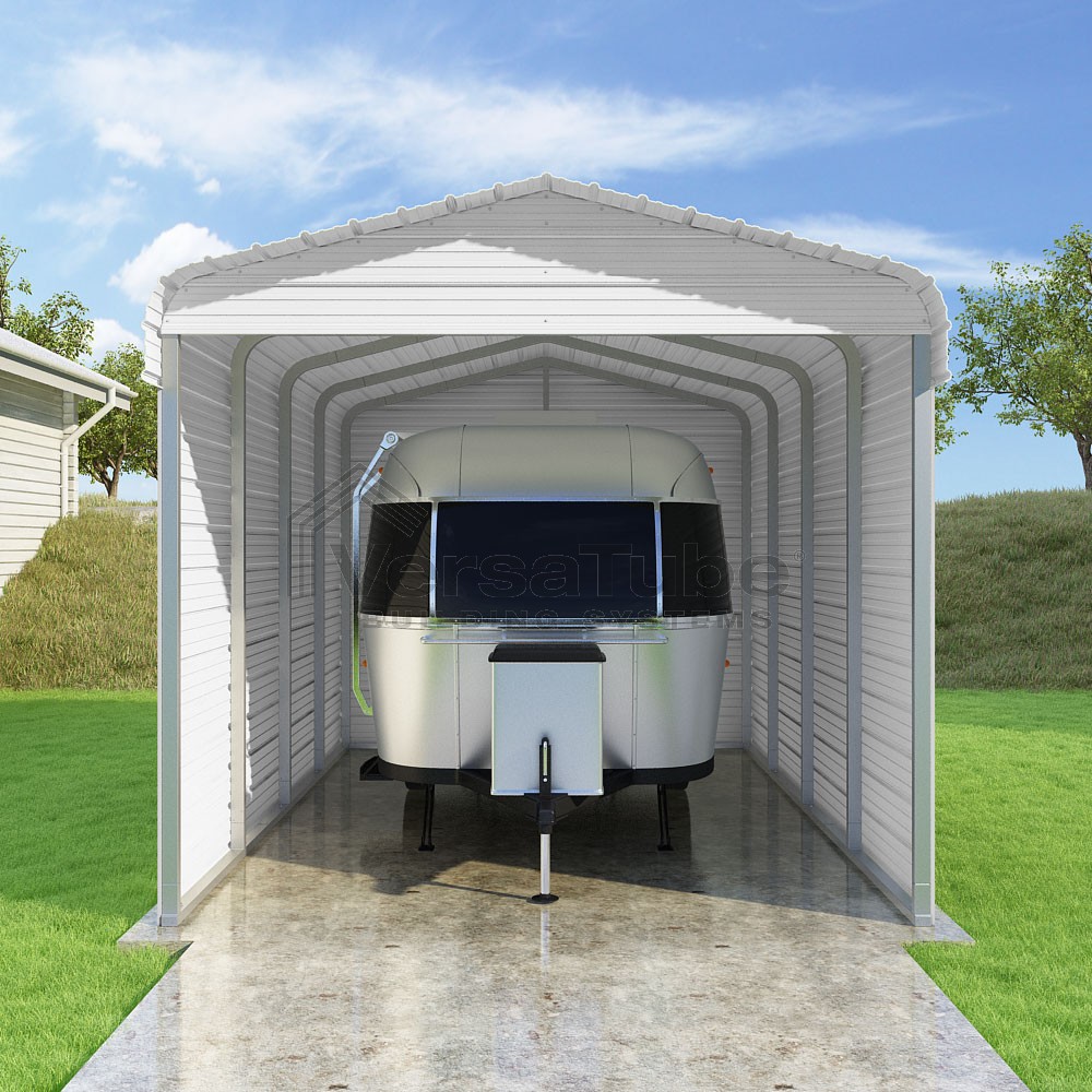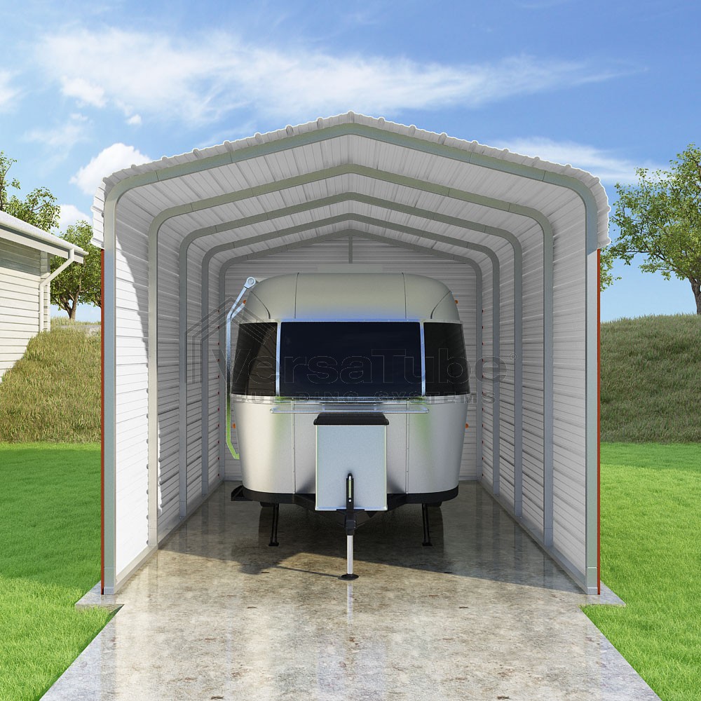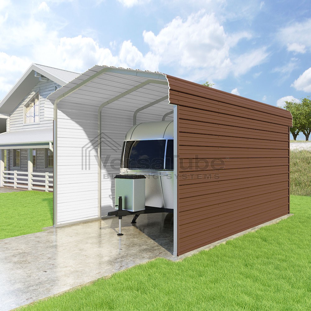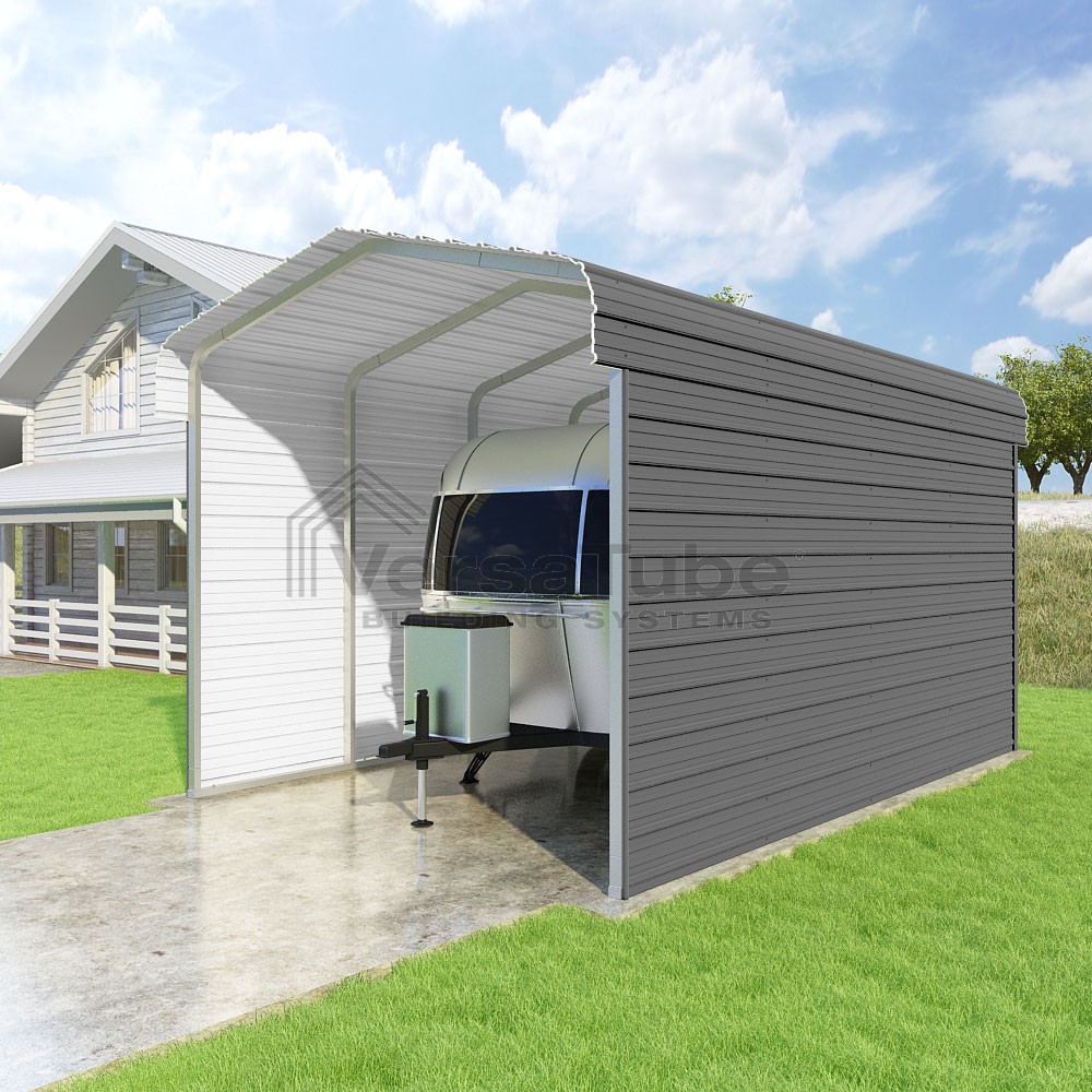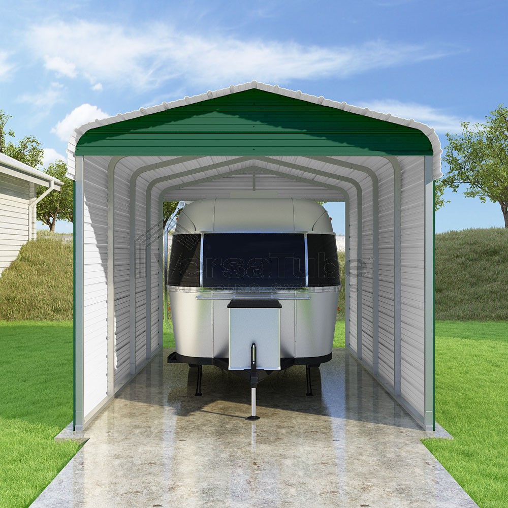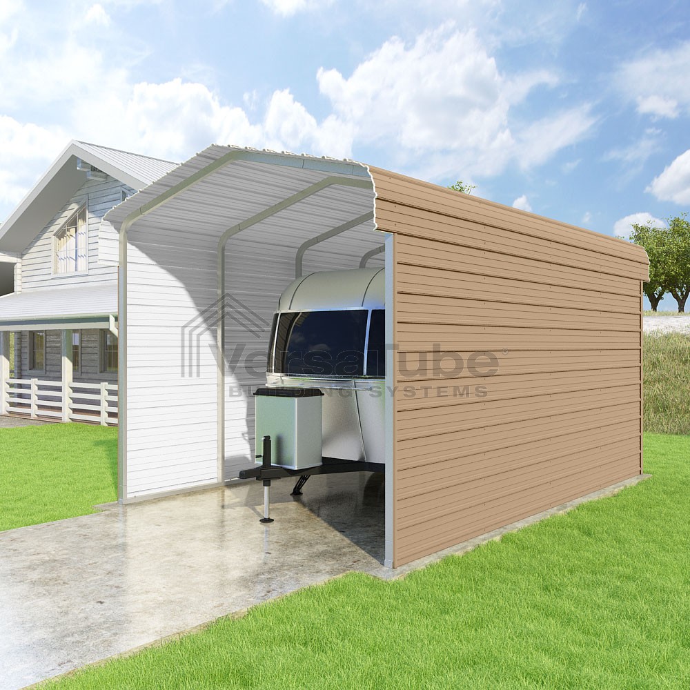 Classic Series DIY carport kit features horizontal application of sheet metal panels with the extra protection of rounded eaves.
