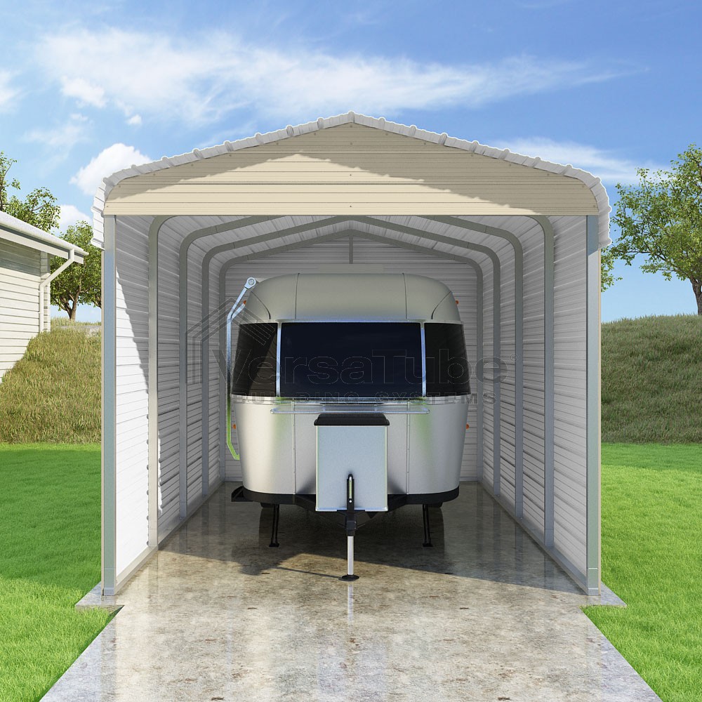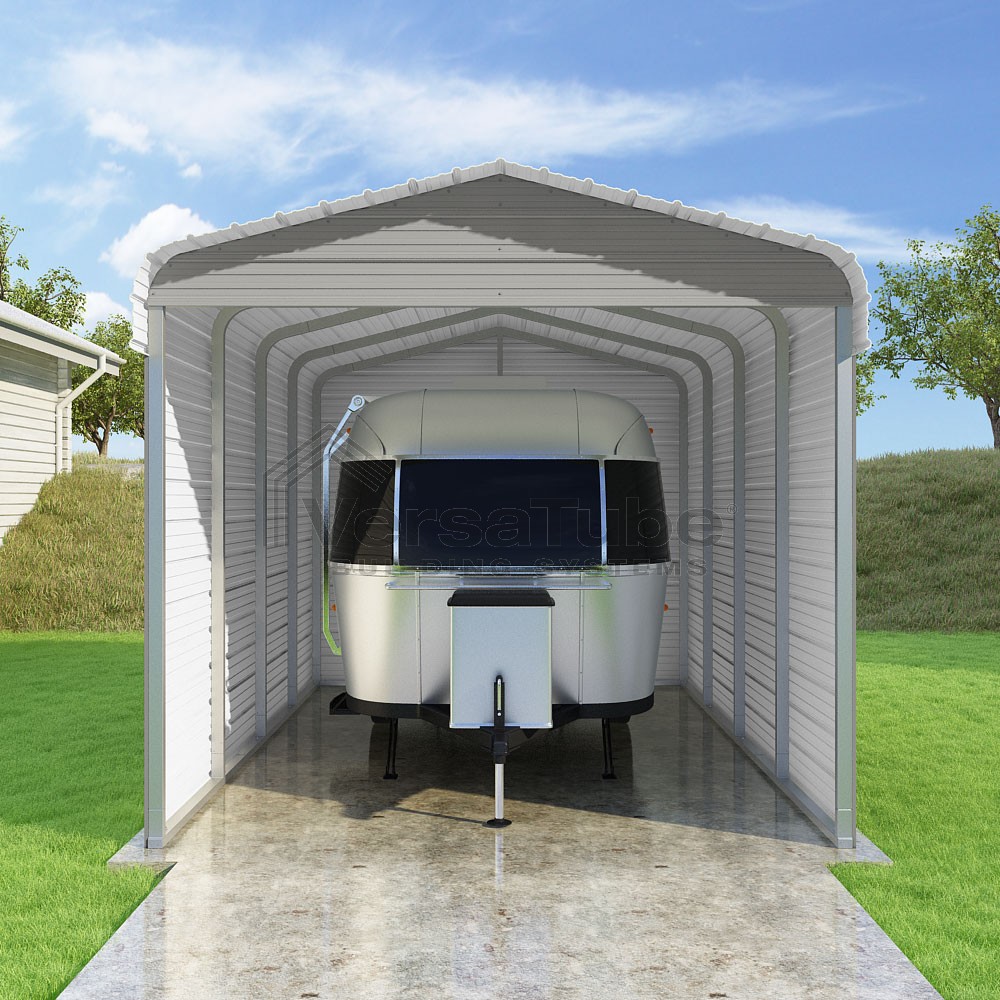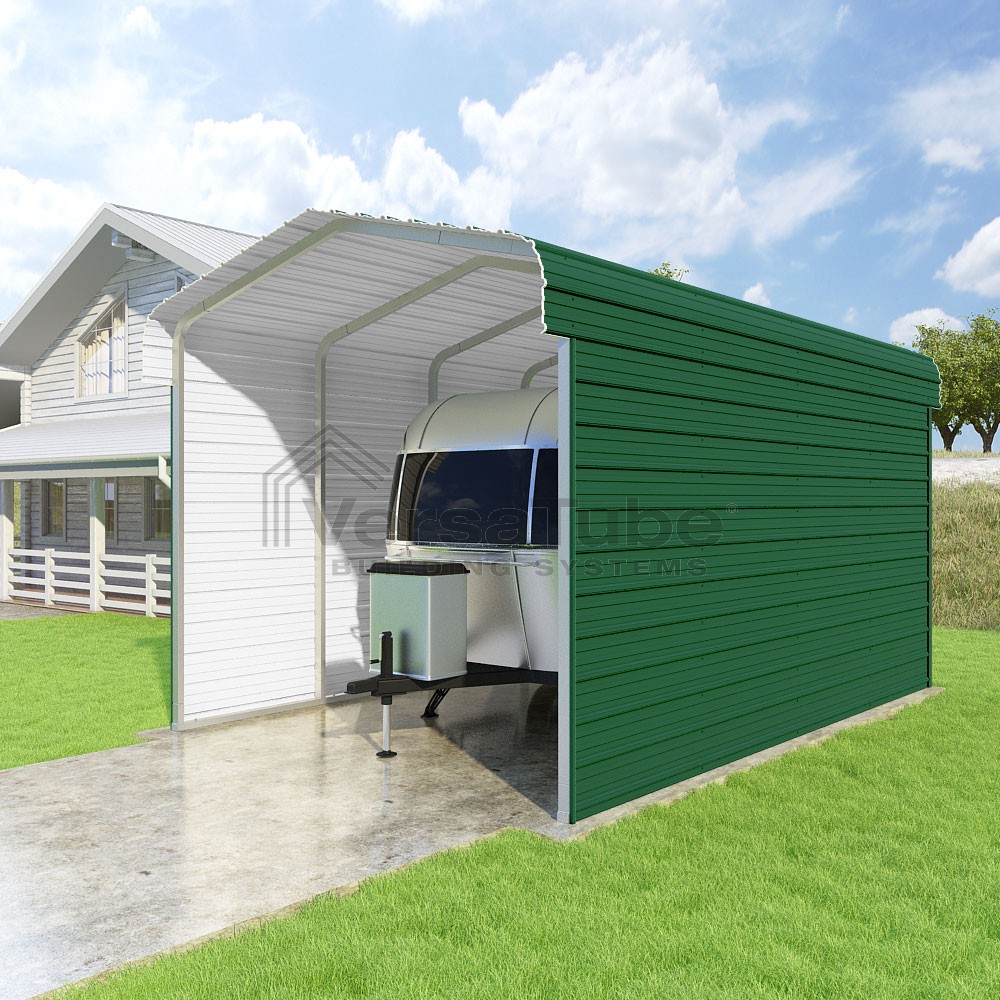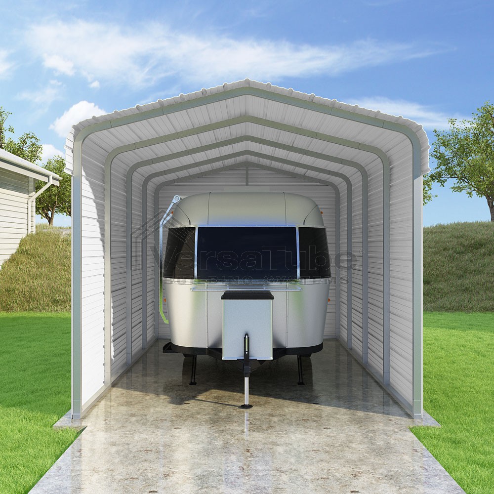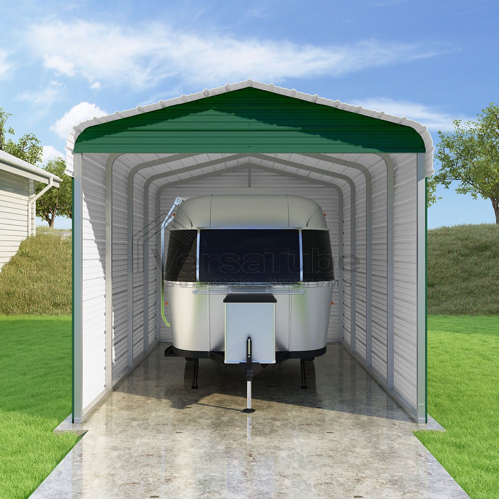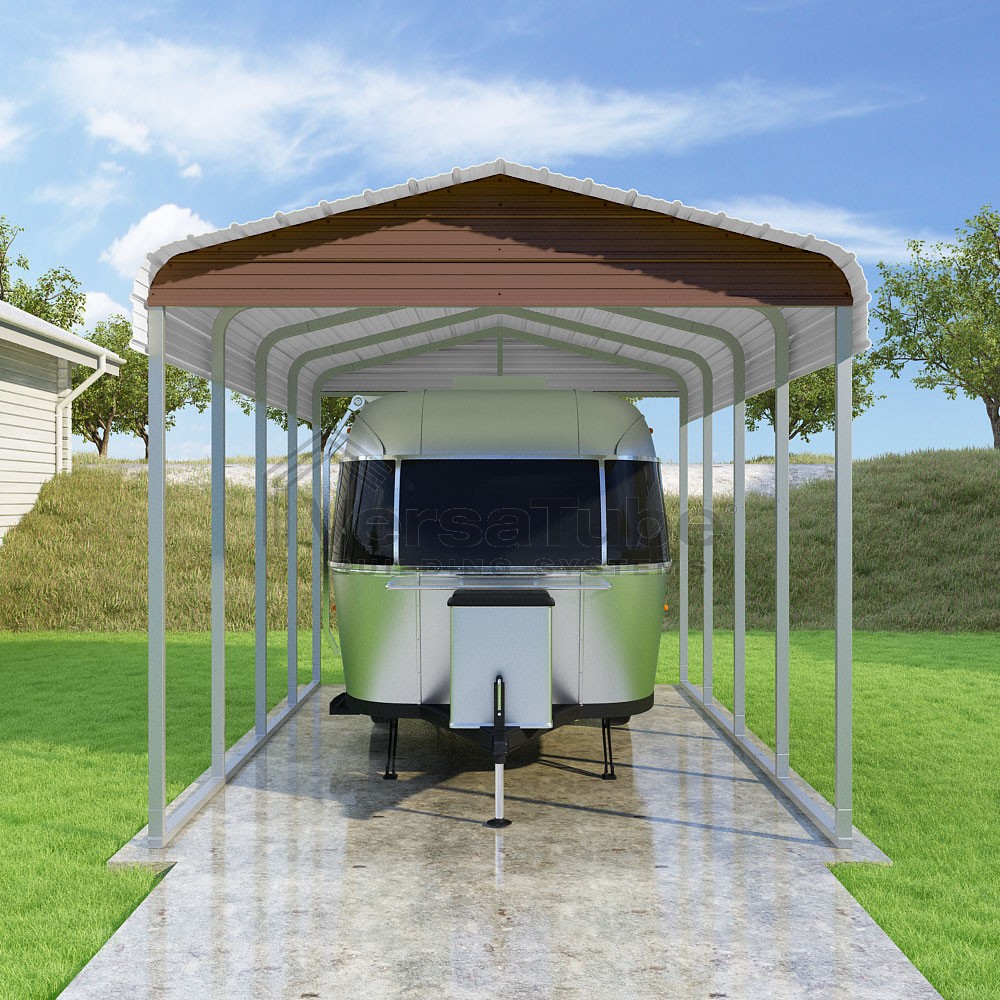Classic Series DIY carport kit features horizontal application of sheet metal panels with the extra protection of rounded eaves.