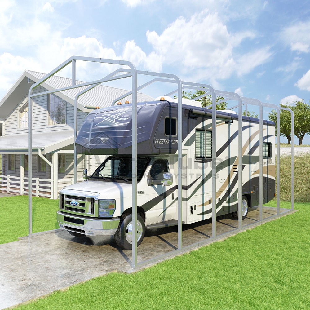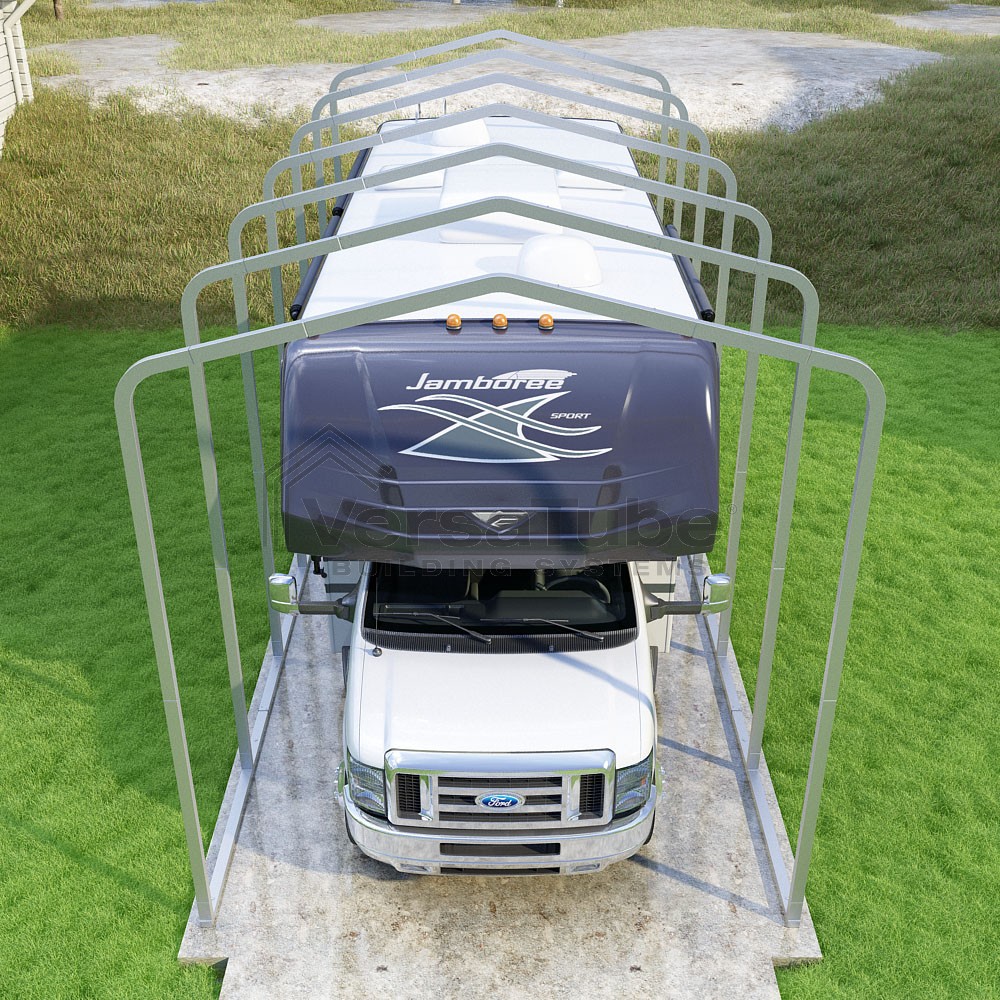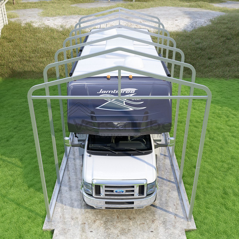 Classic Series DIY carport frame kit is designed for horizontal sheet metal application, resulting in a more cost-effective shelter or canopy solution. The rounded bends allow the sheet metal to naturally roll over the sides ensuring additional protection from elements entering from the sides.