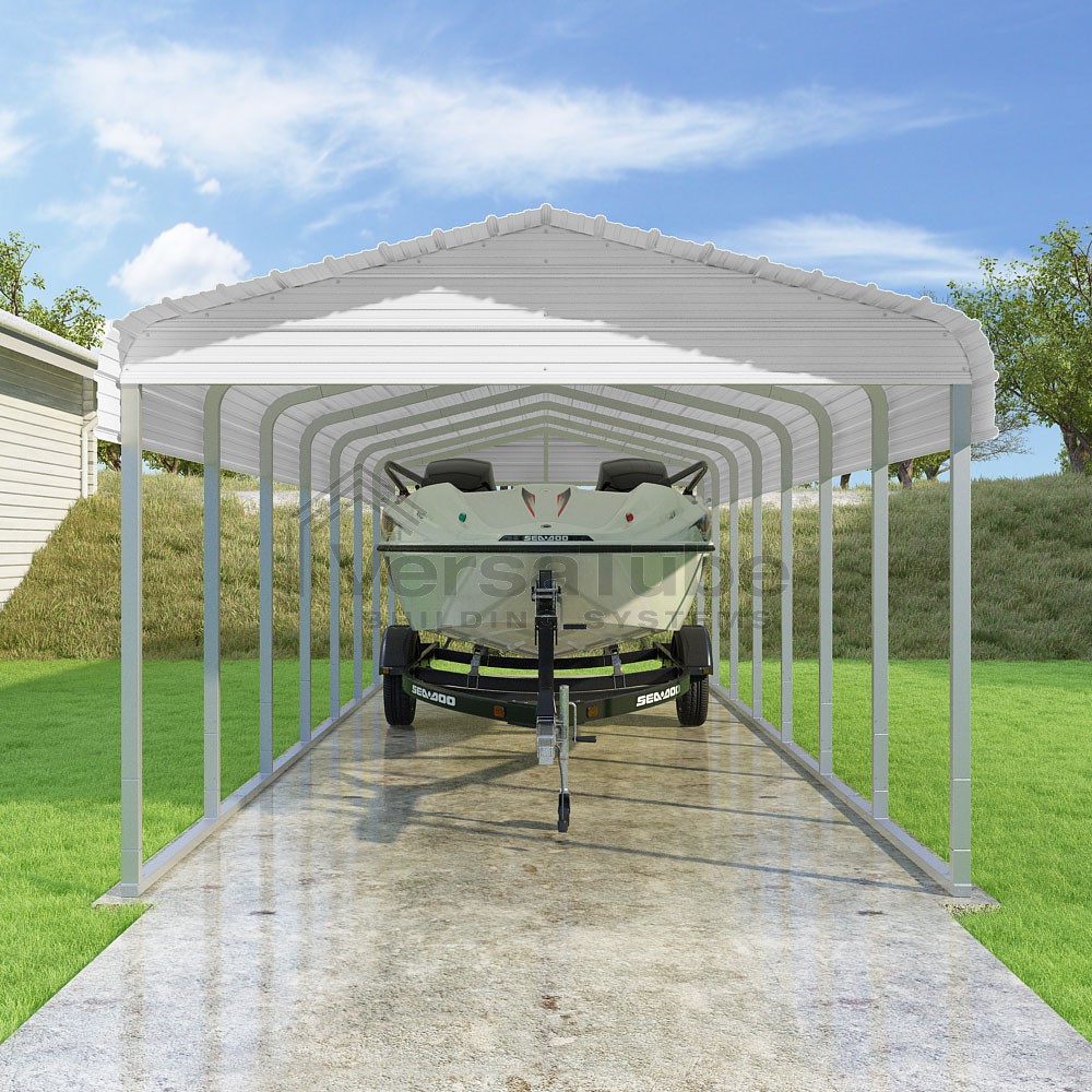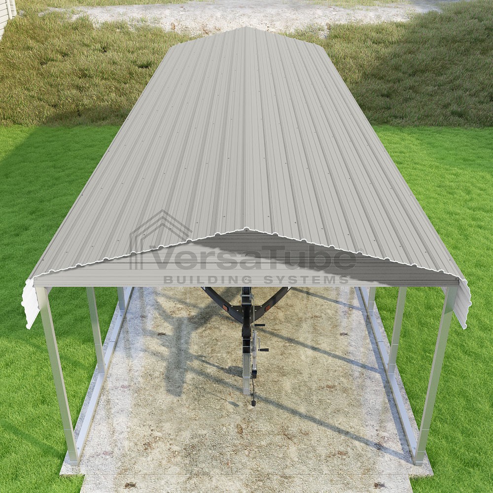 Classic Series DIY carport kit features horizontal application of sheet metal panels with the extra protection of rounded eaves.