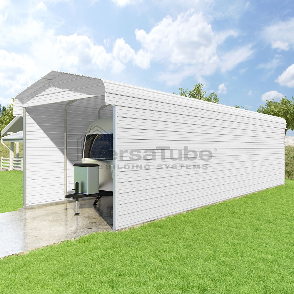 "I was very impressed with the installation instructions and quality of the material. My son-in -law and myself completed this installation in 2 days. I just purchased a new RV and I like that I don’t have to worry about sun rot or weather damage . This building was a 30’X30’ with a back wall. Going to enjoy it for years to come.