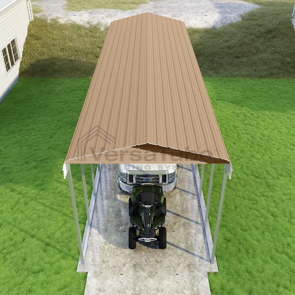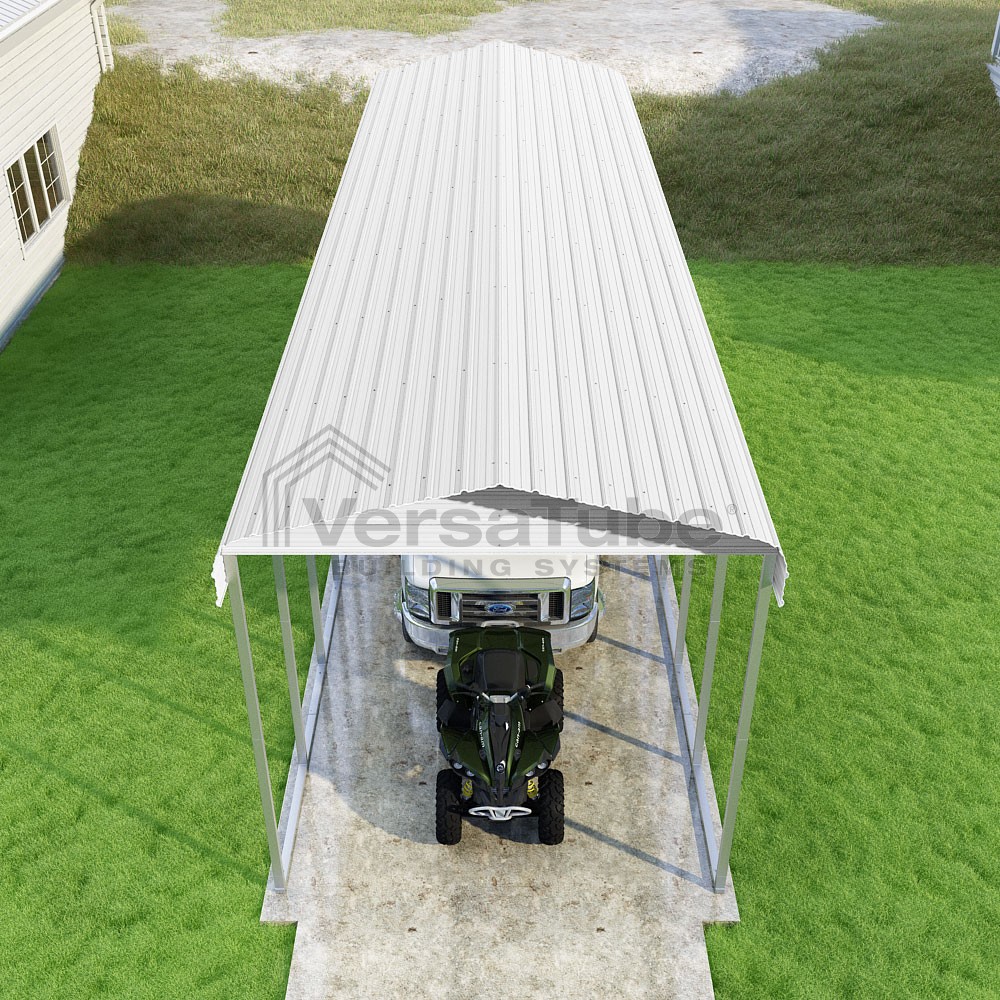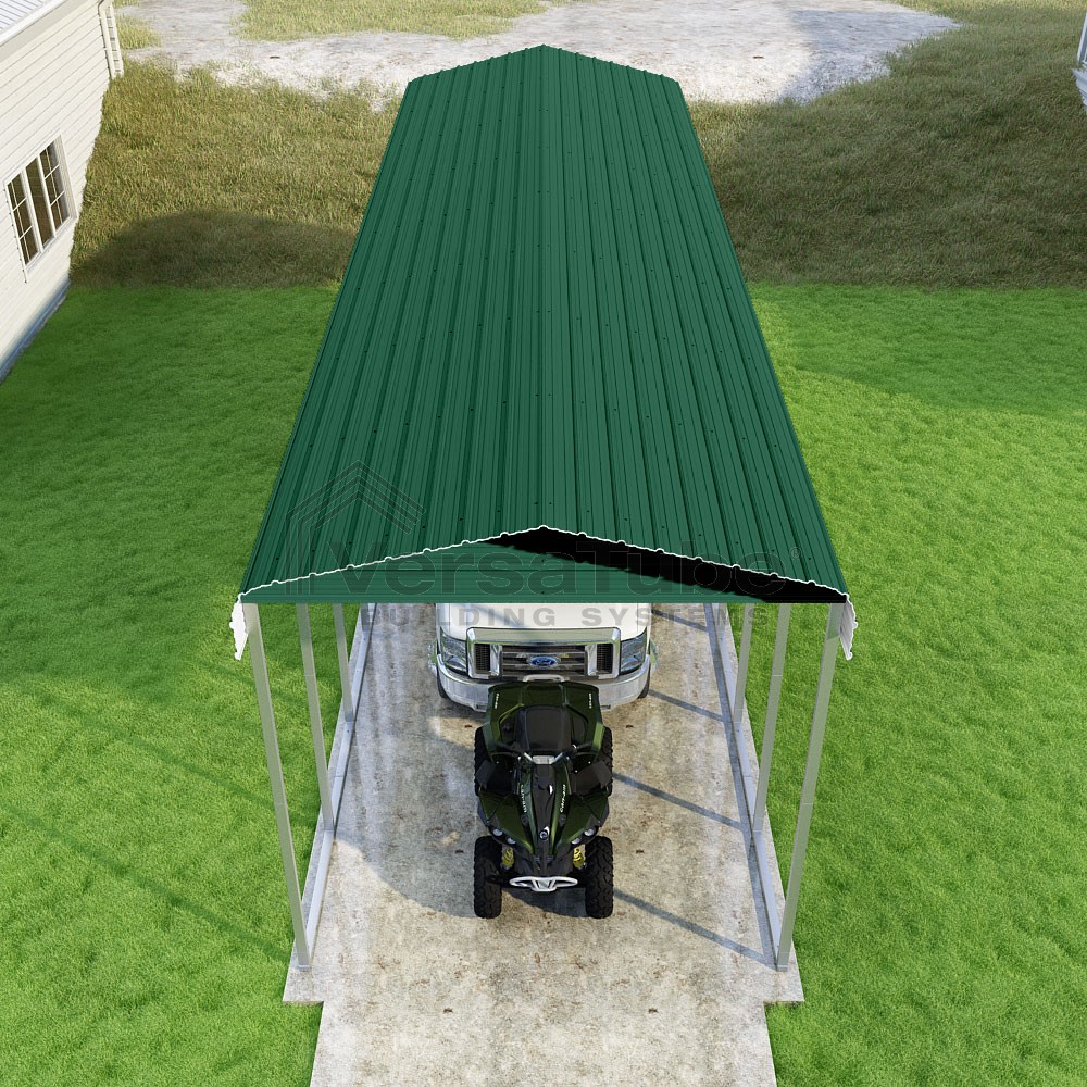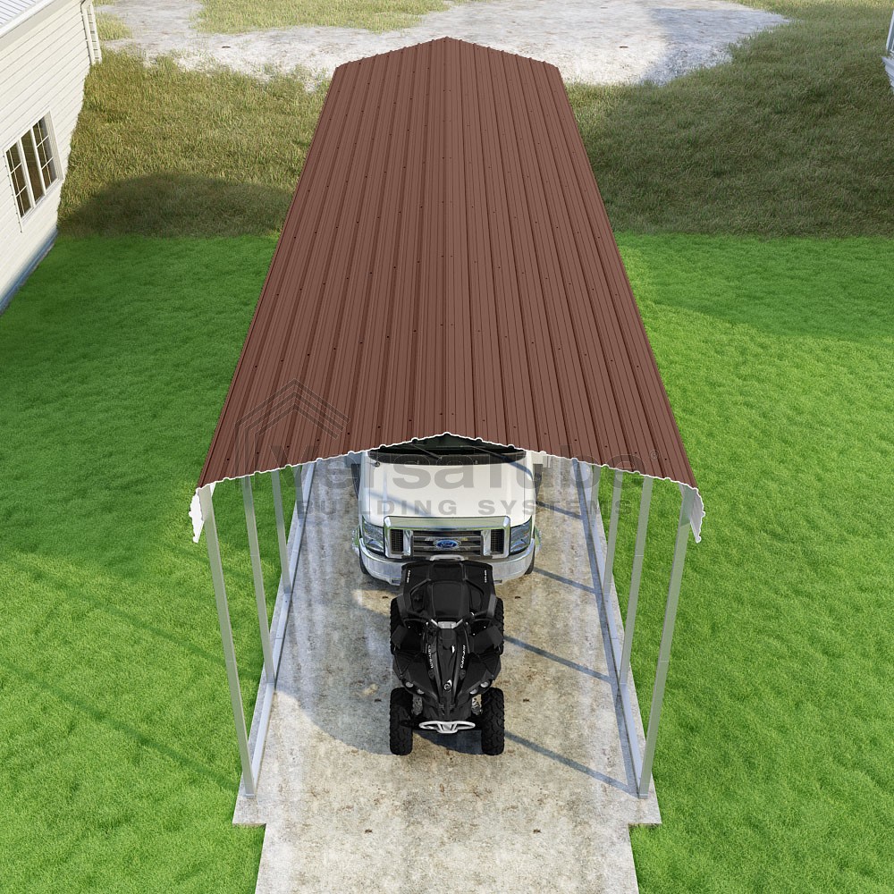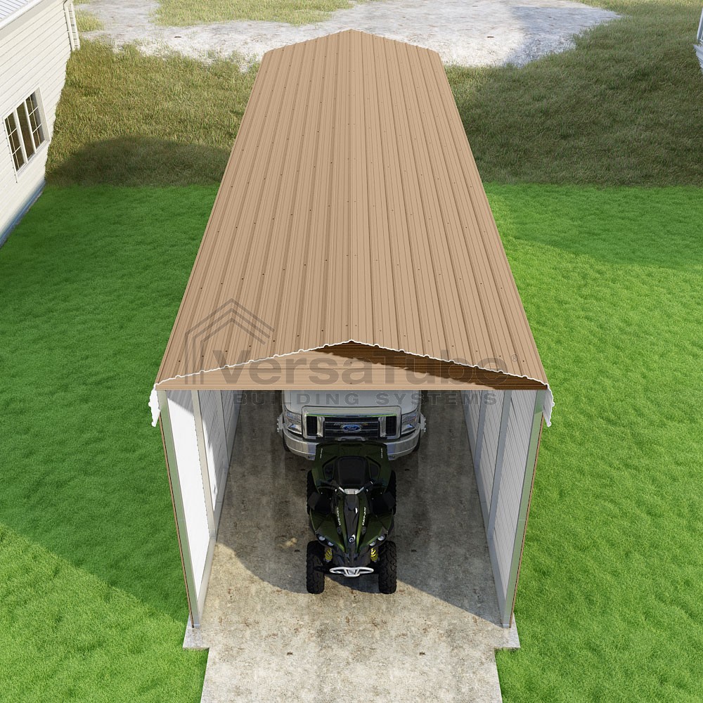 Classic Series DIY carport kit features horizontal application of sheet metal panels with the extra protection of rounded eaves.