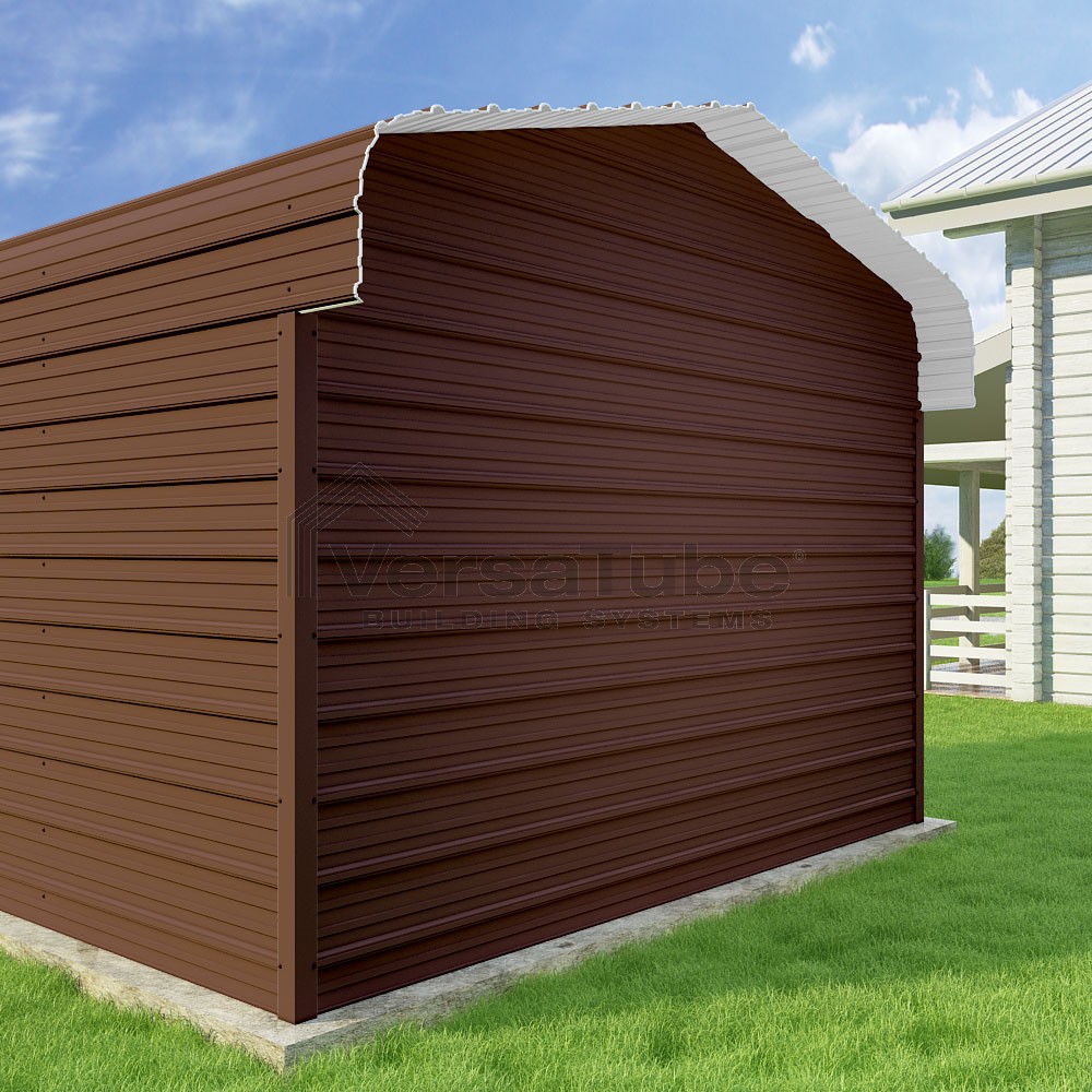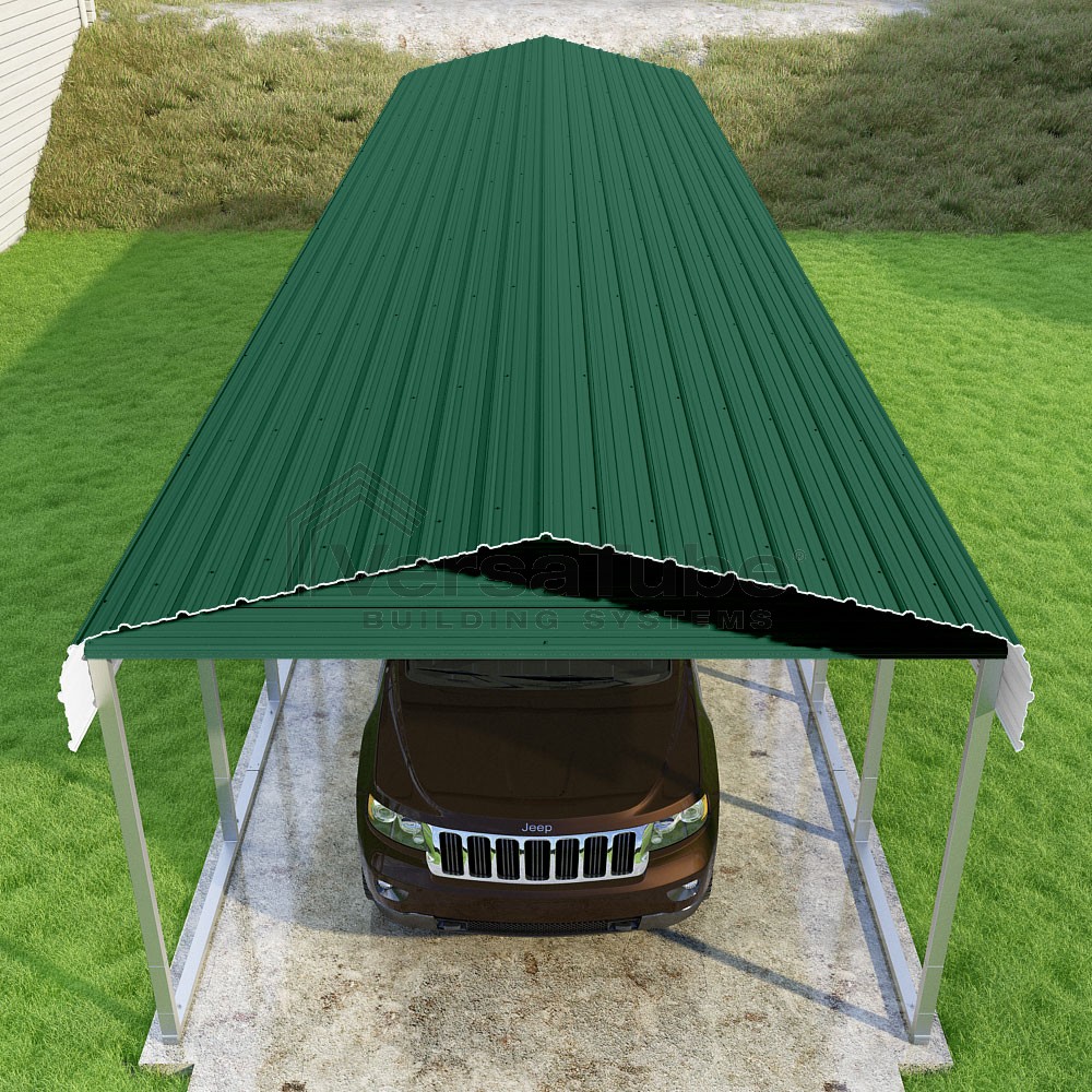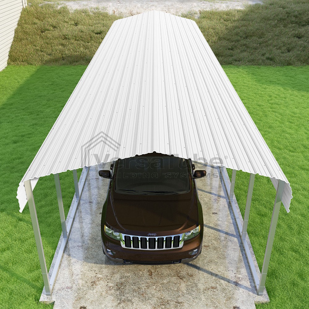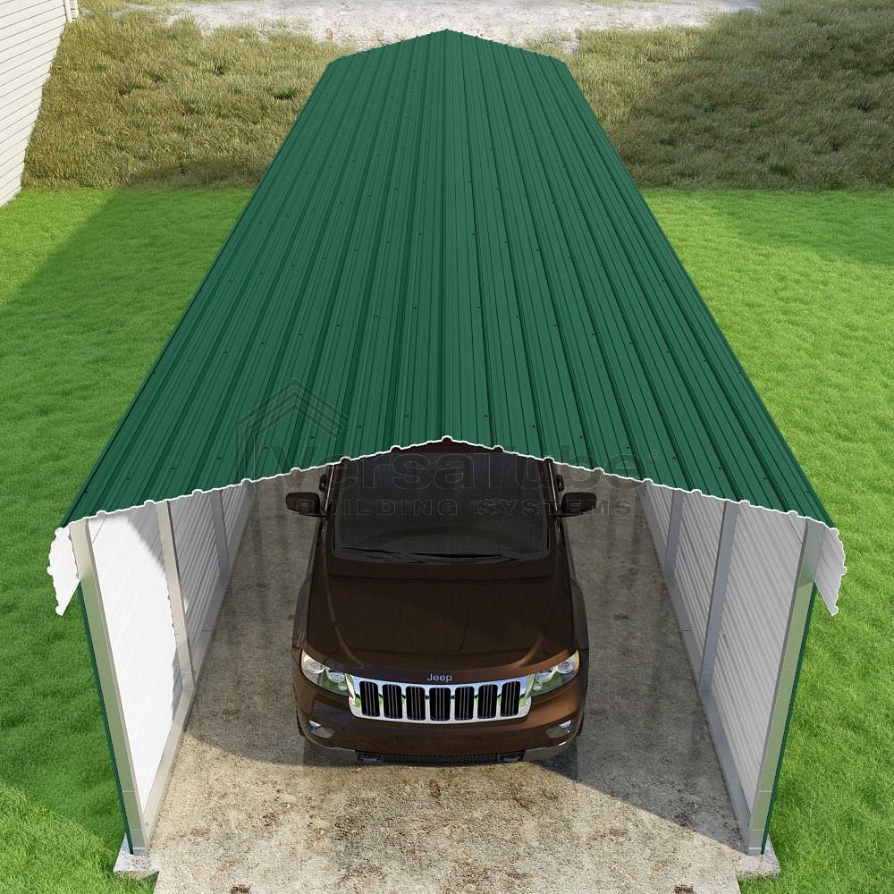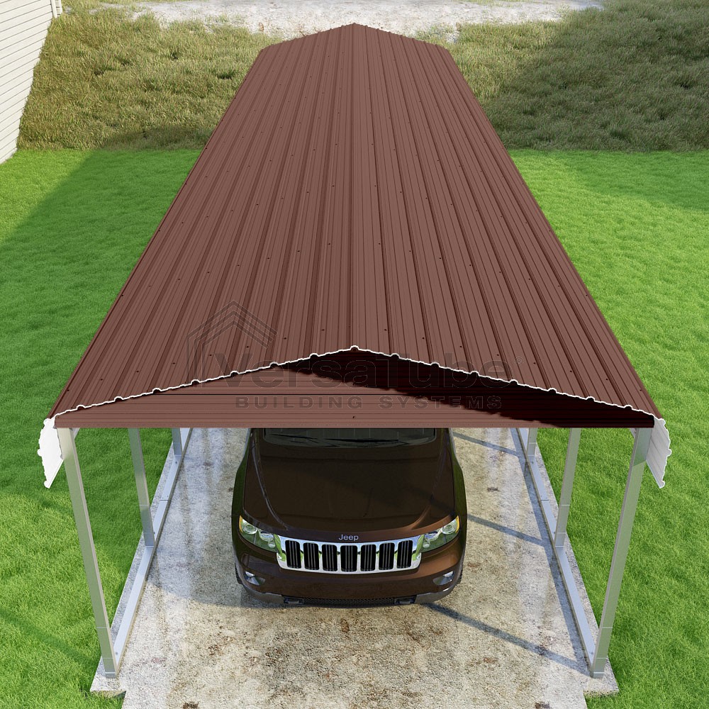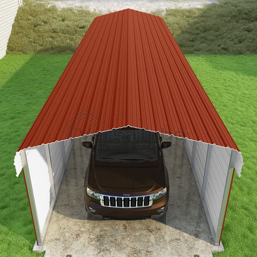 Classic Series DIY carport kit features horizontal application of sheet metal panels with the extra protection of rounded eaves.