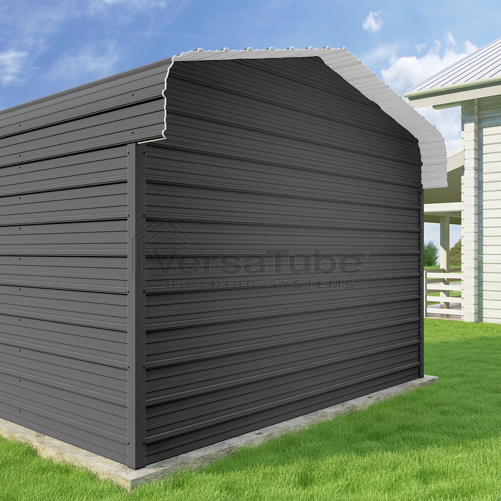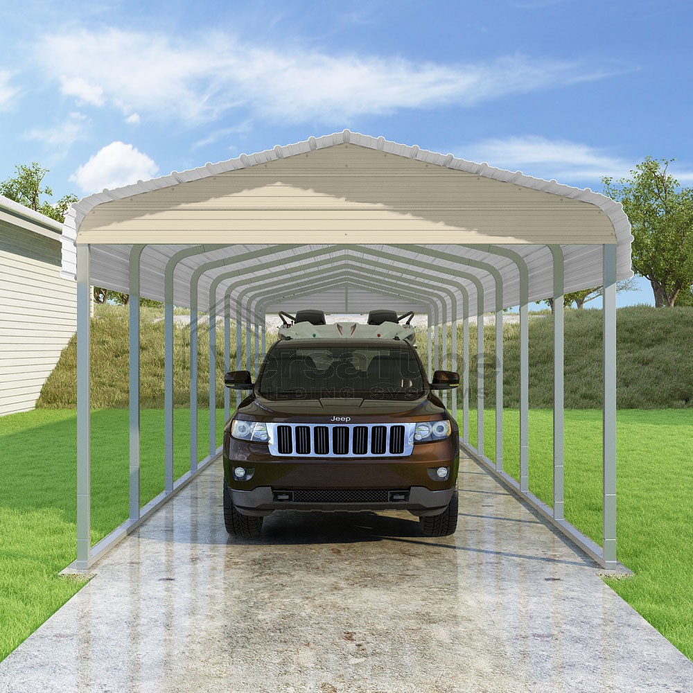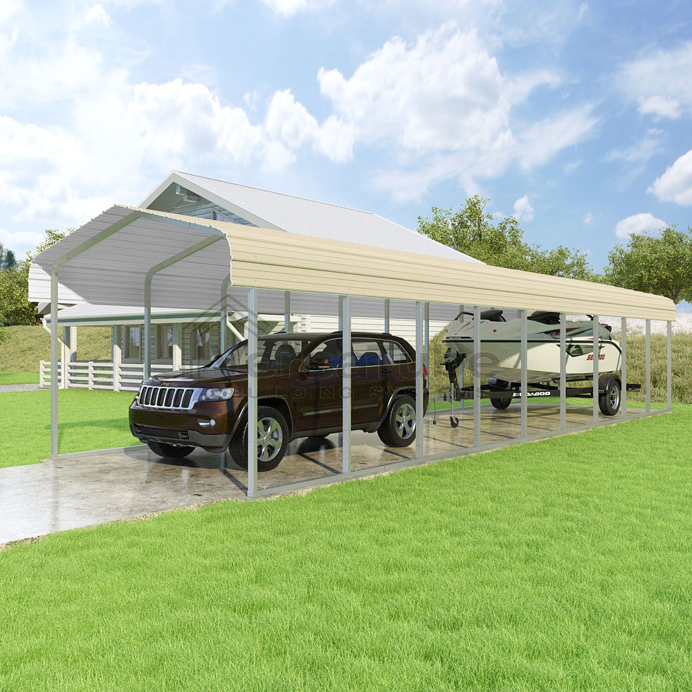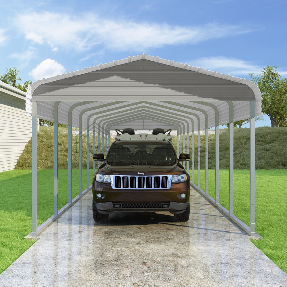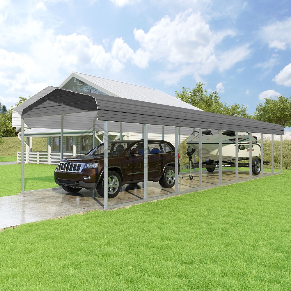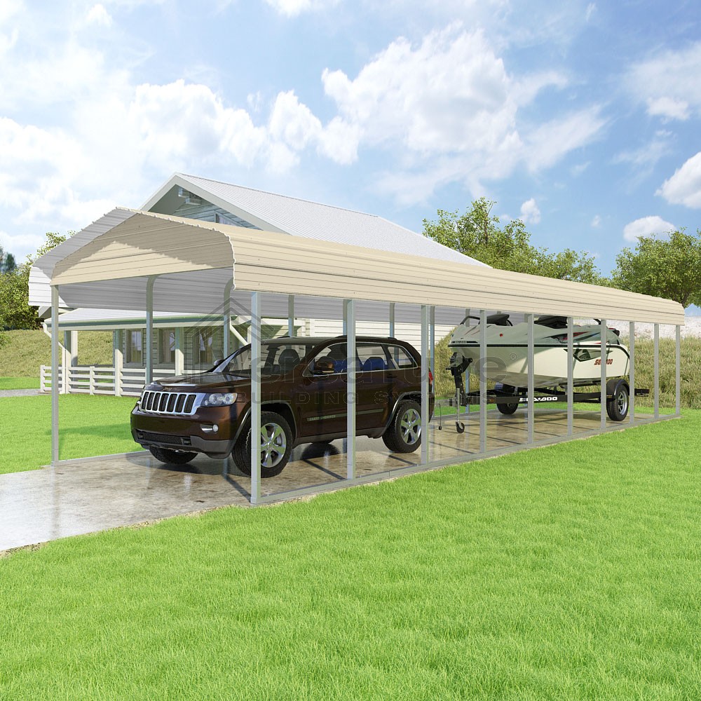 Classic Series DIY carport kit features horizontal application of sheet metal panels with the extra protection of rounded eaves.