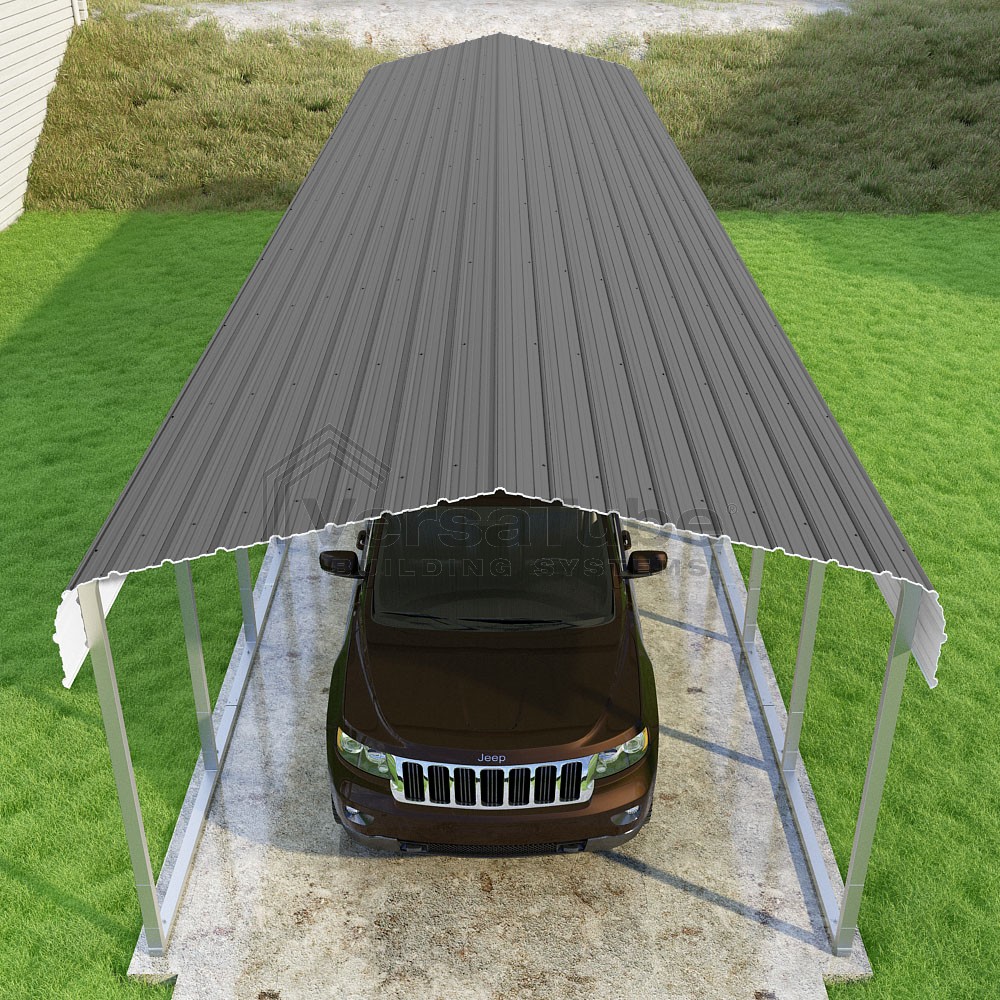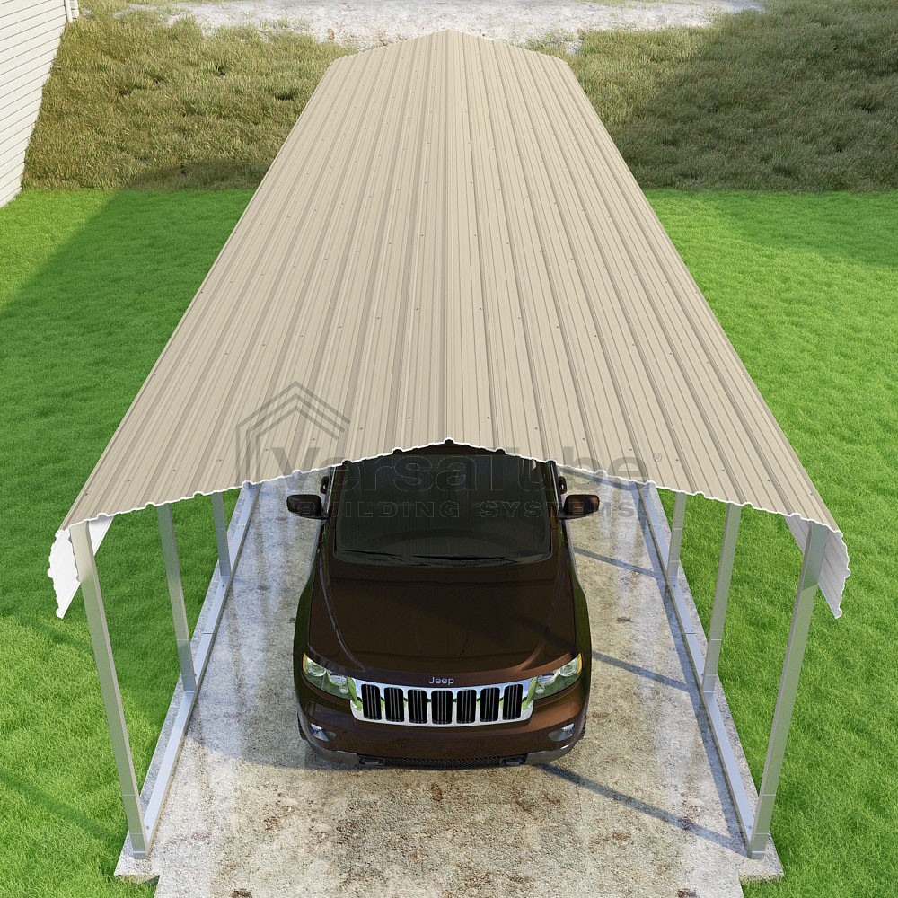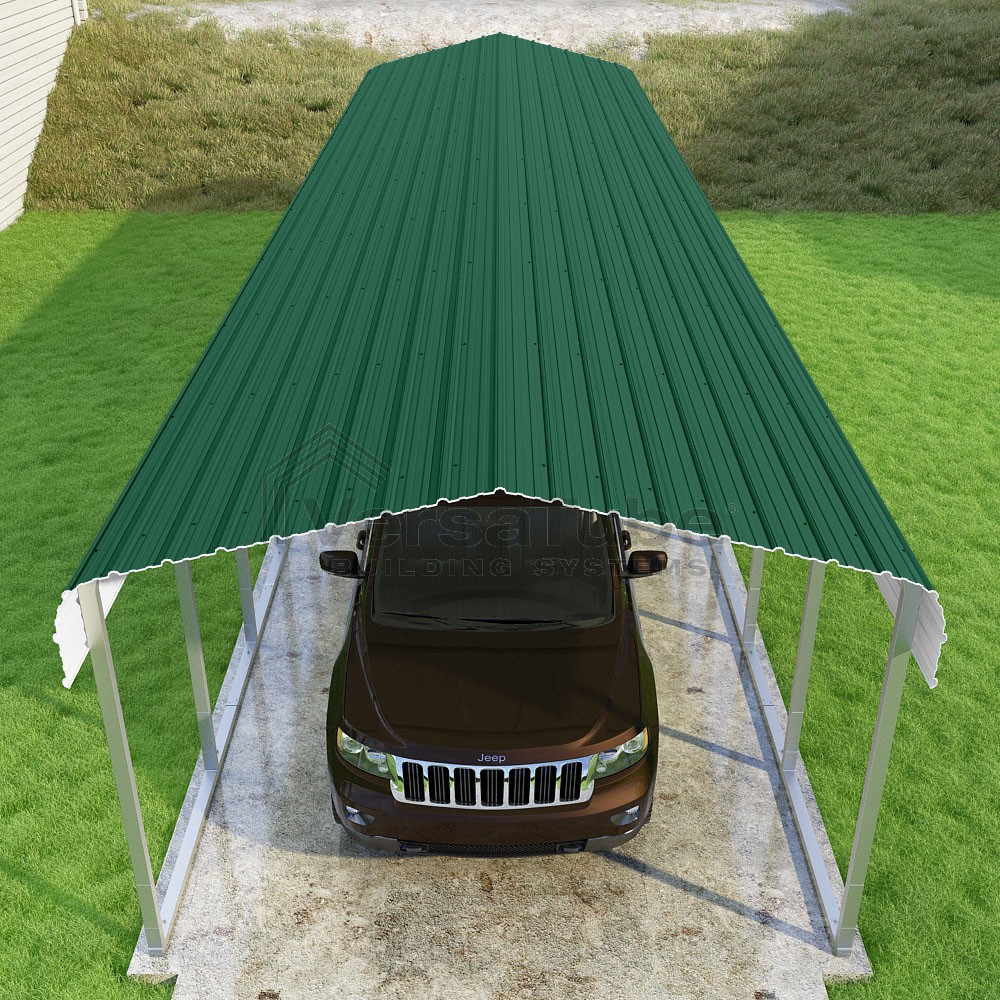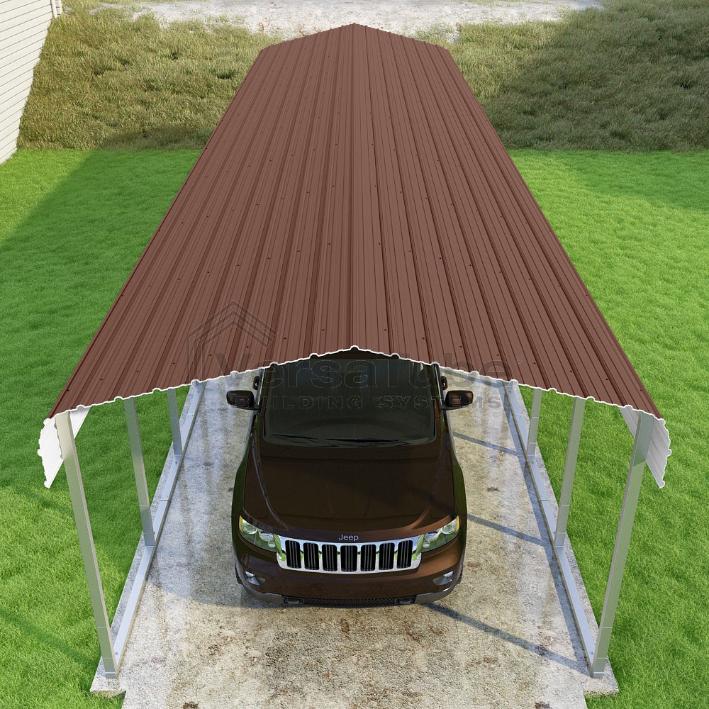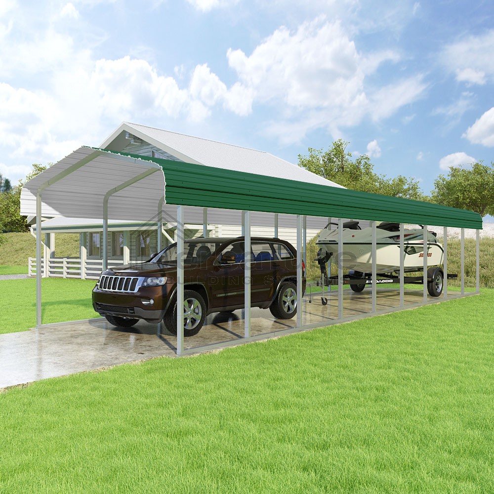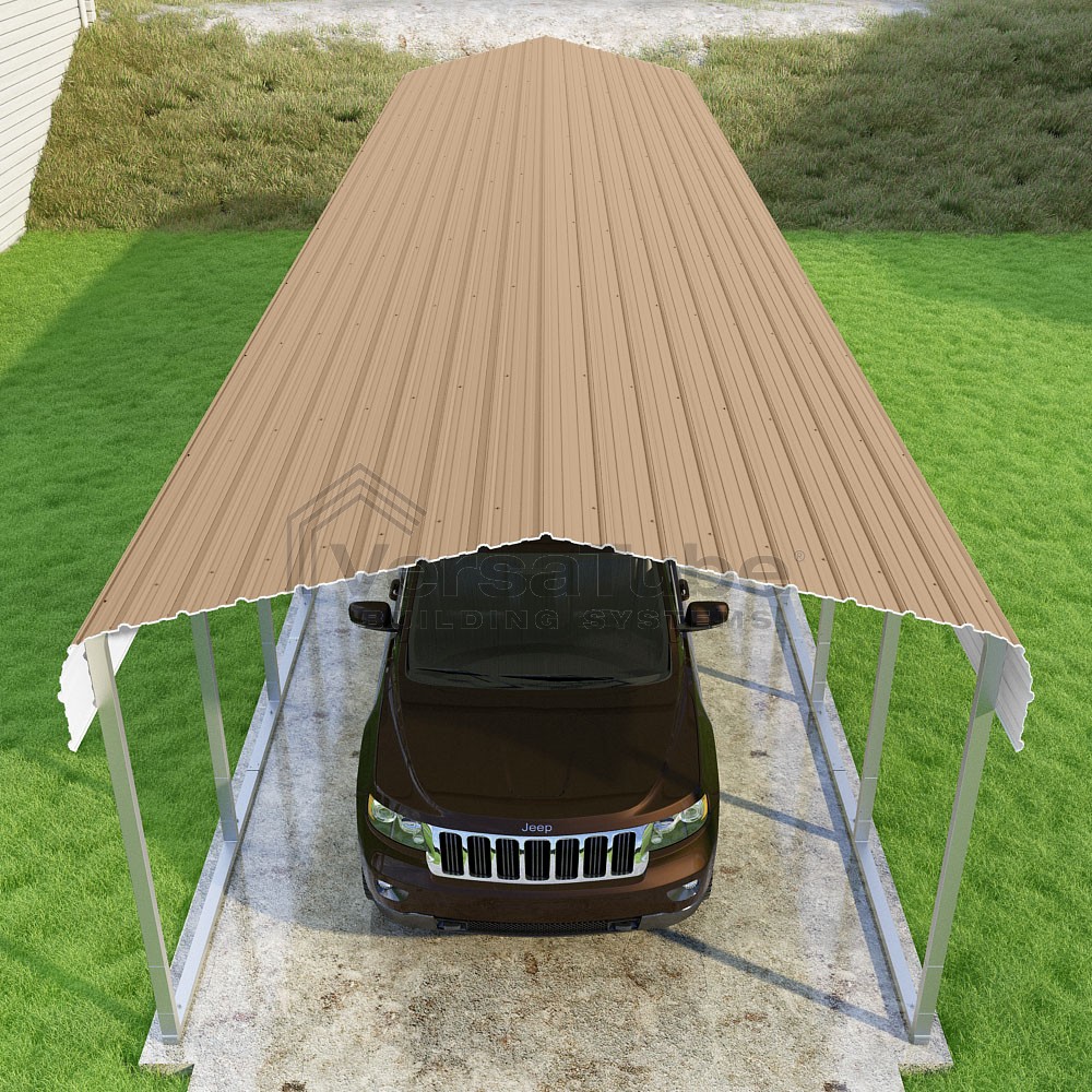 Classic Series DIY carport kit features horizontal application of sheet metal panels with the extra protection of rounded eaves.