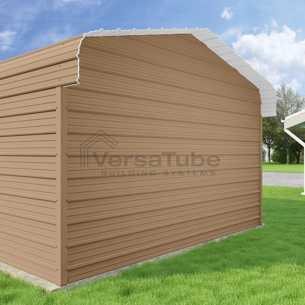 Classic Series DIY carport kit features horizontal application of sheet metal panels with the extra protection of rounded eaves.