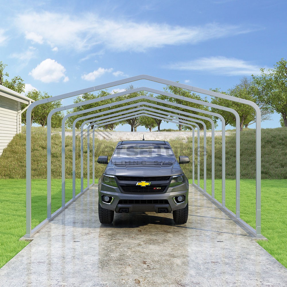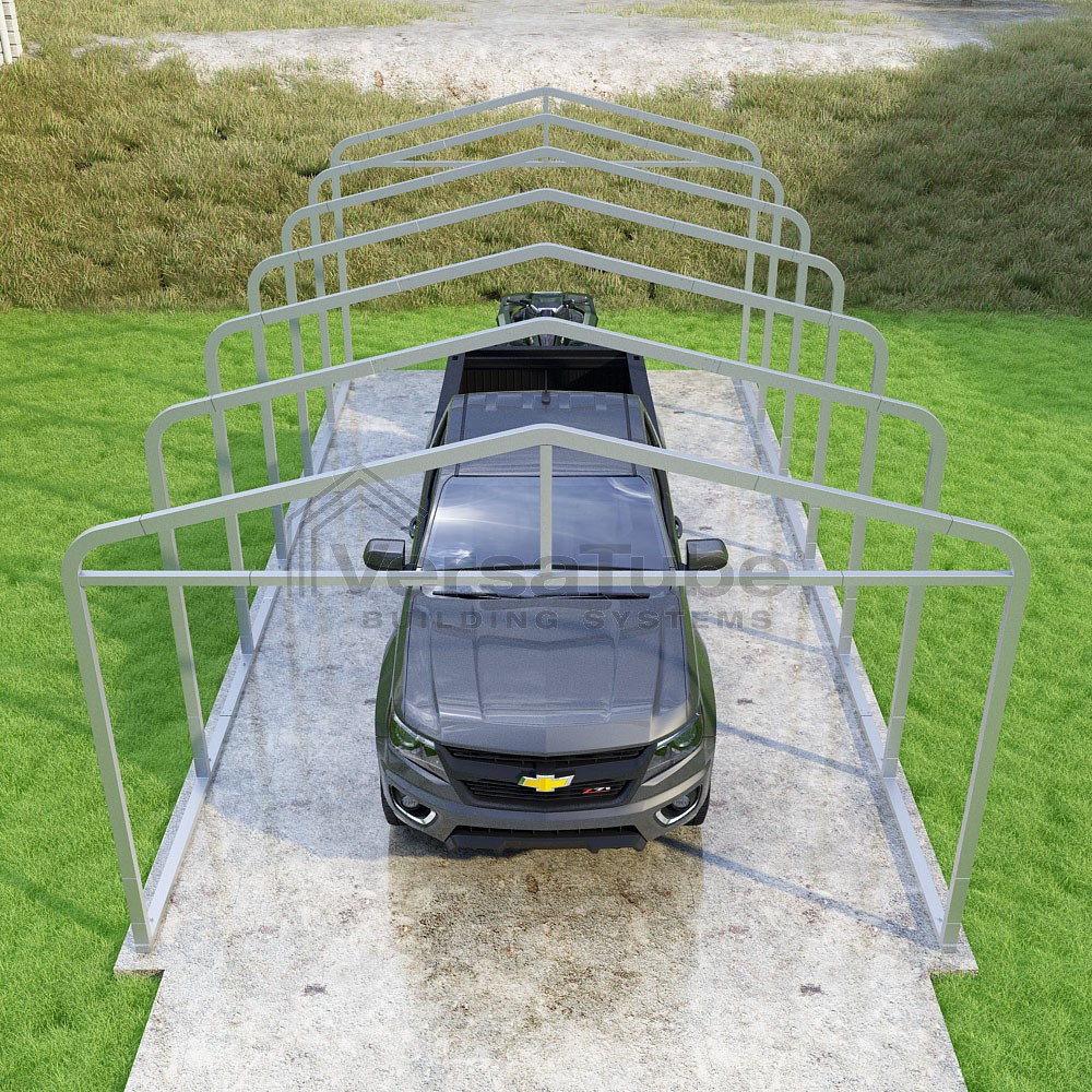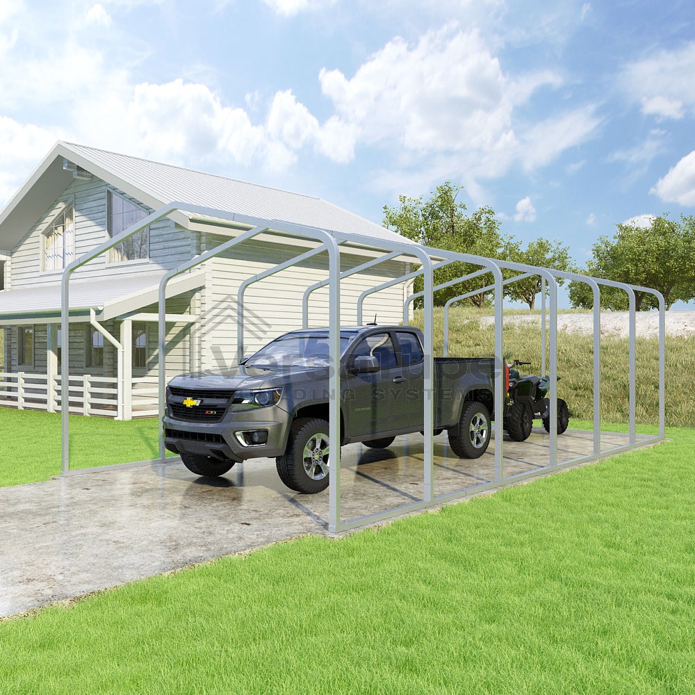 Classic Series DIY carport frame kit is designed for horizontal sheet metal application, resulting in a more cost-effective shelter or canopy solution. The rounded bends allow the sheet metal to naturally roll over the sides ensuring additional protection from elements entering from the sides.