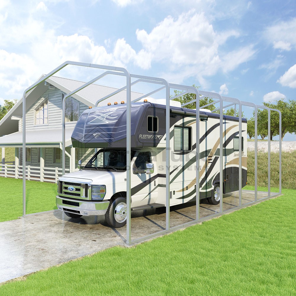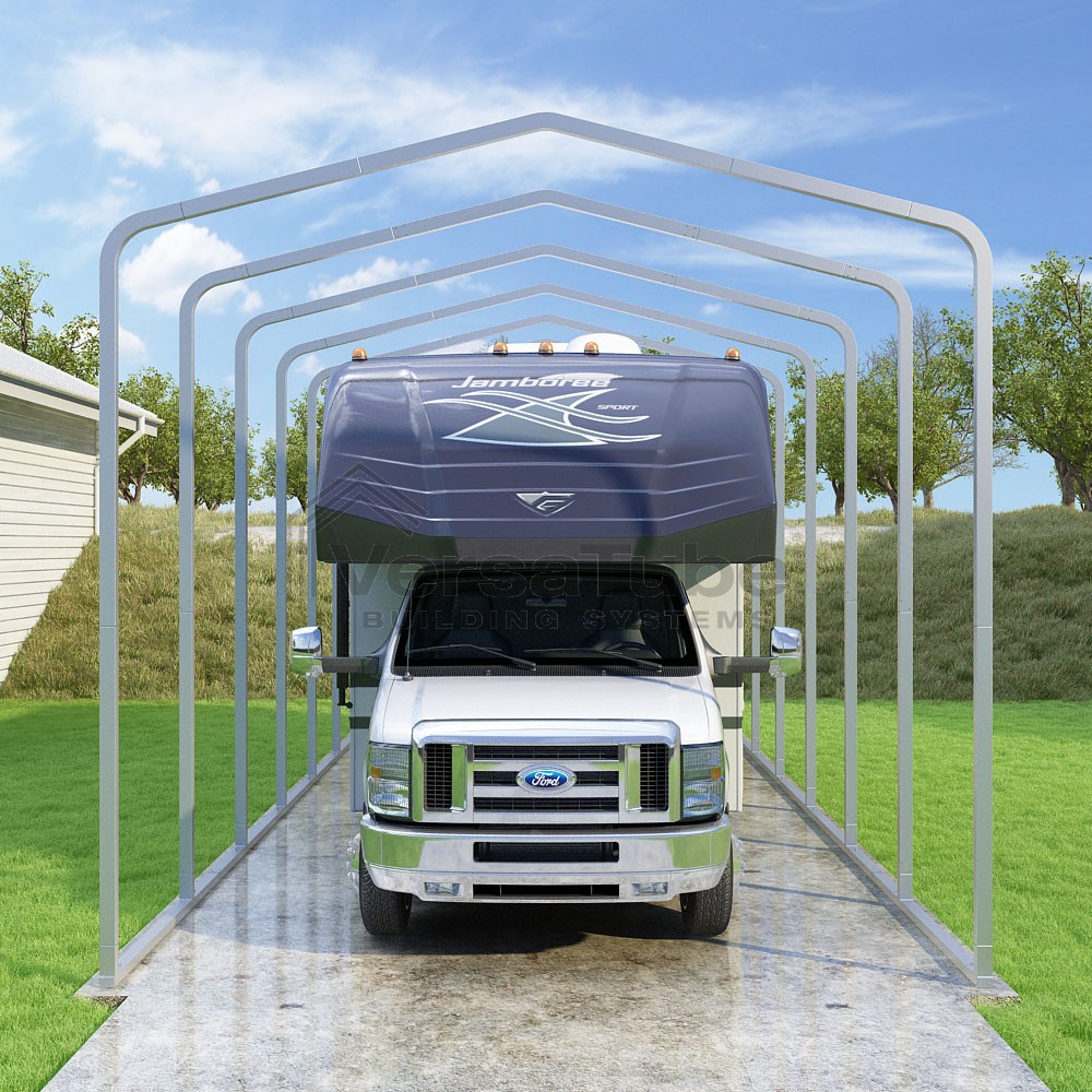 Classic Series DIY carport frame kit is designed for horizontal sheet metal application, resulting in a more cost-effective shelter or canopy solution. The rounded bends allow the sheet metal to naturally roll over the sides ensuring additional protection from elements entering from the sides.