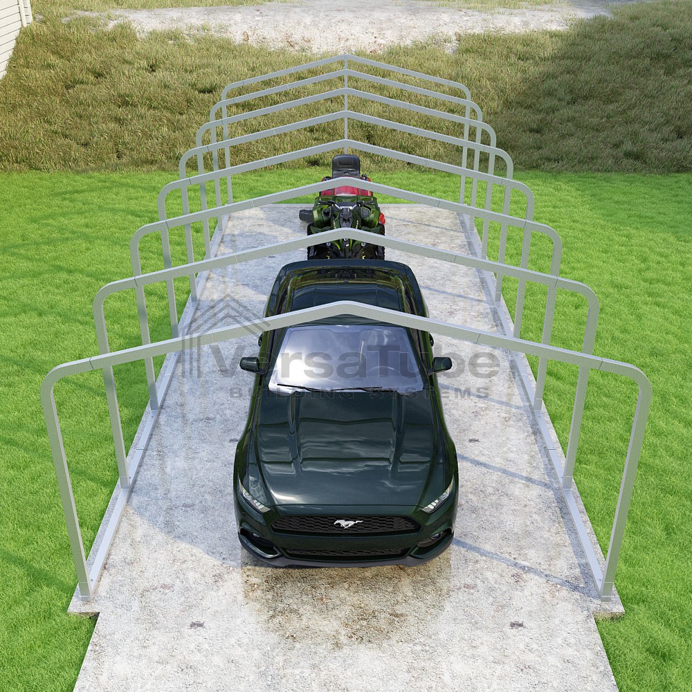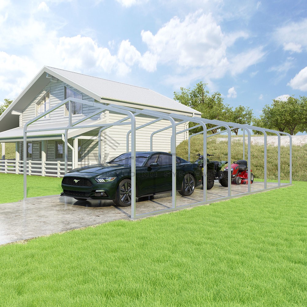 Classic Series DIY carport frame kit is designed for horizontal sheet metal application, resulting in a more cost-effective shelter or canopy solution. The rounded bends allow the sheet metal to naturally roll over the sides ensuring additional protection from elements entering from the sides.