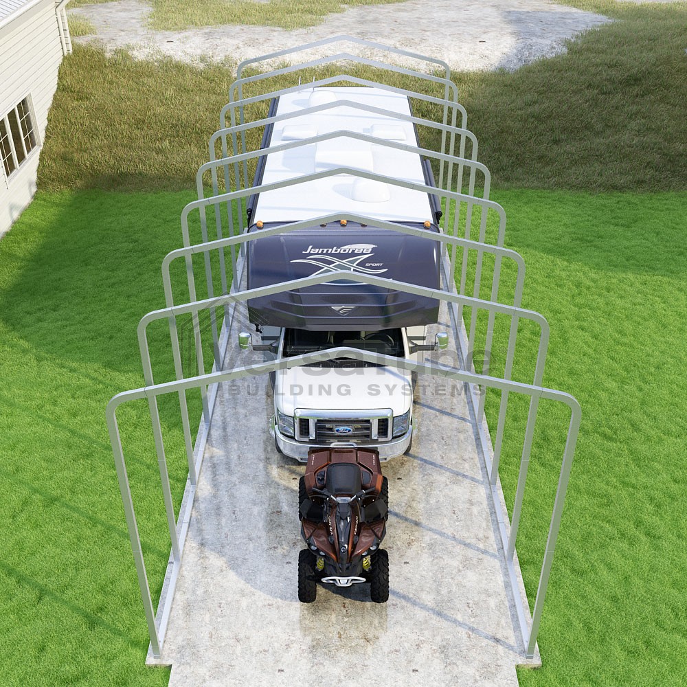 Classic Series DIY carport frame kit is designed for horizontal sheet metal application, resulting in a more cost-effective shelter or canopy solution. The rounded bends allow the sheet metal to naturally roll over the sides ensuring additional protection from elements entering from the sides.