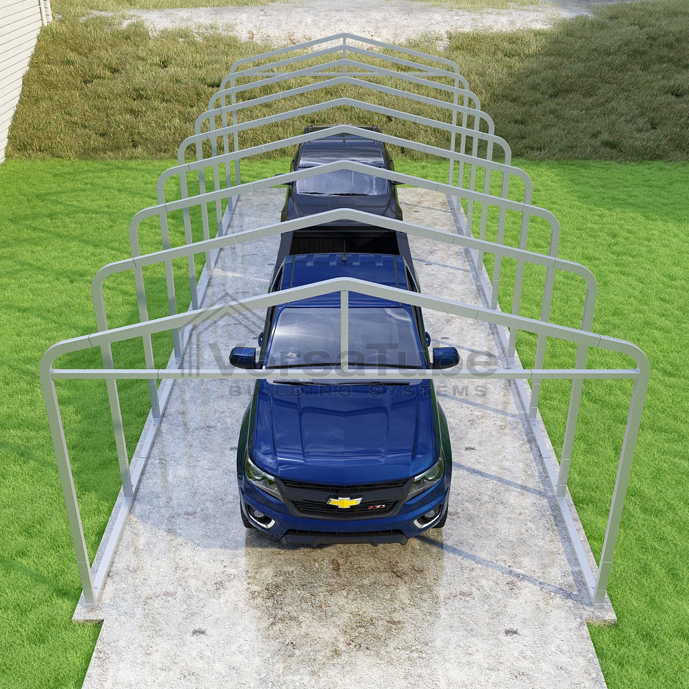 Classic Series DIY carport frame kit is designed for horizontal sheet metal application, resulting in a more cost-effective shelter or canopy solution. The rounded bends allow the sheet metal to naturally roll over the sides ensuring additional protection from elements entering from the sides.