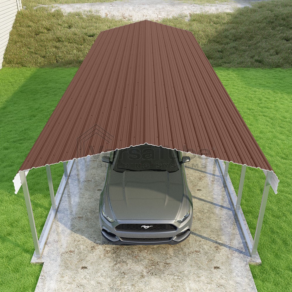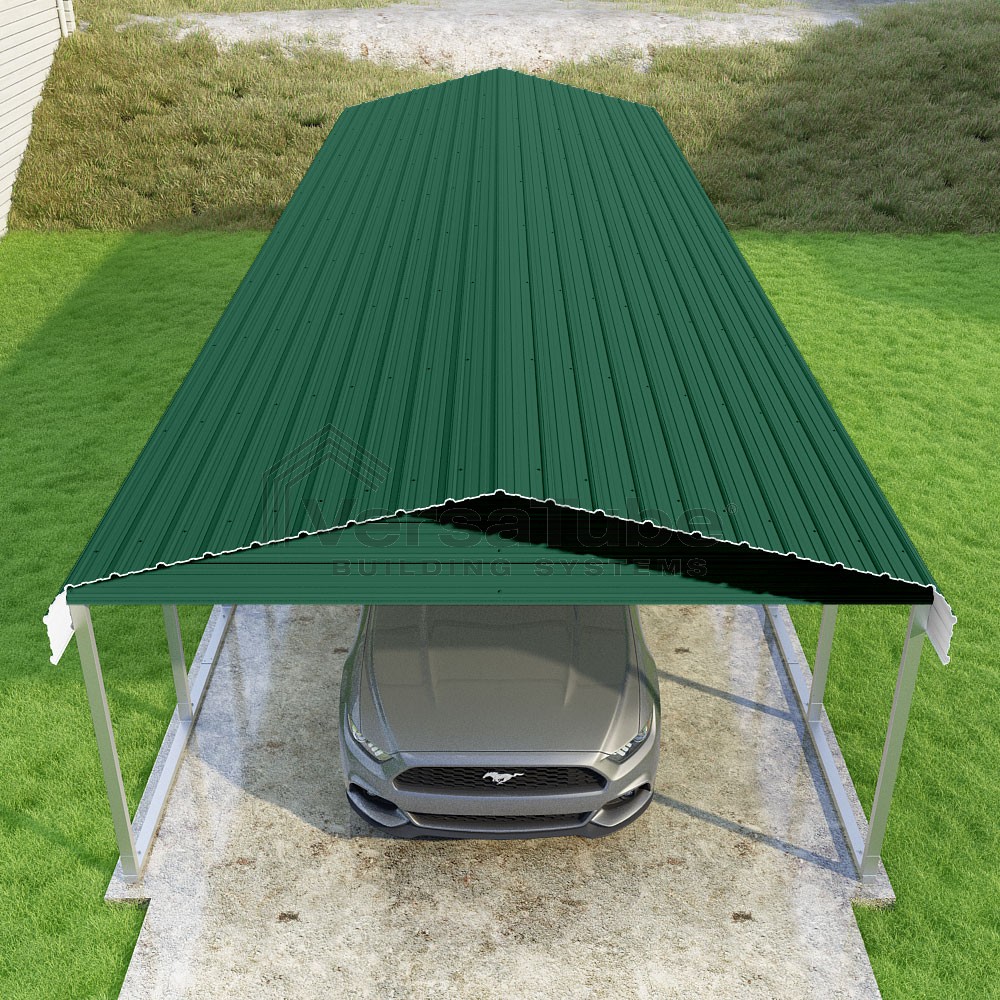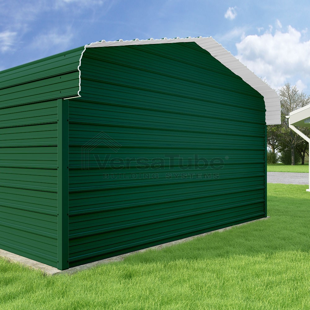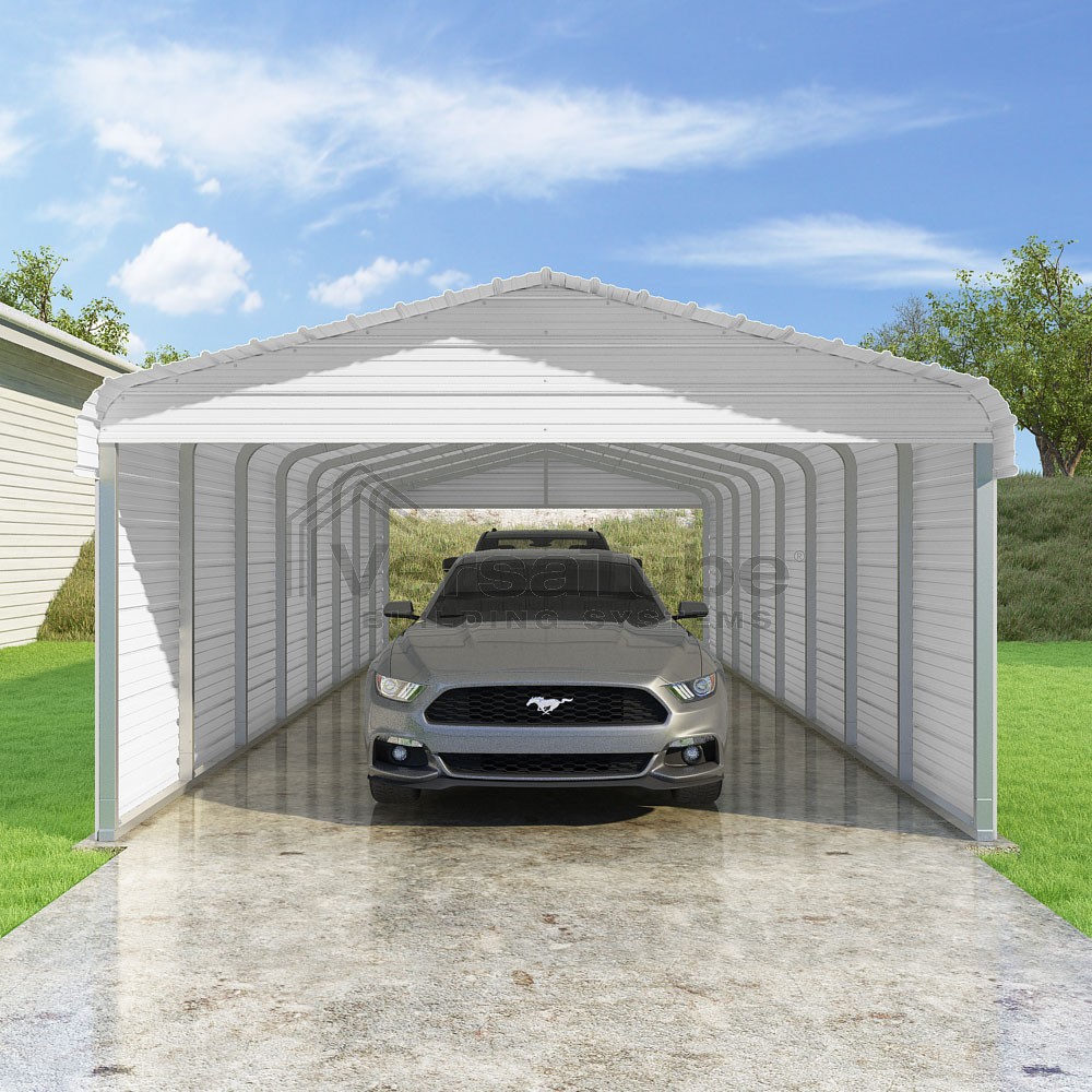 Classic Series DIY carport kit features horizontal application of sheet metal panels with the extra protection of rounded eaves.