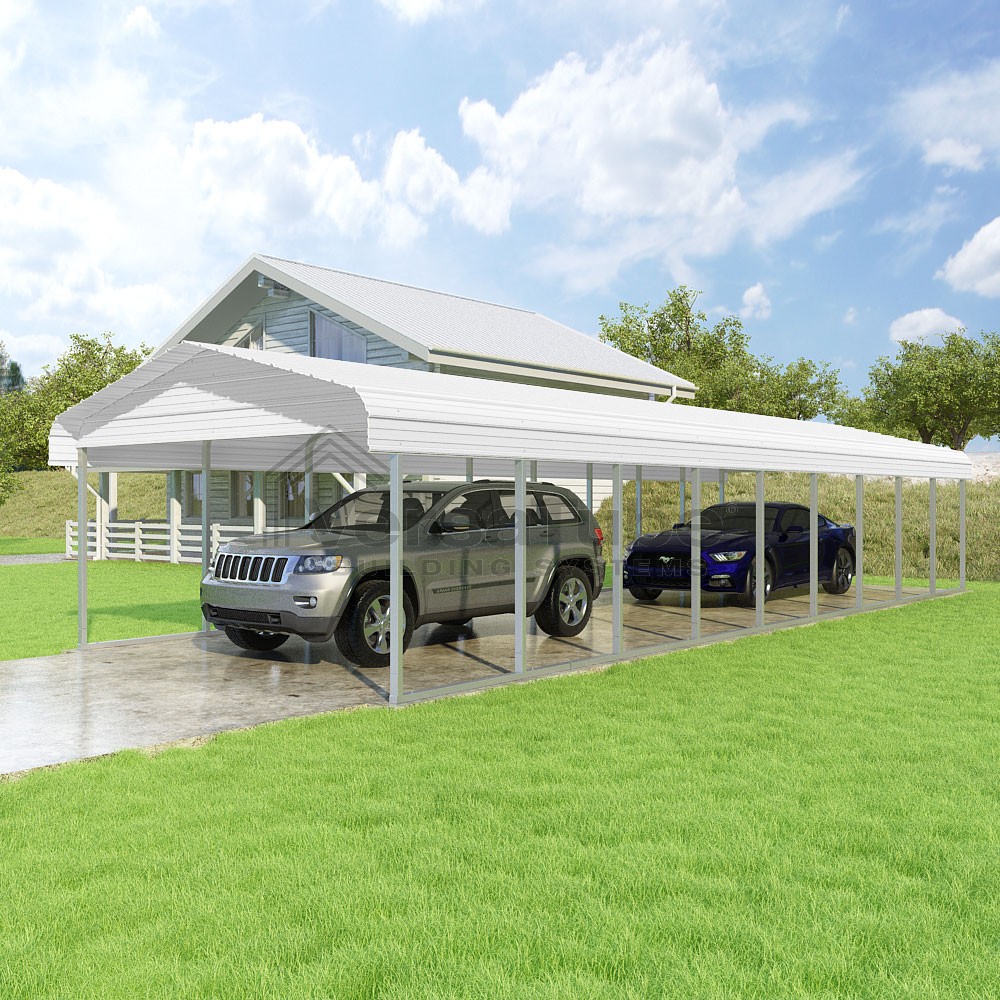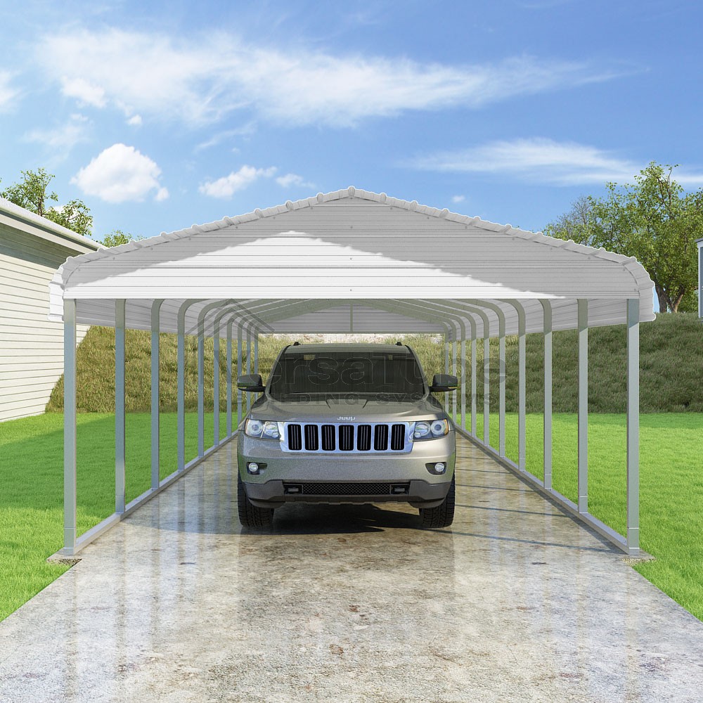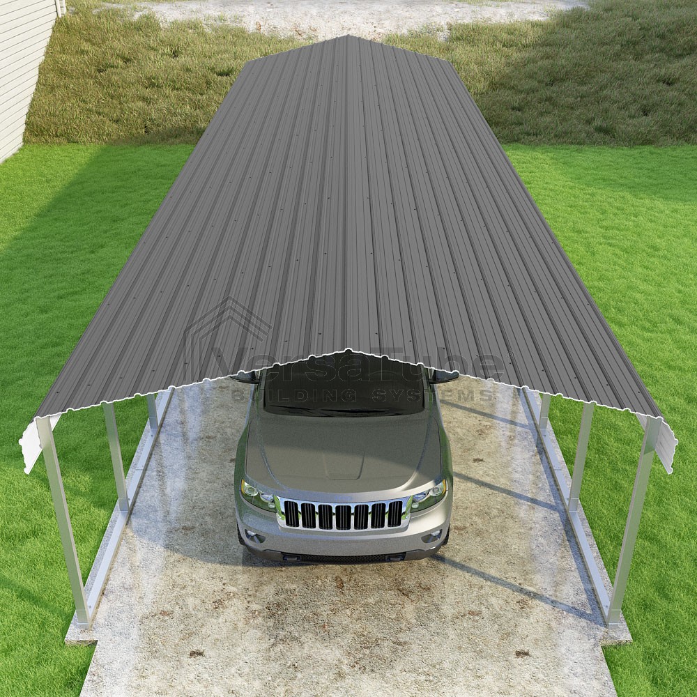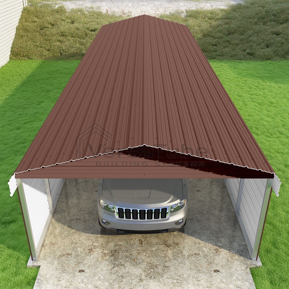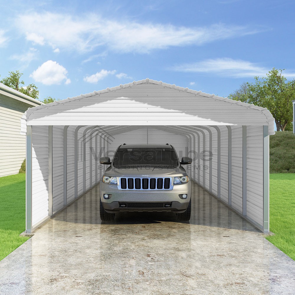 Classic Series DIY carport kit features horizontal application of sheet metal panels with the extra protection of rounded eaves.
