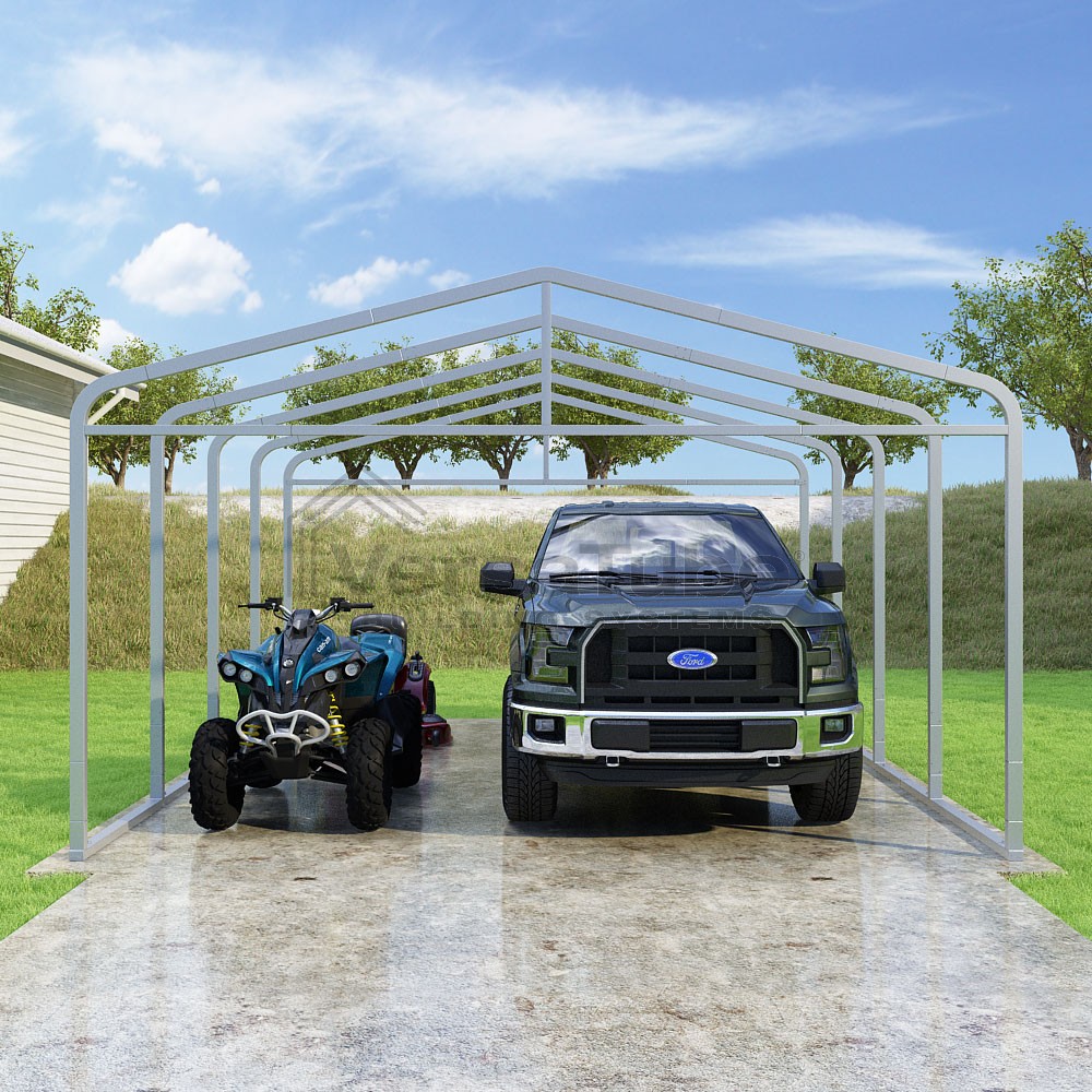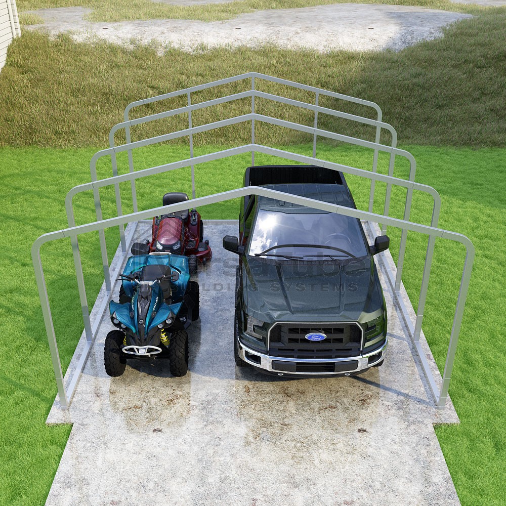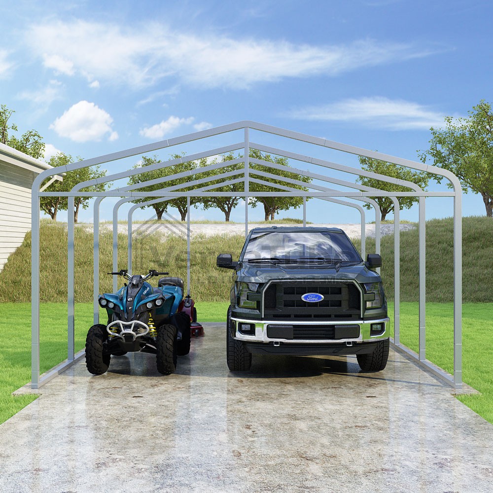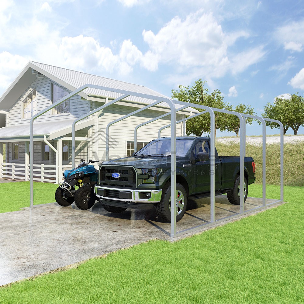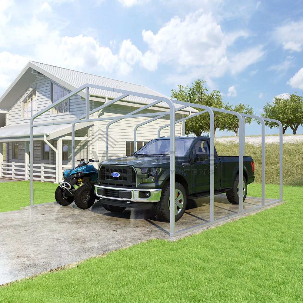 Classic Series DIY carport frame kit is designed for horizontal sheet metal application, resulting in a more cost-effective shelter or canopy solution. The rounded bends allow the sheet metal to naturally roll over the sides ensuring additional protection from elements entering from the sides.