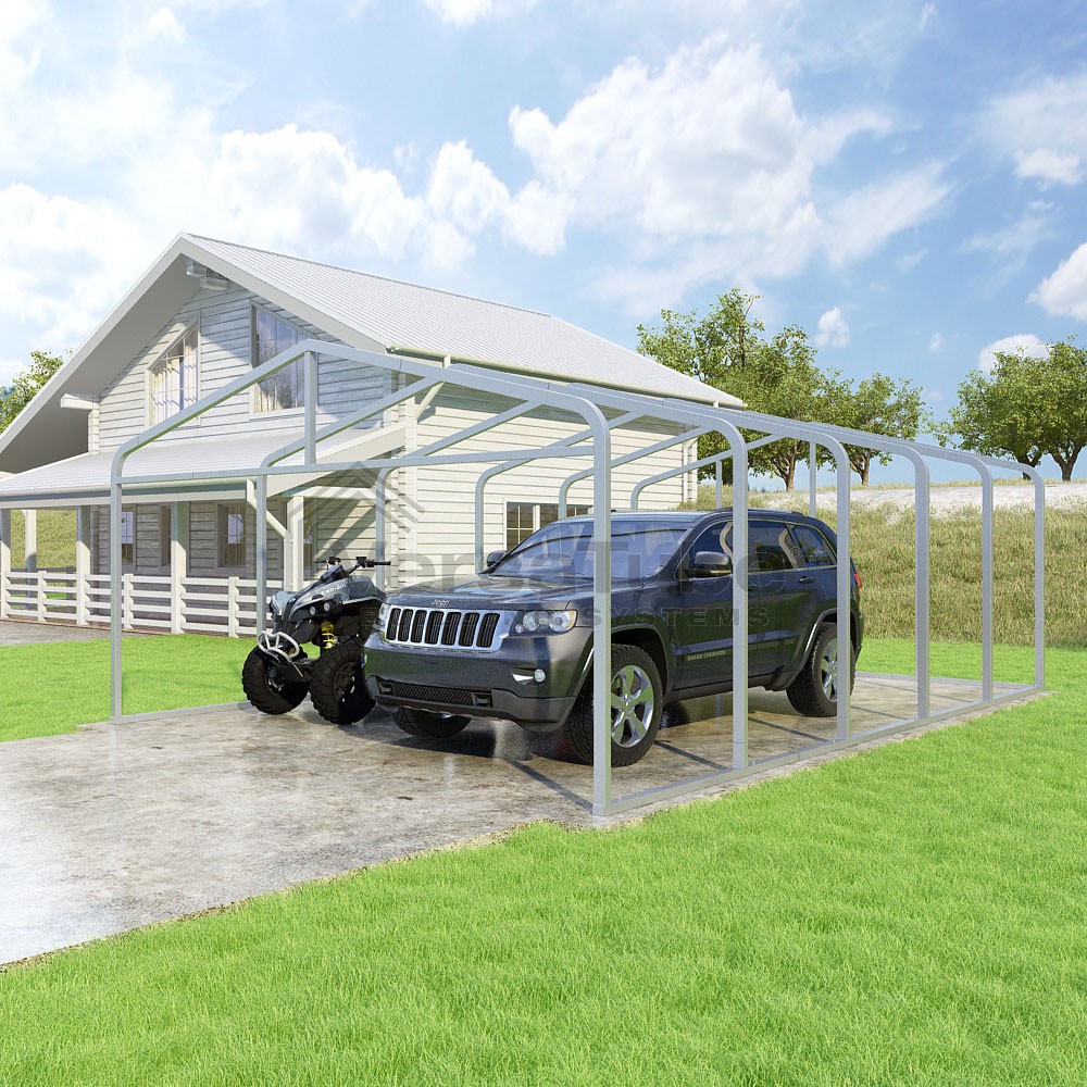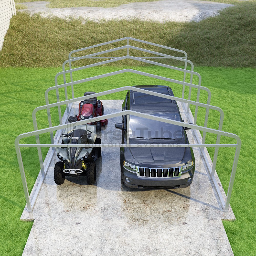 Classic Series DIY carport frame kit is designed for horizontal sheet metal application, resulting in a more cost-effective shelter or canopy solution. The rounded bends allow the sheet metal to naturally roll over the sides ensuring additional protection from elements entering from the sides.