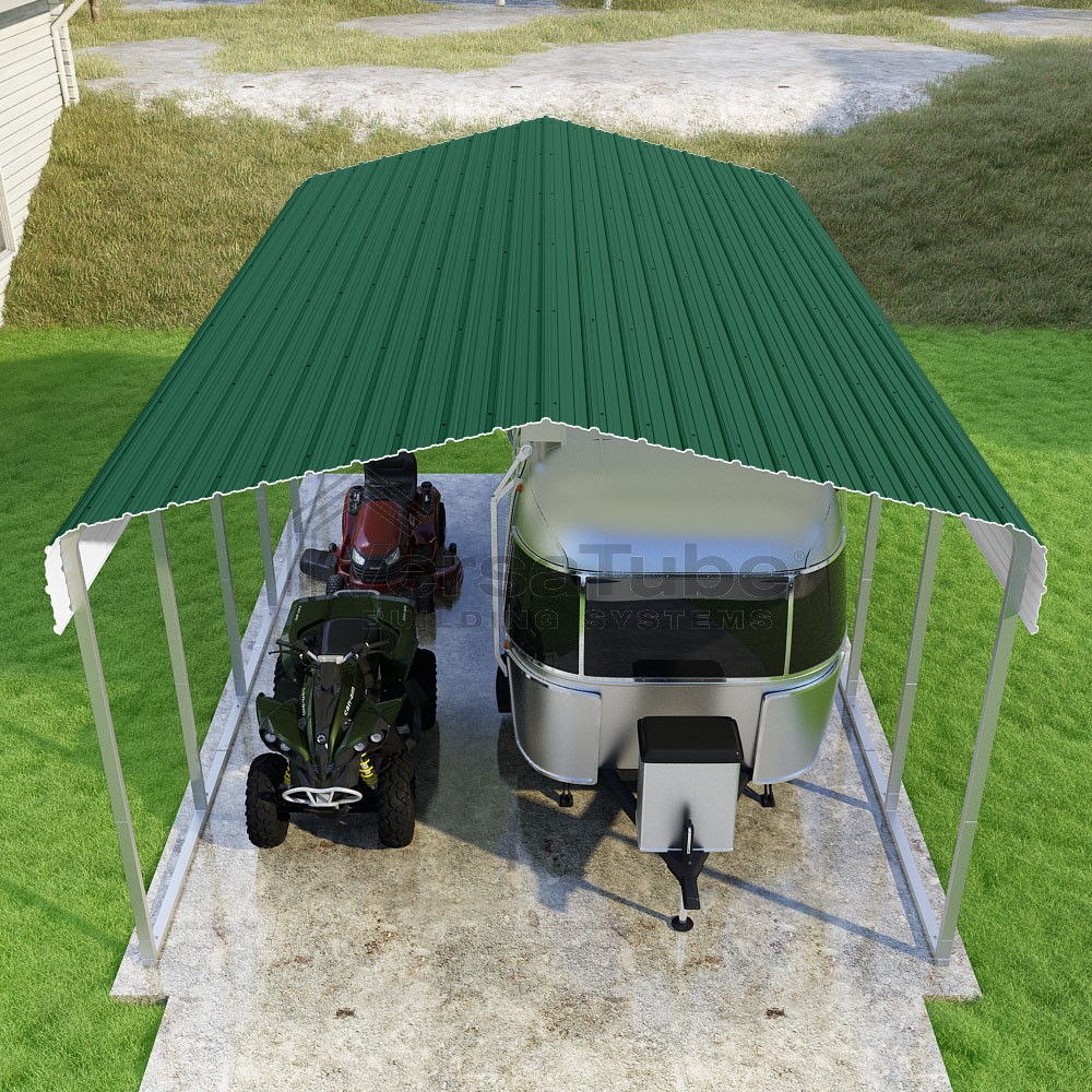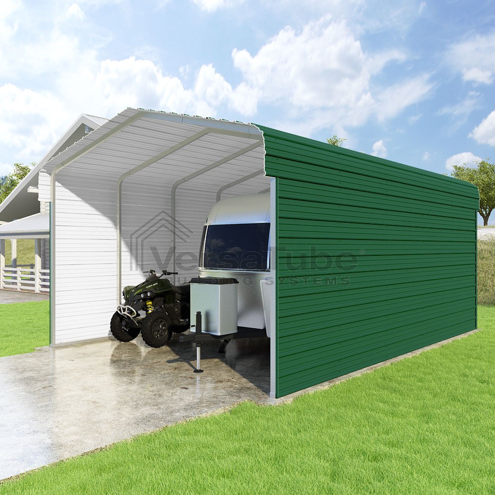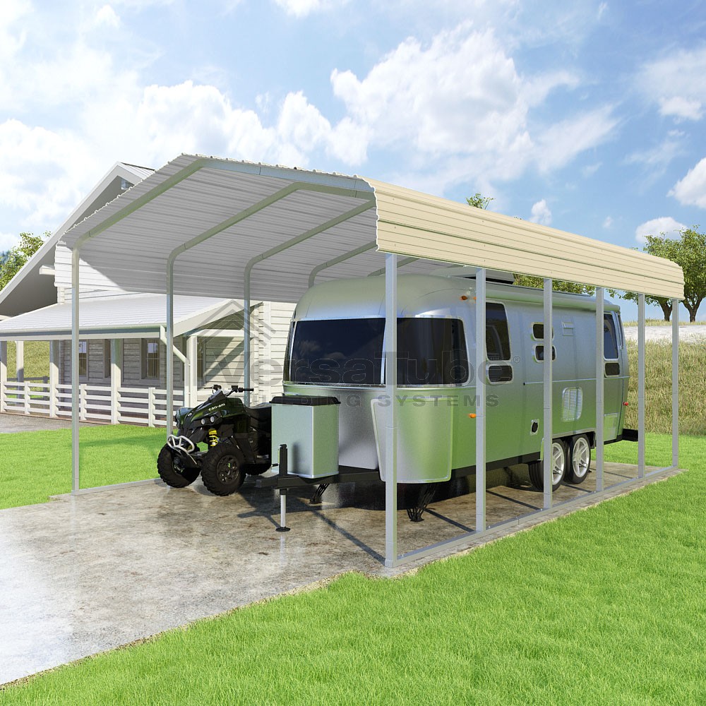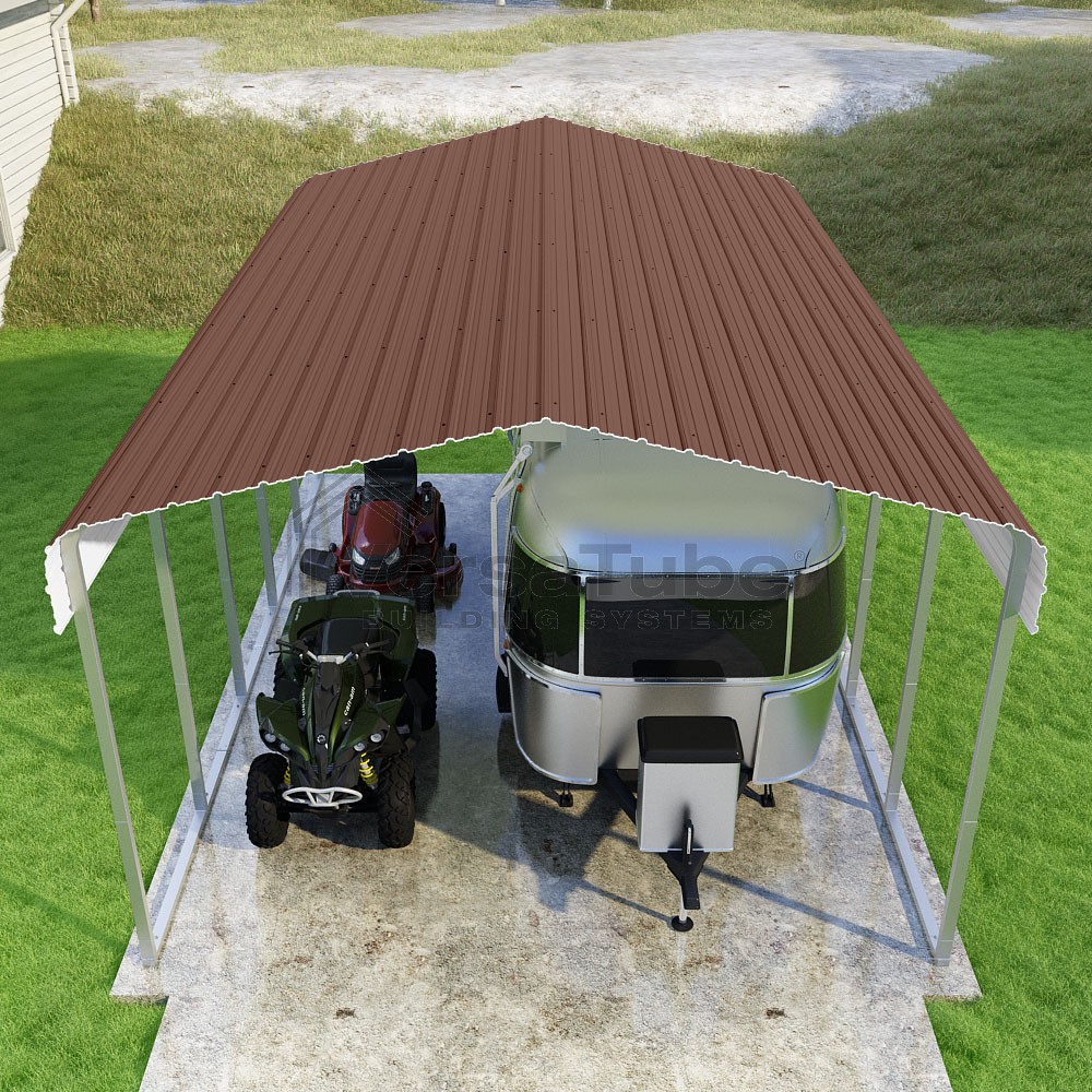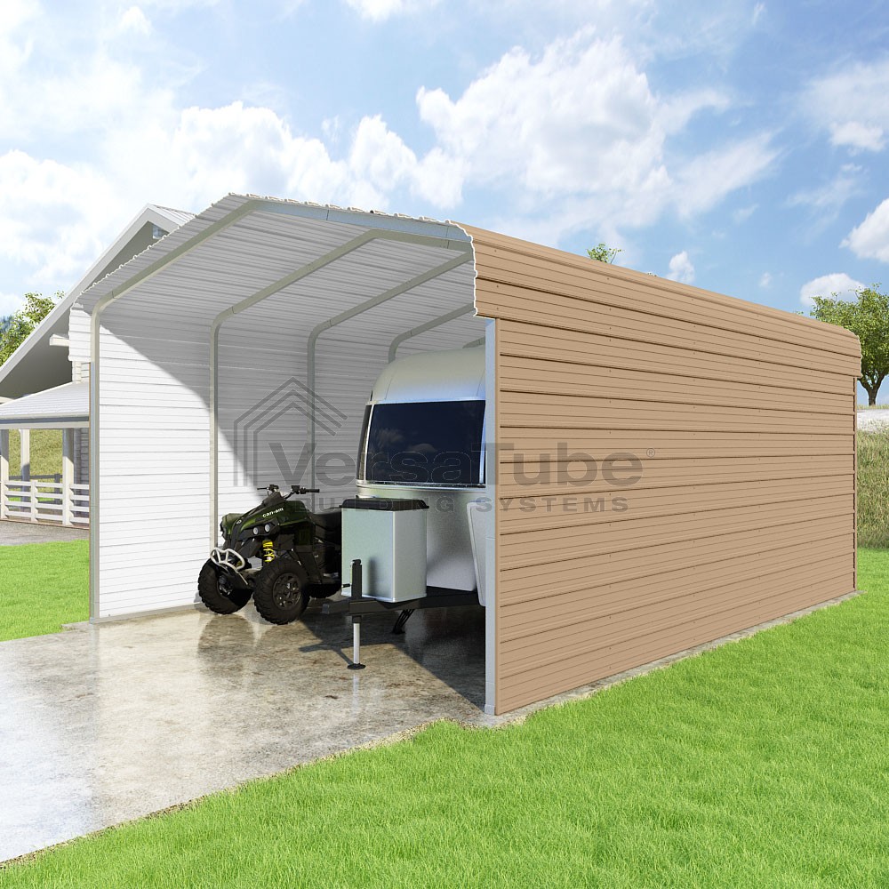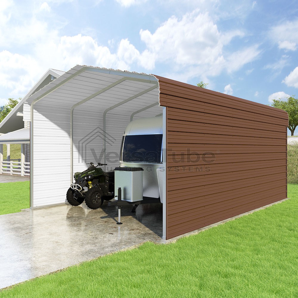 Classic Series DIY carport kit features horizontal application of sheet metal panels with the extra protection of rounded eaves.