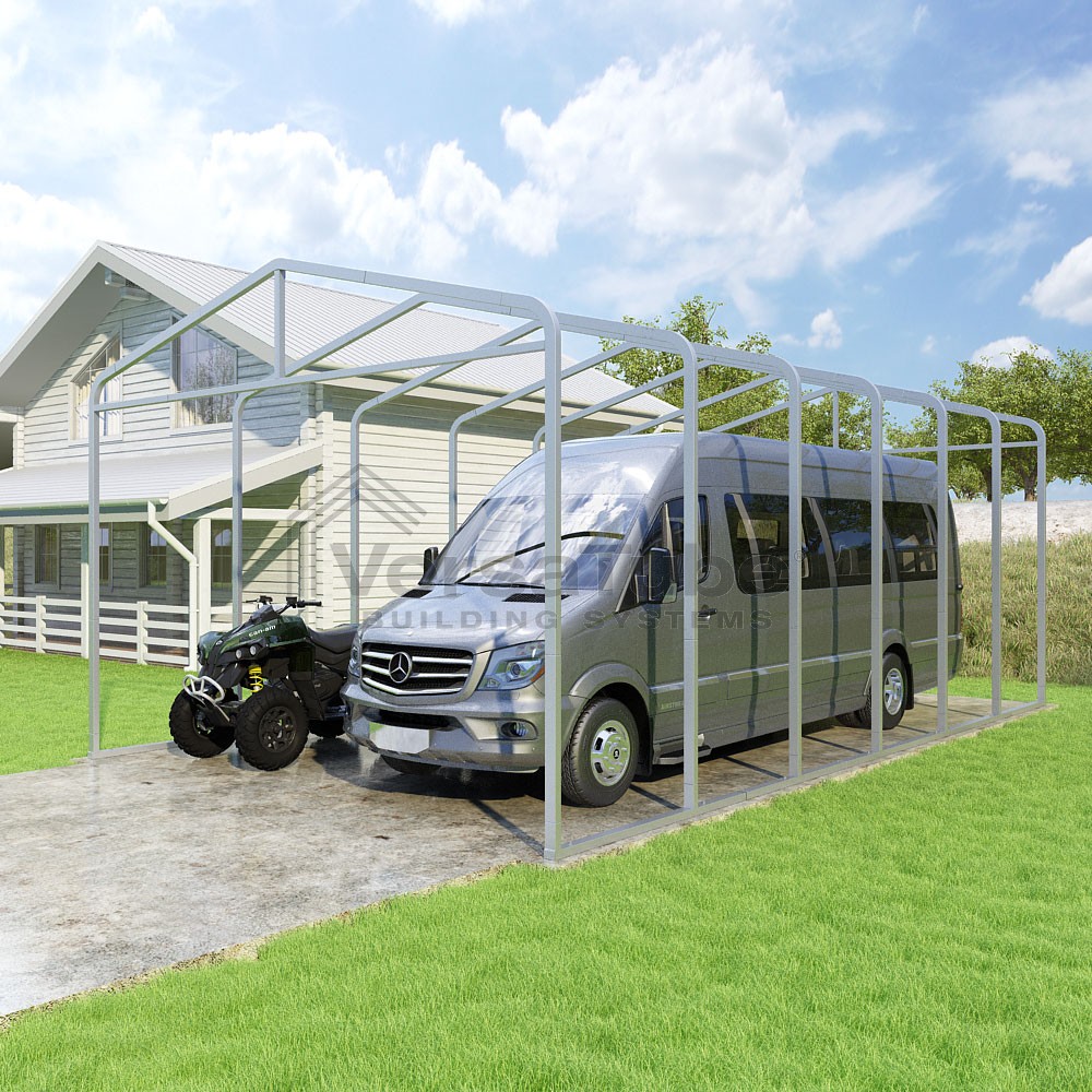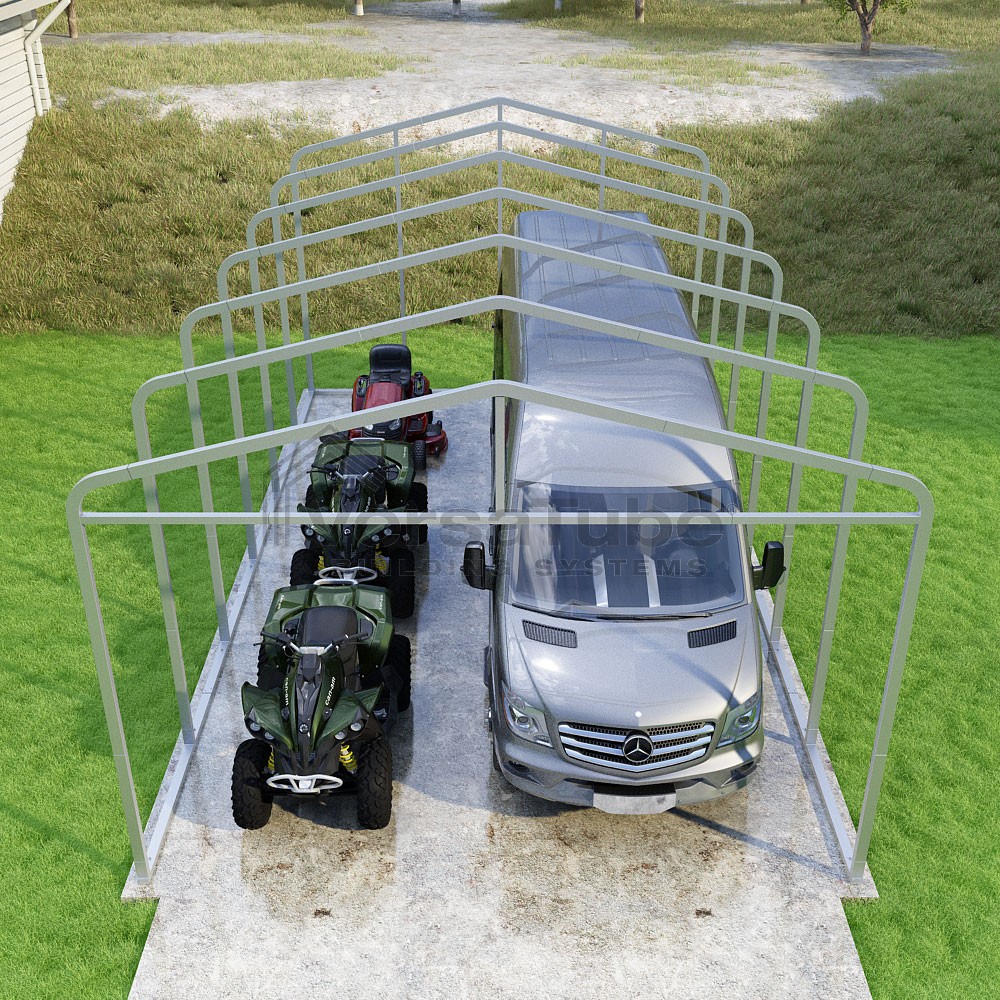 Classic Series DIY carport frame kit is designed for horizontal sheet metal application, resulting in a more cost-effective shelter or canopy solution. The rounded bends allow the sheet metal to naturally roll over the sides ensuring additional protection from elements entering from the sides.