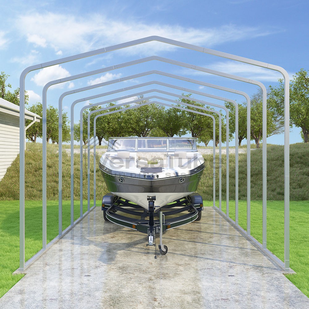 Classic Series DIY carport frame kit is designed for horizontal sheet metal application, resulting in a more cost-effective shelter or canopy solution. The rounded bends allow the sheet metal to naturally roll over the sides ensuring additional protection from elements entering from the sides.