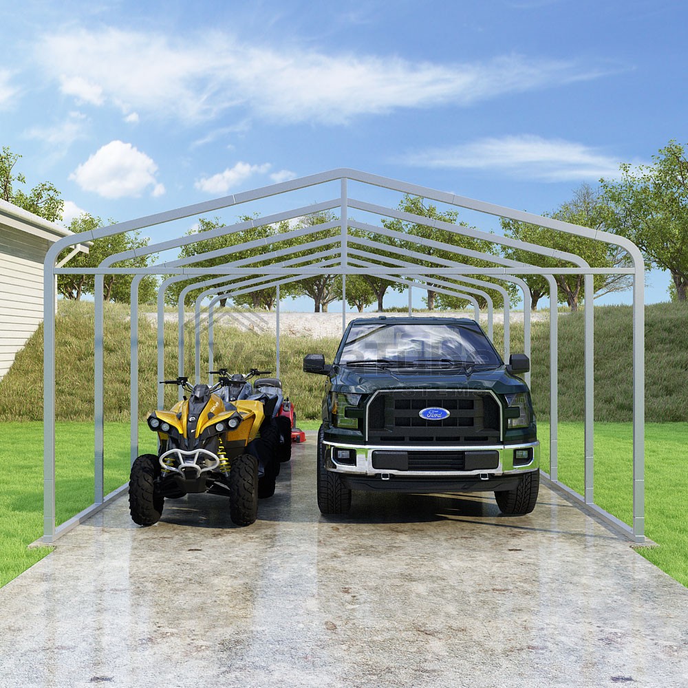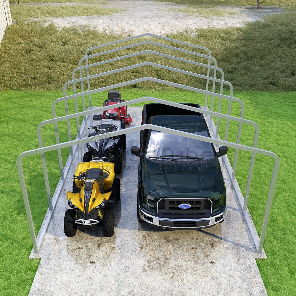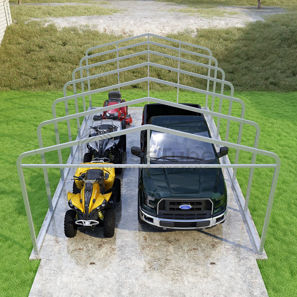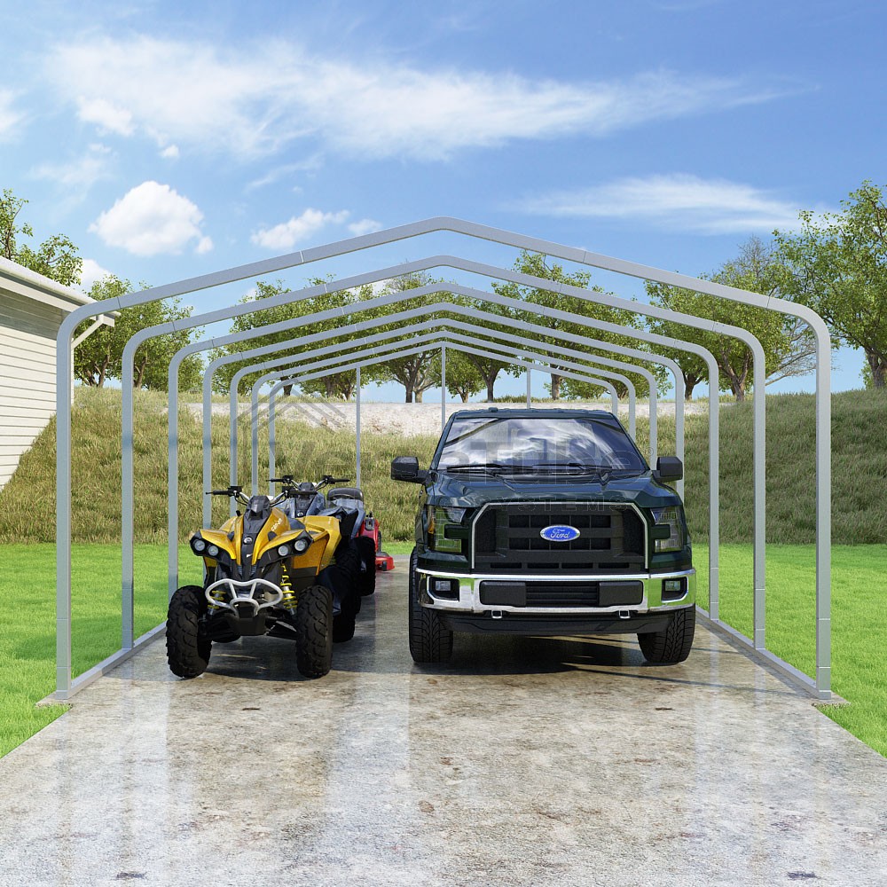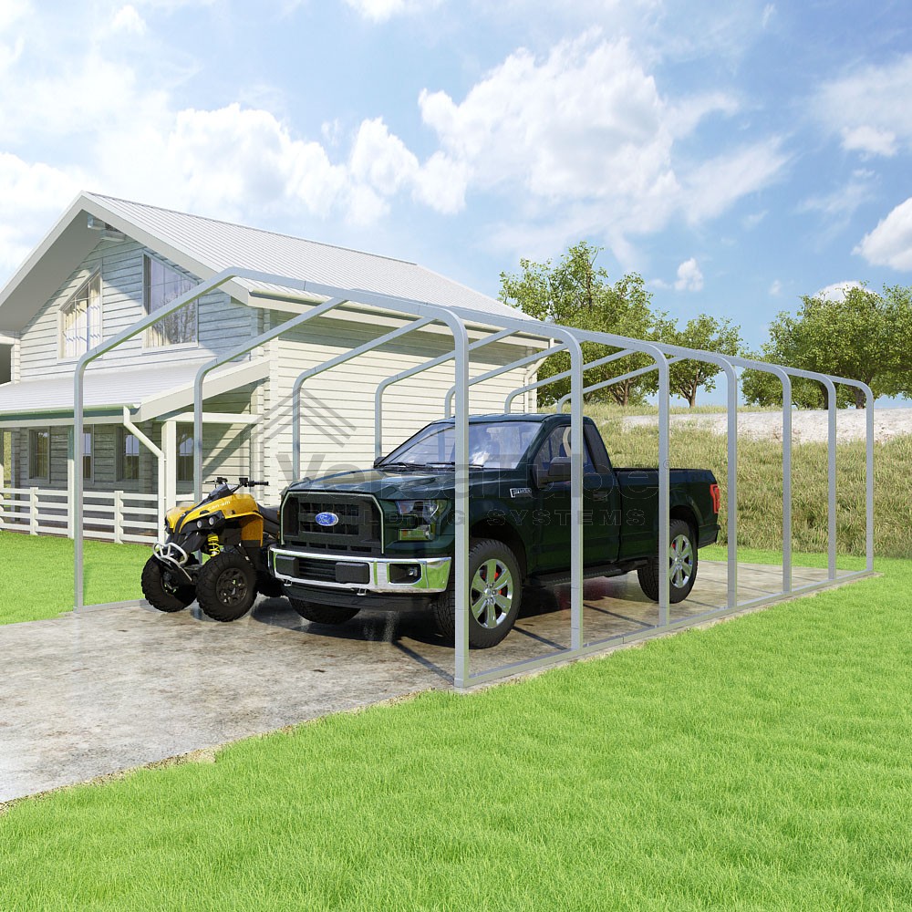 Classic Series DIY carport frame kit is designed for horizontal sheet metal application, resulting in a more cost-effective shelter or canopy solution. The rounded bends allow the sheet metal to naturally roll over the sides ensuring additional protection from elements entering from the sides.