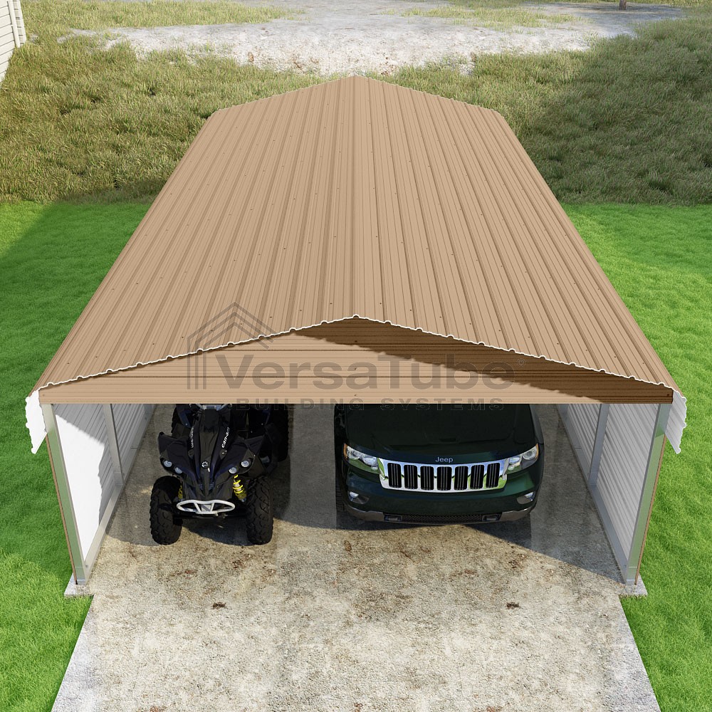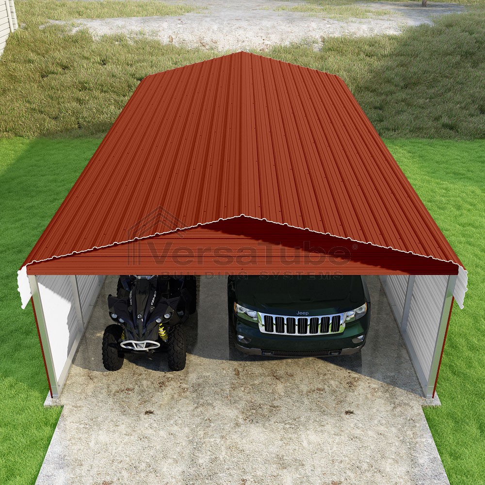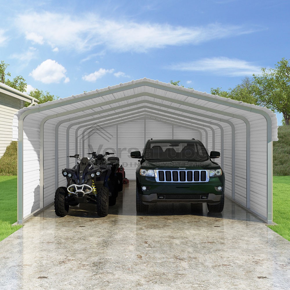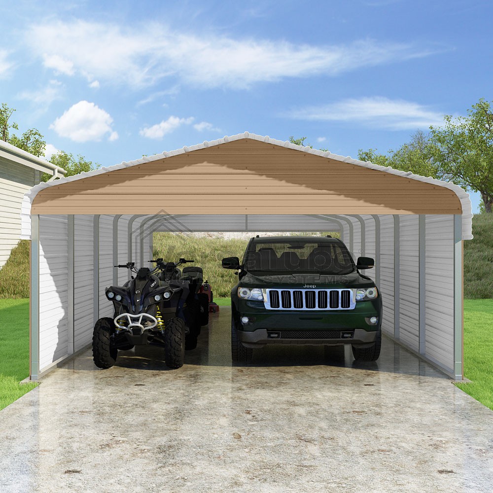 Classic Series DIY carport kit features horizontal application of sheet metal panels with the extra protection of rounded eaves.