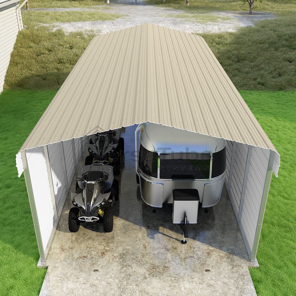 "I was very impressed with the installation instructions and quality of the material. My son-in -law and myself completed this installation in 2 days. I just purchased a new RV and I like that I don’t have to worry about sun rot or weather damage . This building was a 30’X30’ with a back wall. Going to enjoy it for years to come.