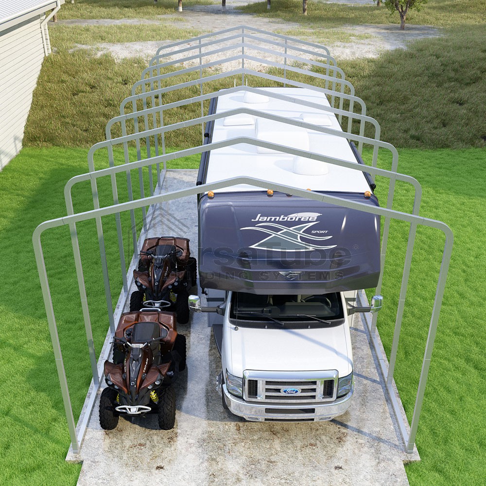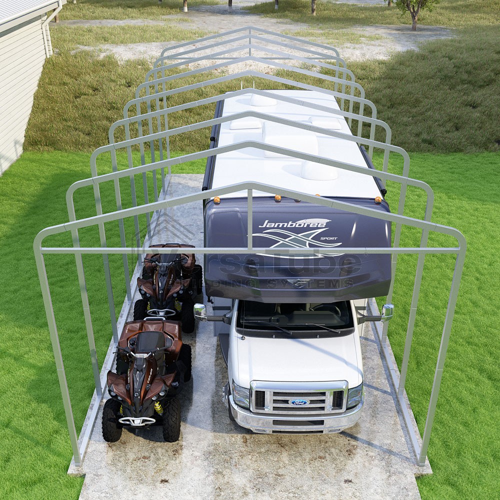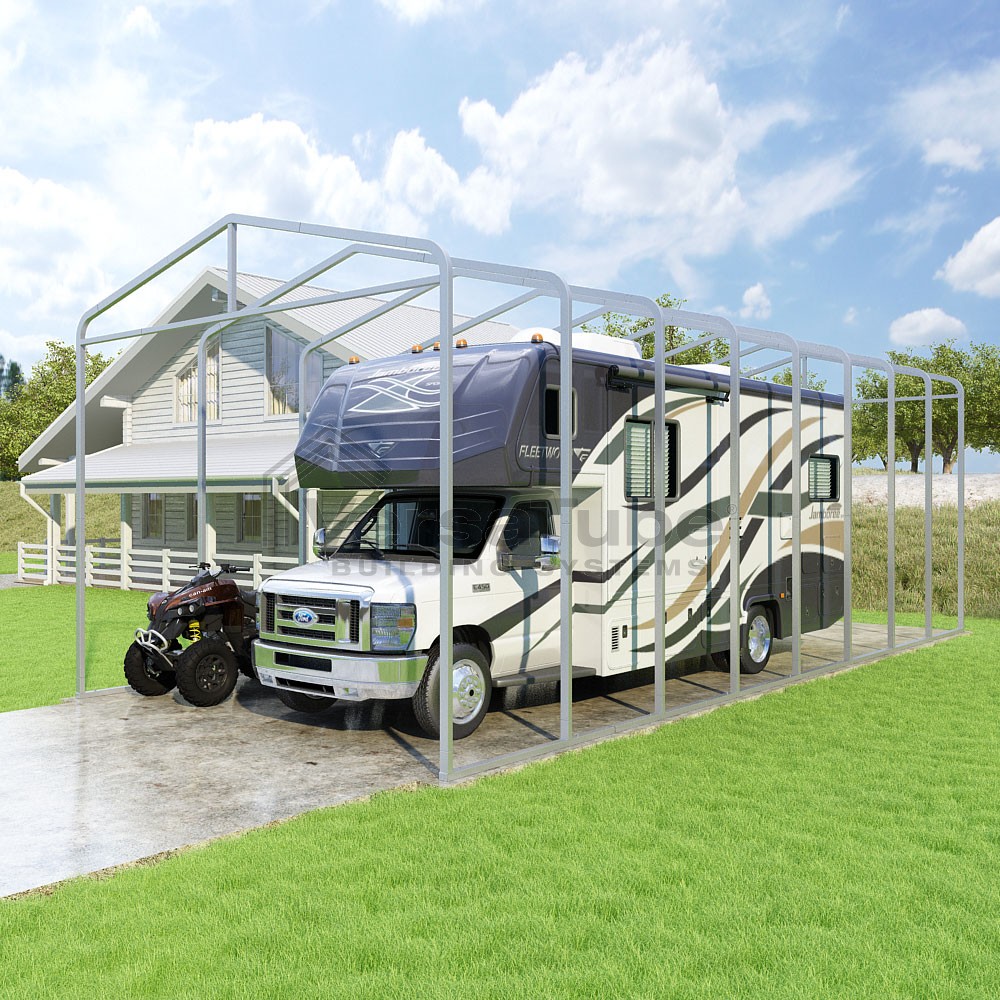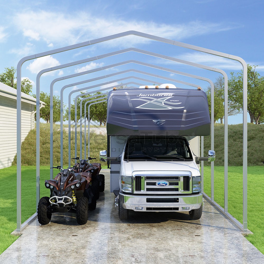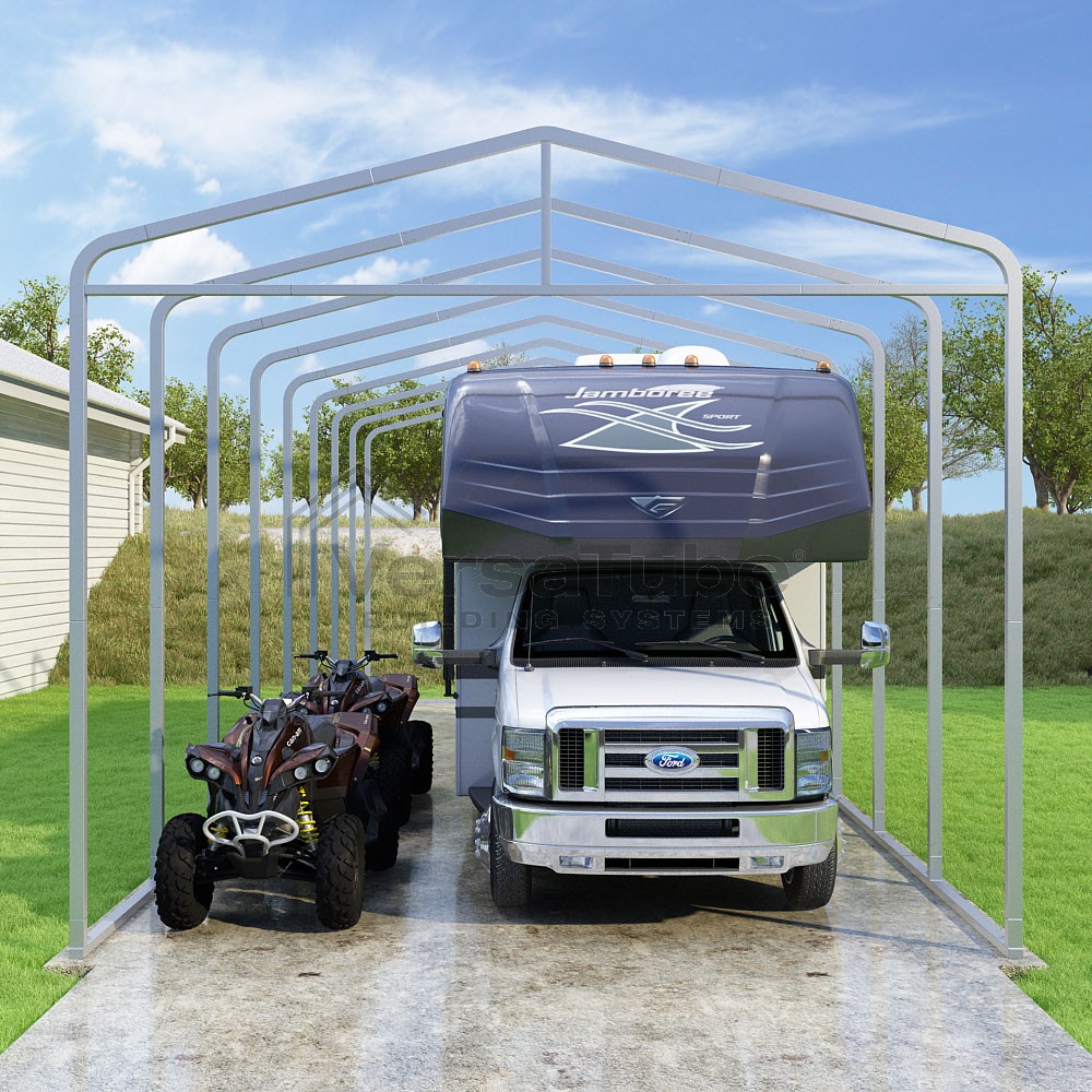 Classic Series DIY carport frame kit is designed for horizontal sheet metal application, resulting in a more cost-effective shelter or canopy solution. The rounded bends allow the sheet metal to naturally roll over the sides ensuring additional protection from elements entering from the sides.