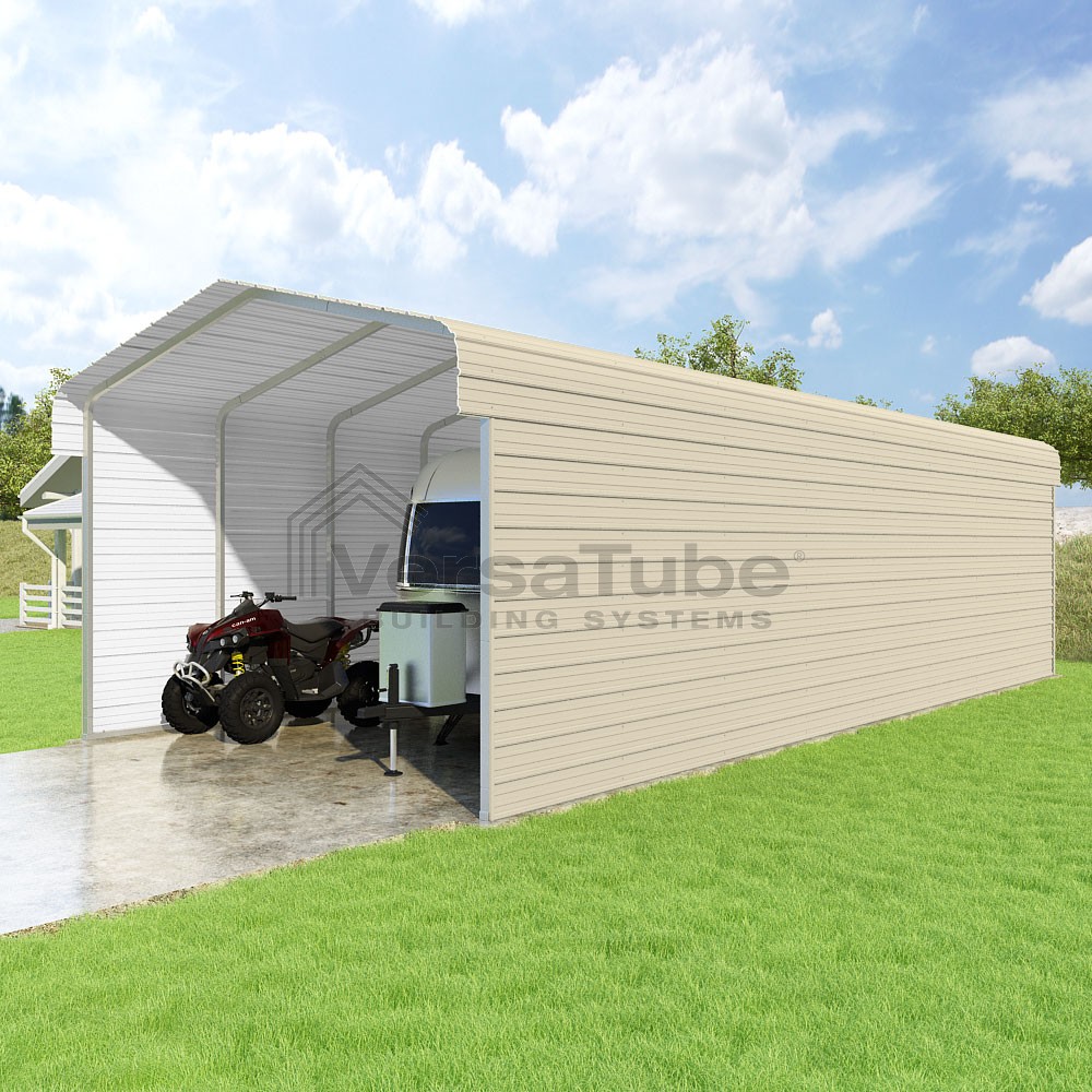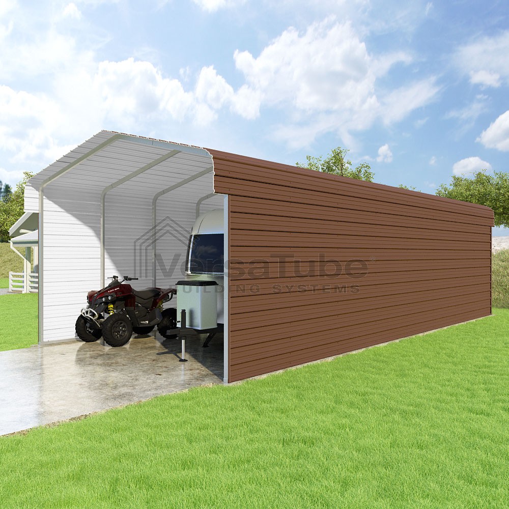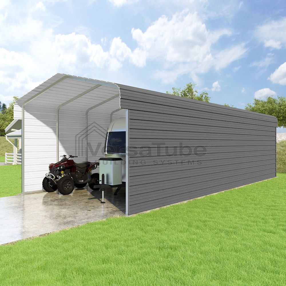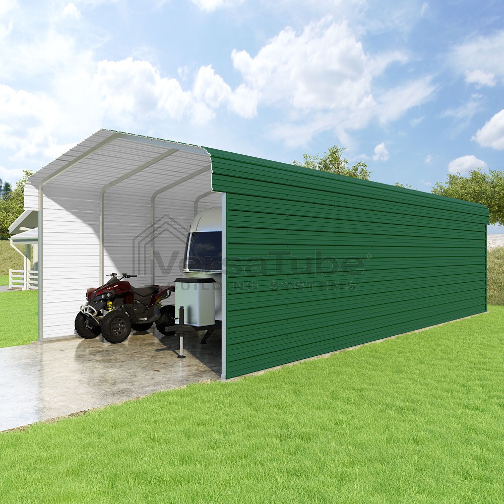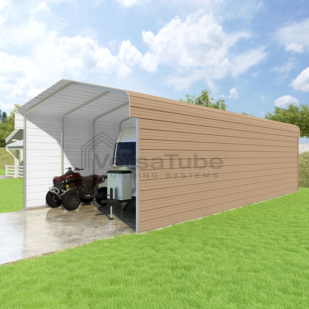 Classic Series DIY carport kit features horizontal application of sheet metal panels with the extra protection of rounded eaves.