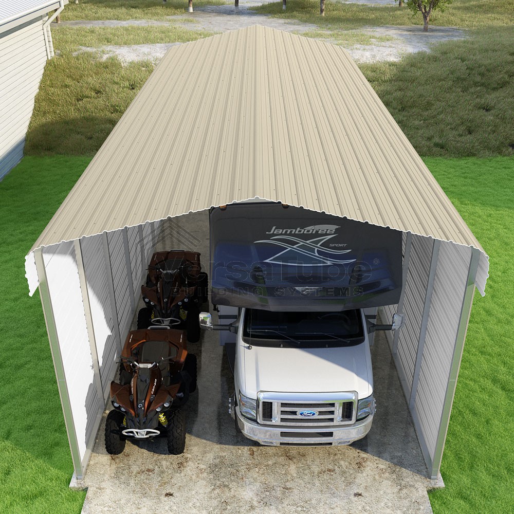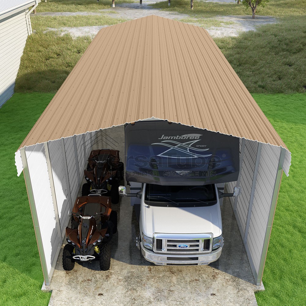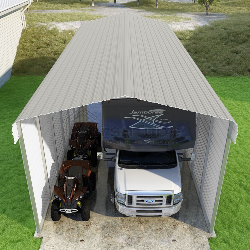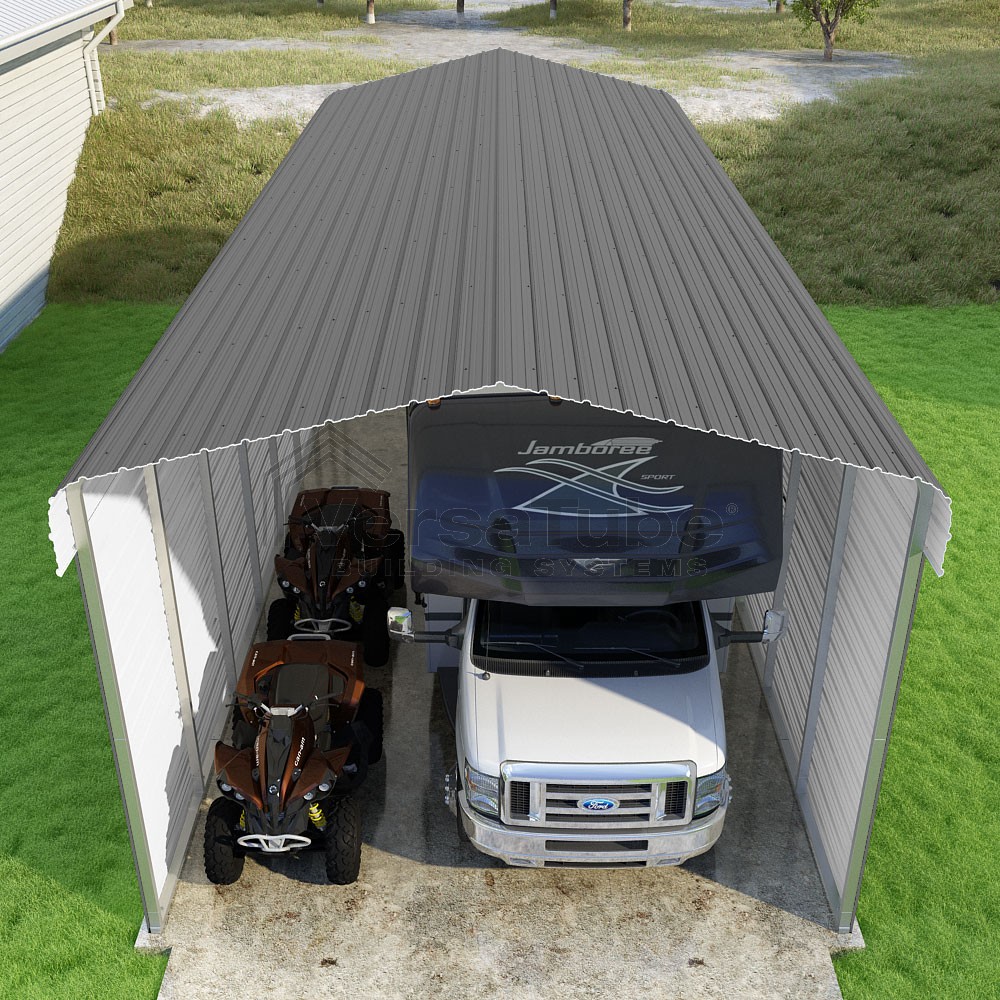 "I was very impressed with the installation instructions and quality of the material. My son-in -law and myself completed this installation in 2 days. I just purchased a new RV and I like that I don’t have to worry about sun rot or weather damage . This building was a 30’X30’ with a back wall. Going to enjoy it for years to come.
