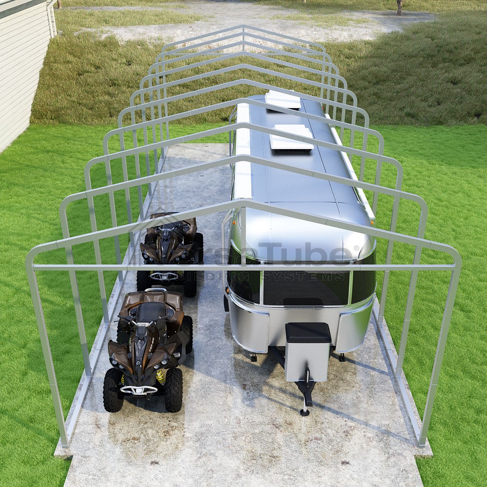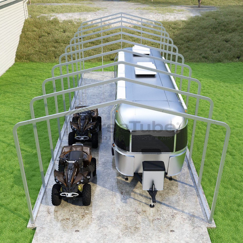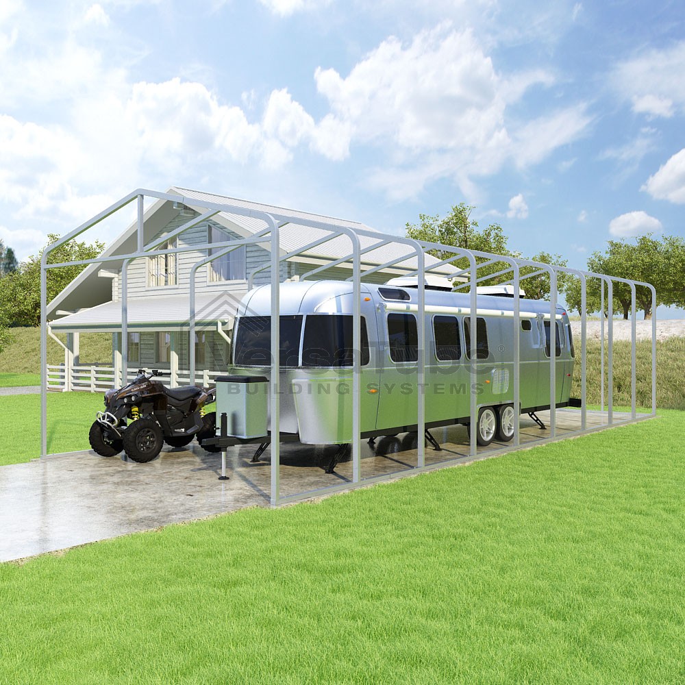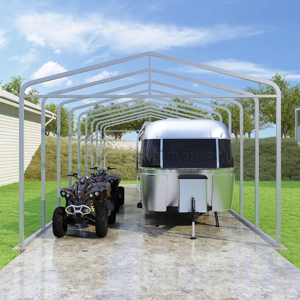 Classic Series DIY carport frame kit is designed for horizontal sheet metal application, resulting in a more cost-effective shelter or canopy solution. The rounded bends allow the sheet metal to naturally roll over the sides ensuring additional protection from elements entering from the sides.