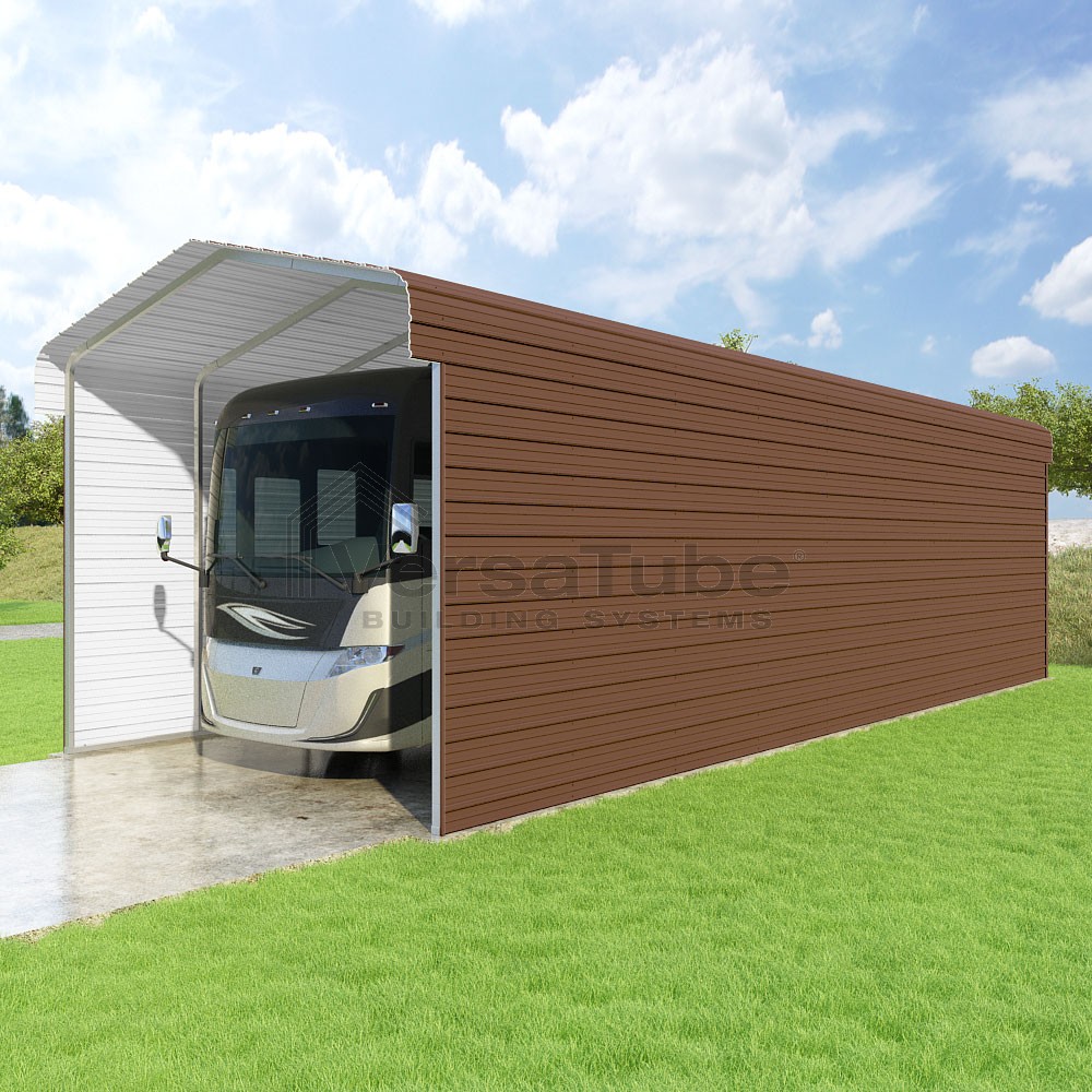 "I was very impressed with the installation instructions and quality of the material. My son-in -law and myself completed this installation in 2 days. I just purchased a new RV and I like that I don’t have to worry about sun rot or weather damage . This building was a 30’X30’ with a back wall. Going to enjoy it for years to come.