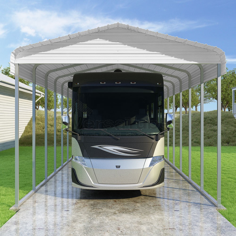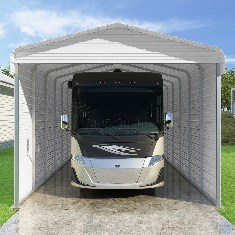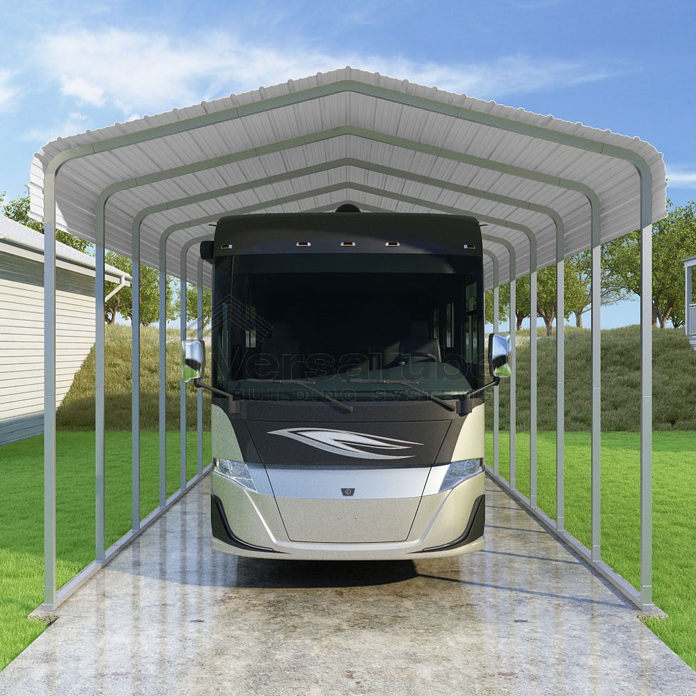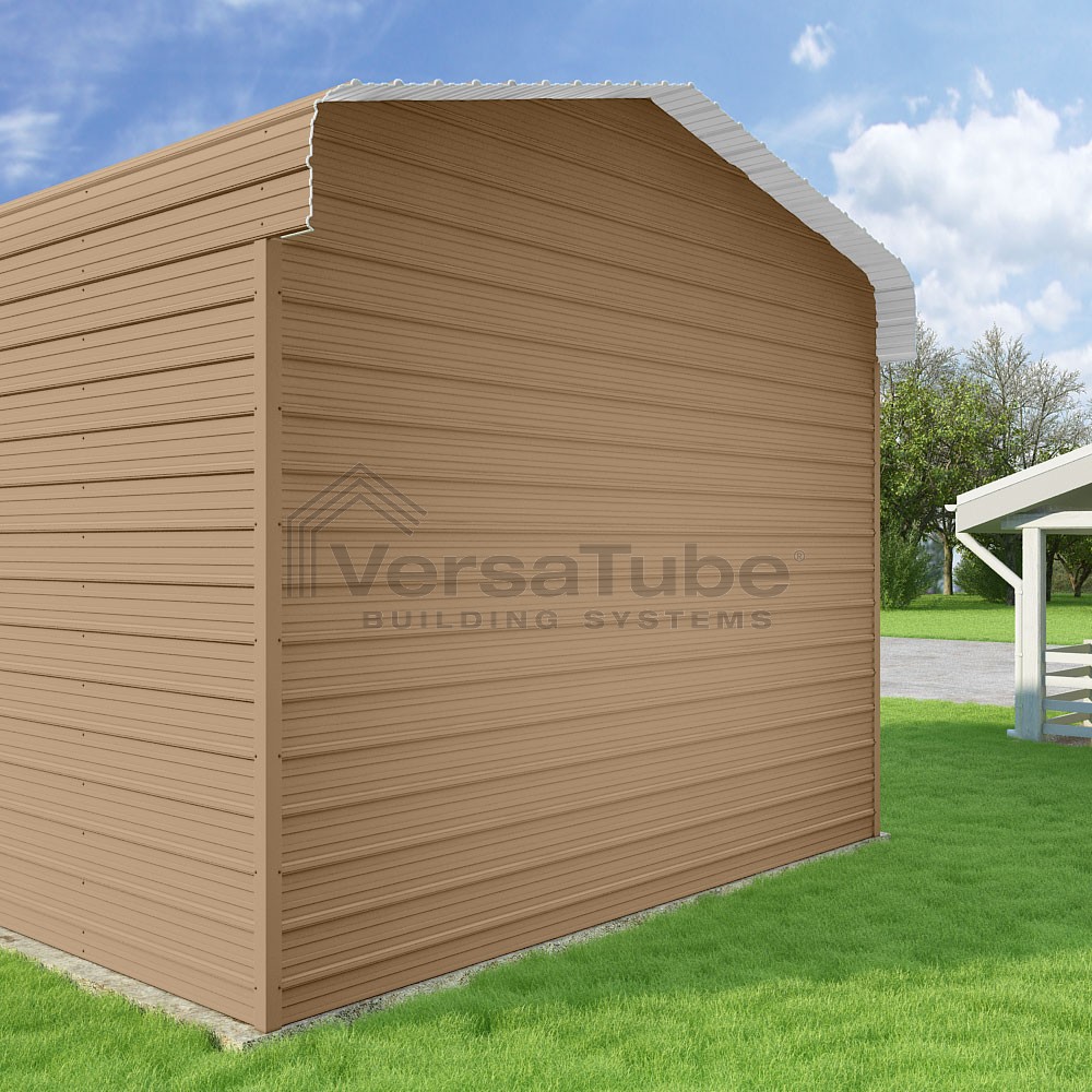 Classic Series DIY carport kit features horizontal application of sheet metal panels with the extra protection of rounded eaves.