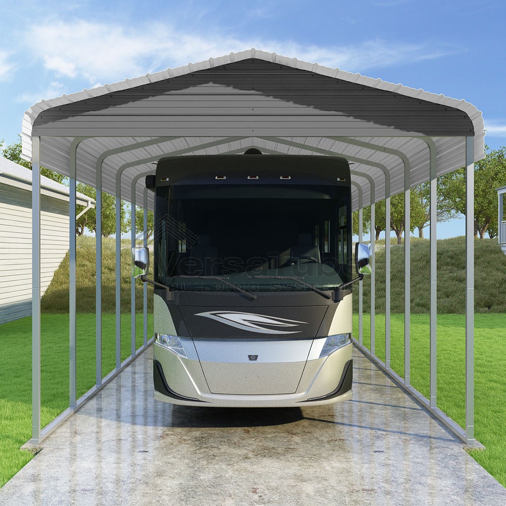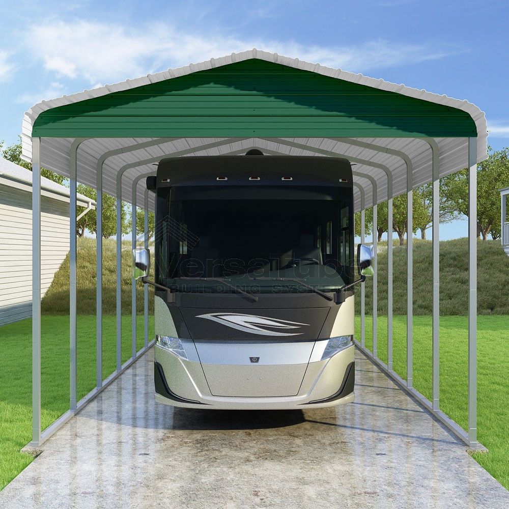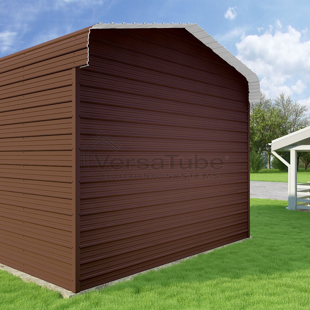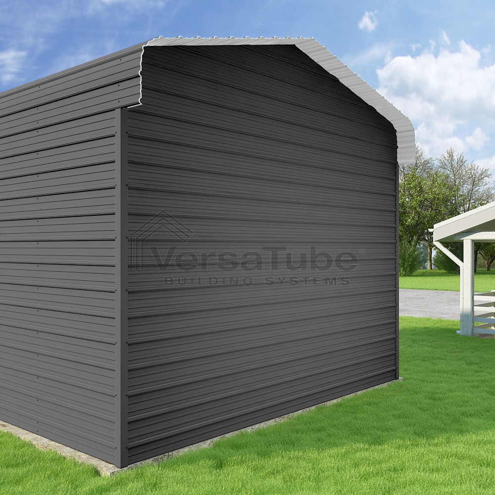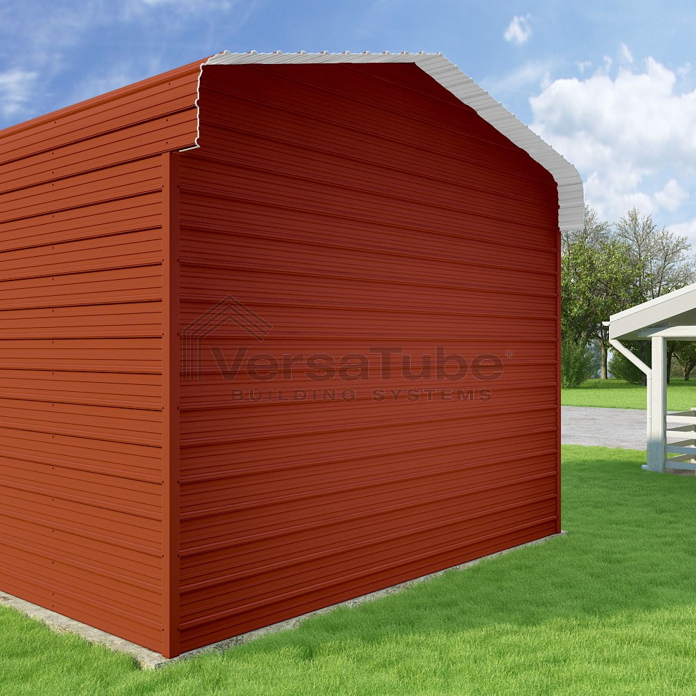 Classic Series DIY carport kit features horizontal application of sheet metal panels with the extra protection of rounded eaves.