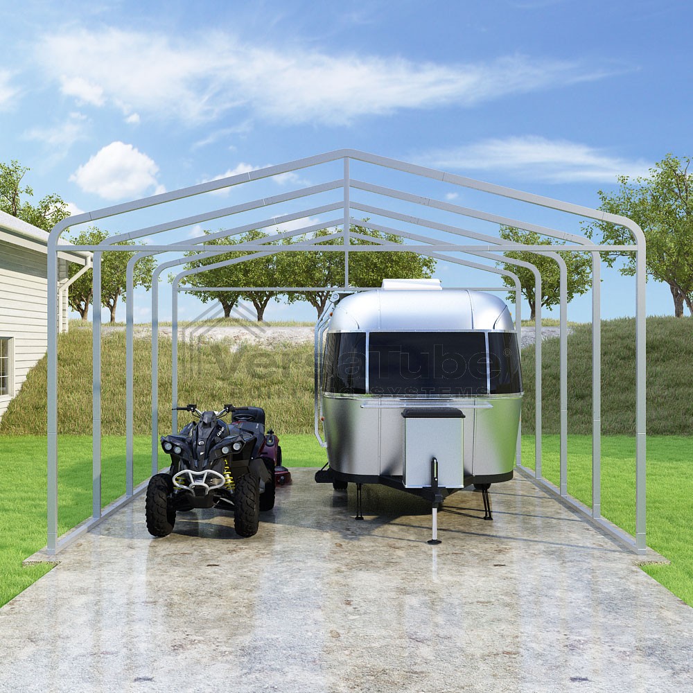 The Classic design utilizes a horizontal sheet metal roof application which has become a popular mainstay for accommodating carport or shelters solutions in a more affordable manner by eliminating the need for roof purlins and ridge cap trim. And with the VersaTube Slip-Fit frame system, you can get your carport frame kit assembled in a single afternoon using common tools.