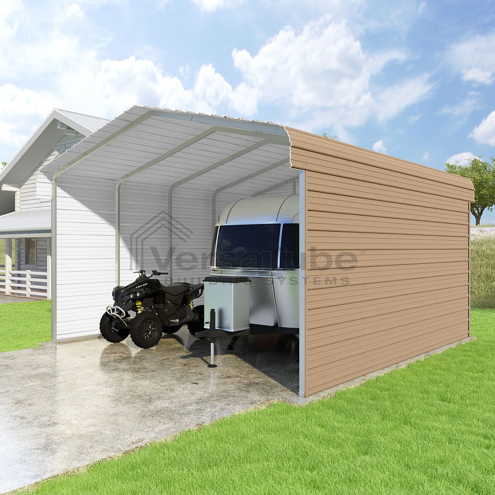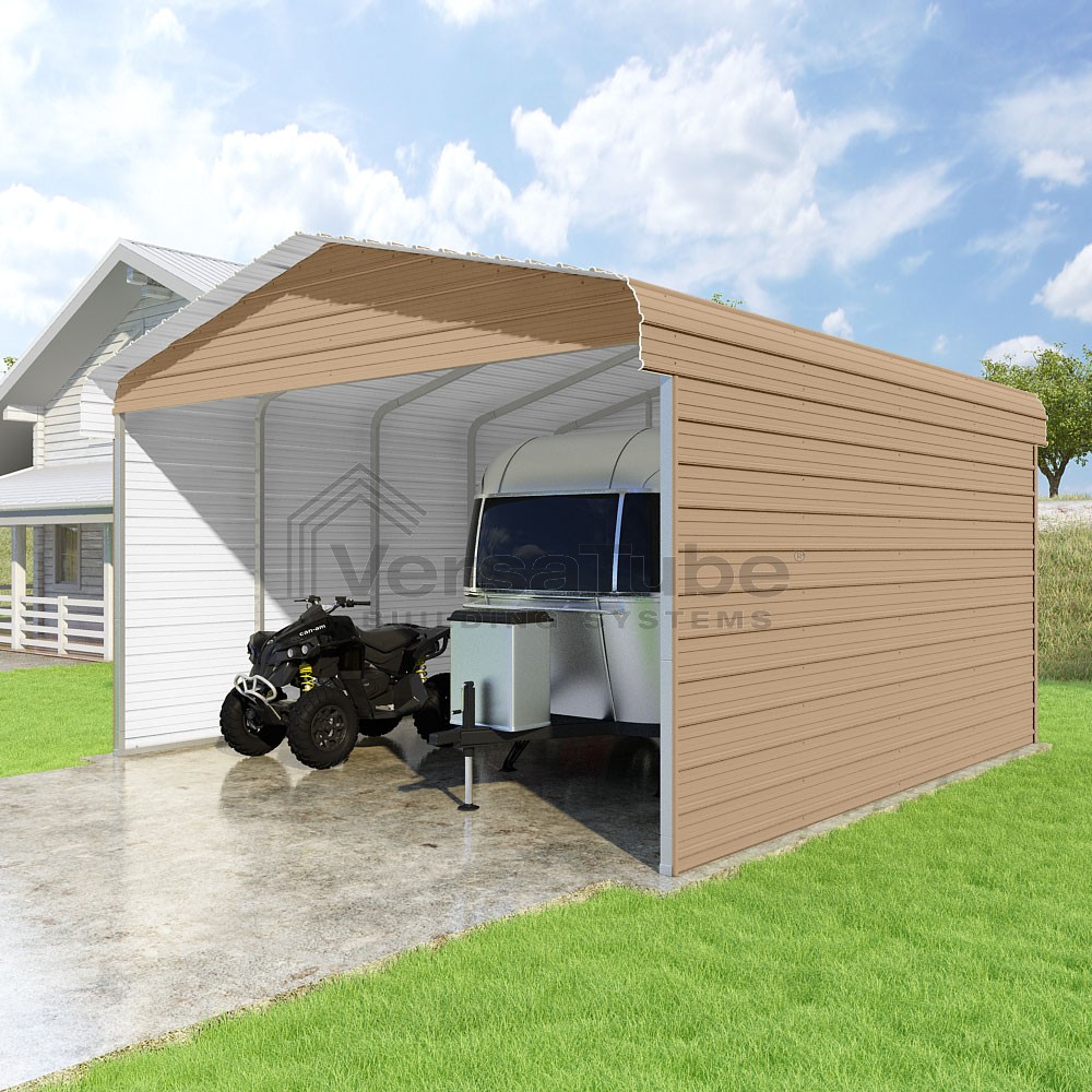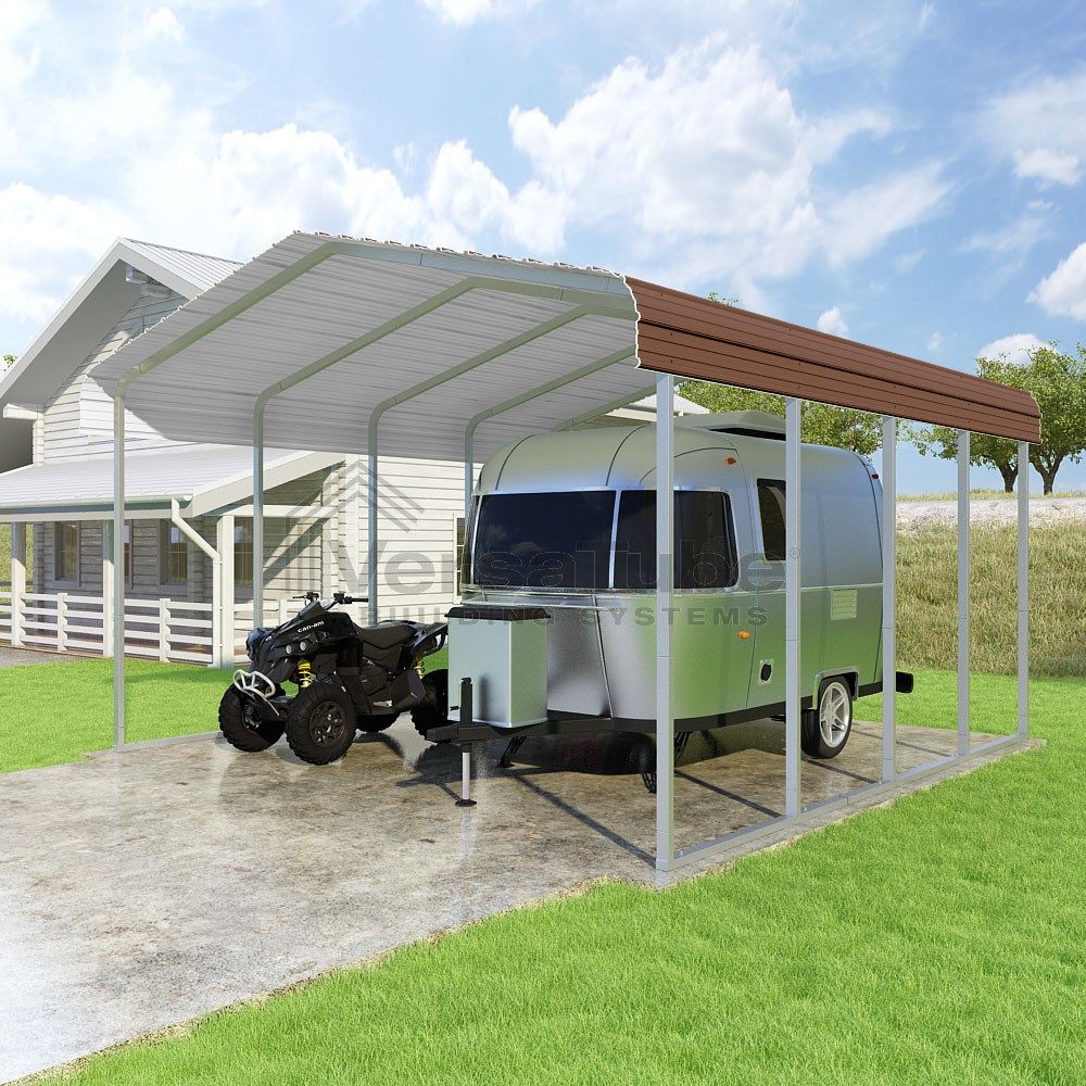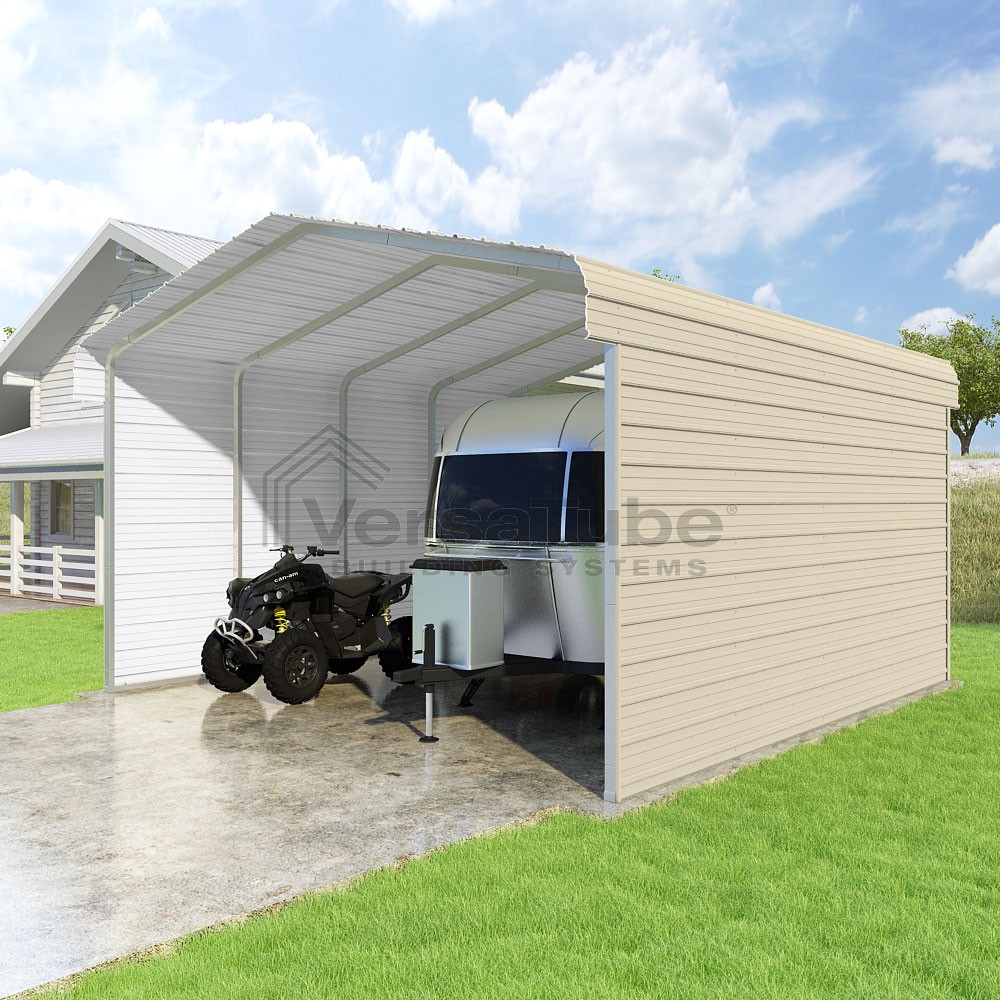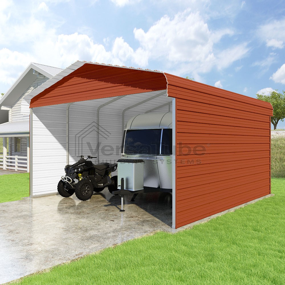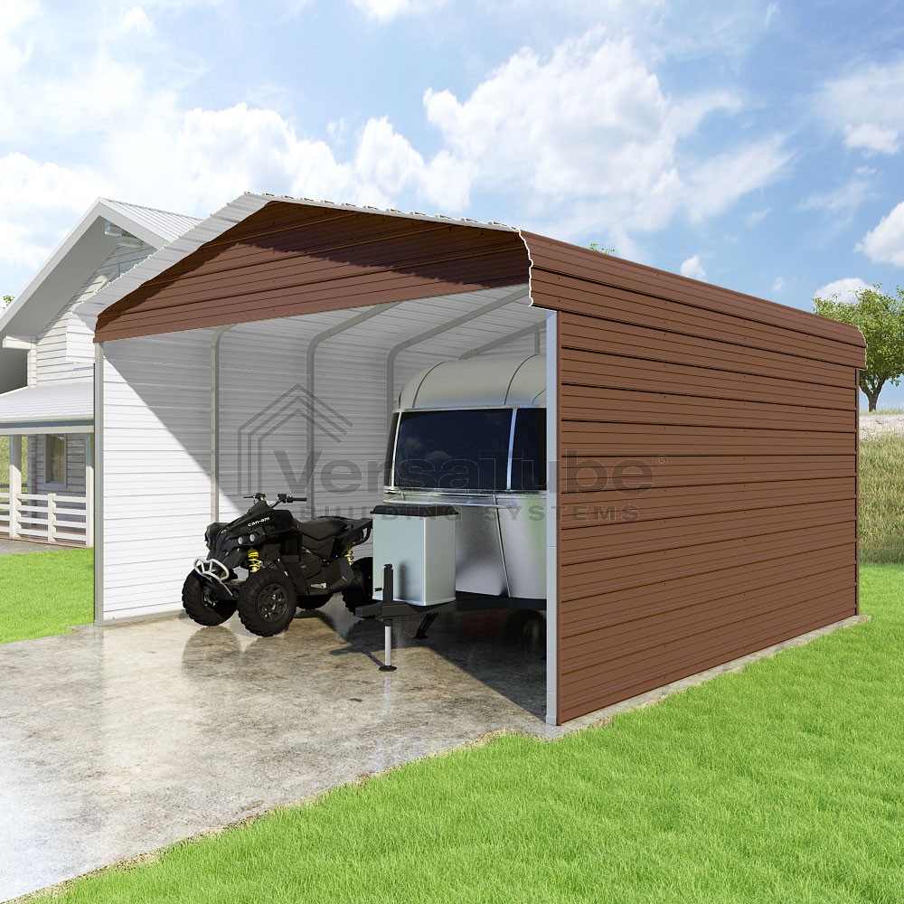 Classic Series DIY carport kit features horizontal application of sheet metal panels with the extra protection of rounded eaves.