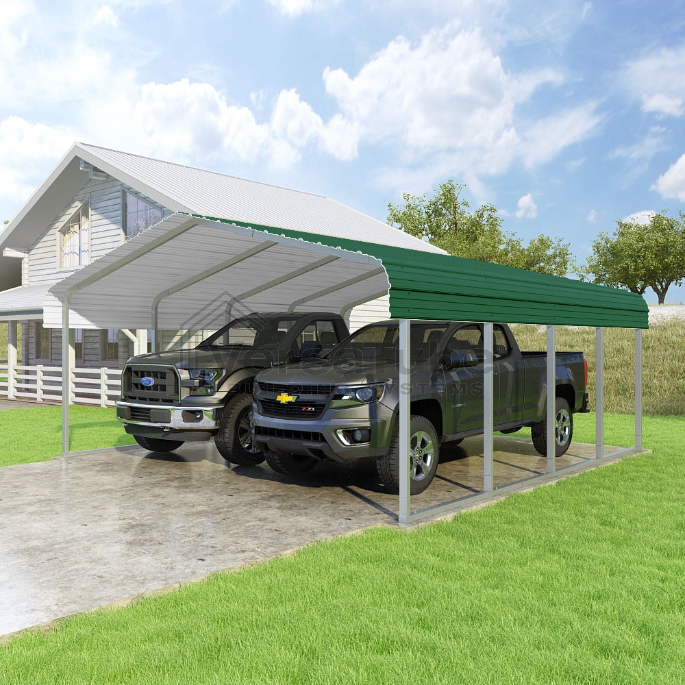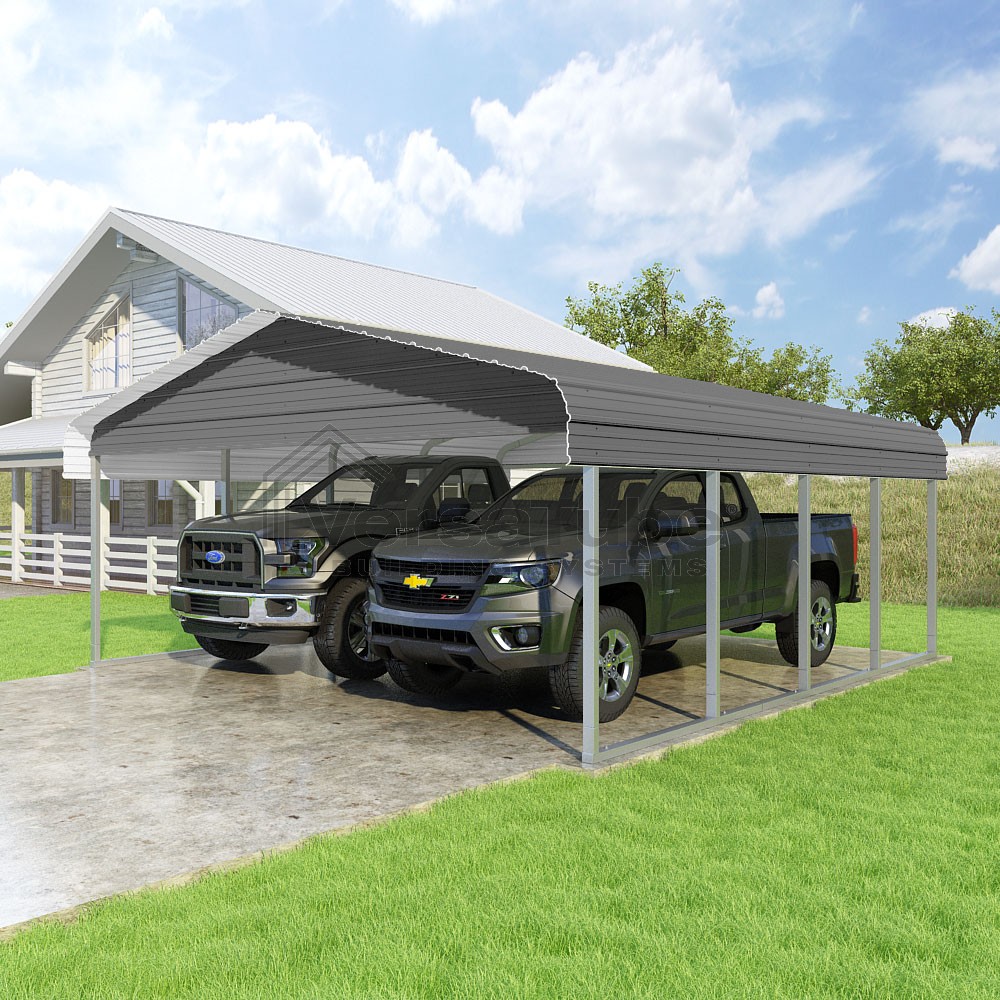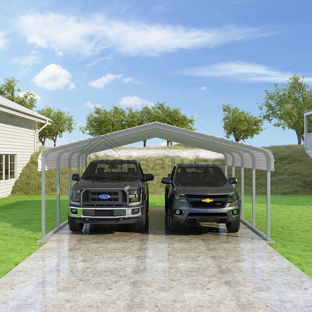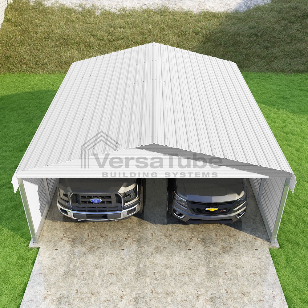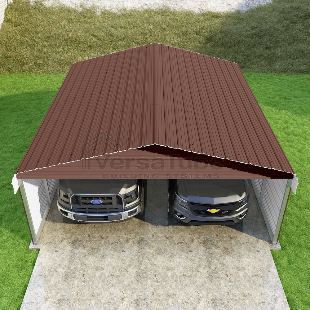 Classic Series DIY carport kit features horizontal application of sheet metal panels with the extra protection of rounded eaves.