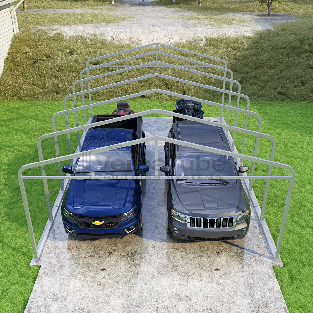 The Classic design utilizes a horizontal sheet metal roof application which has become a popular mainstay for accommodating carport or shelters solutions in a more affordable manner by eliminating the need for roof purlins and ridge cap trim. And with the VersaTube Slip-Fit frame system, you can get your carport frame kit assembled in a single afternoon using common tools.