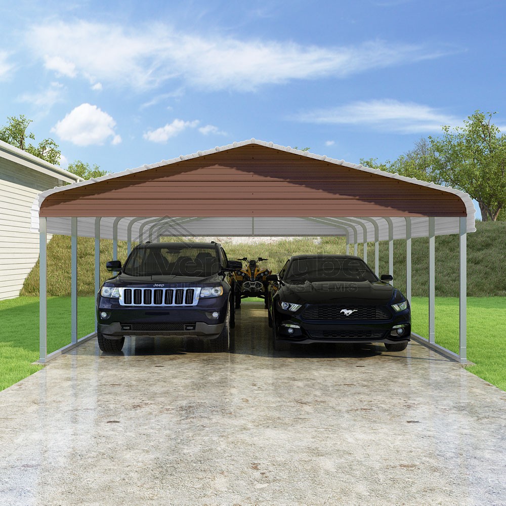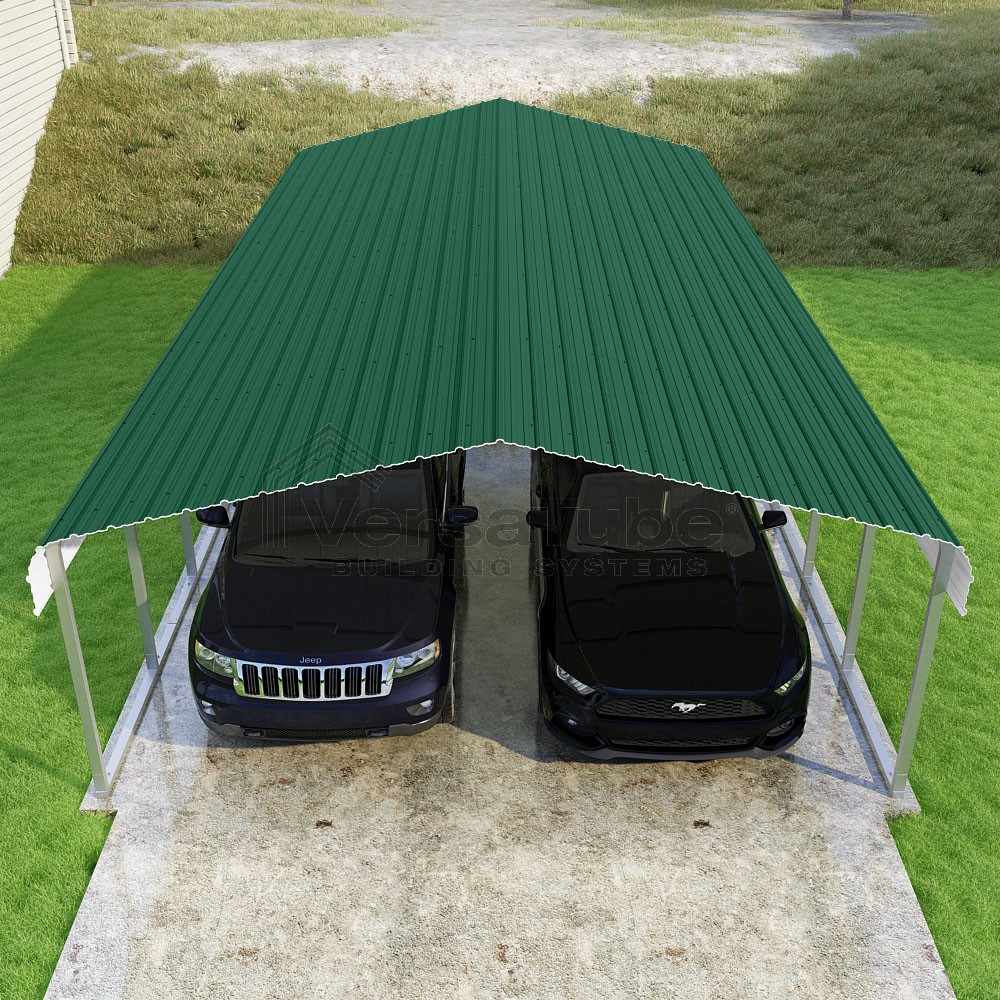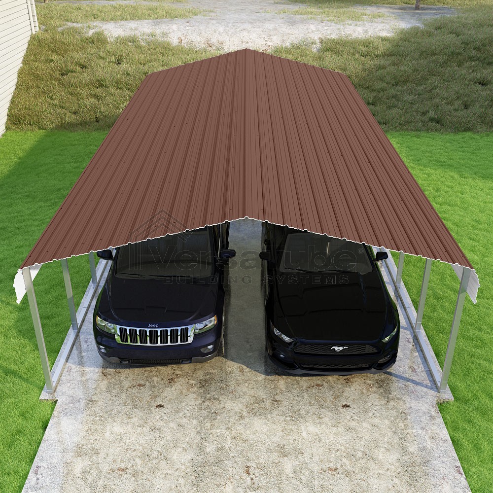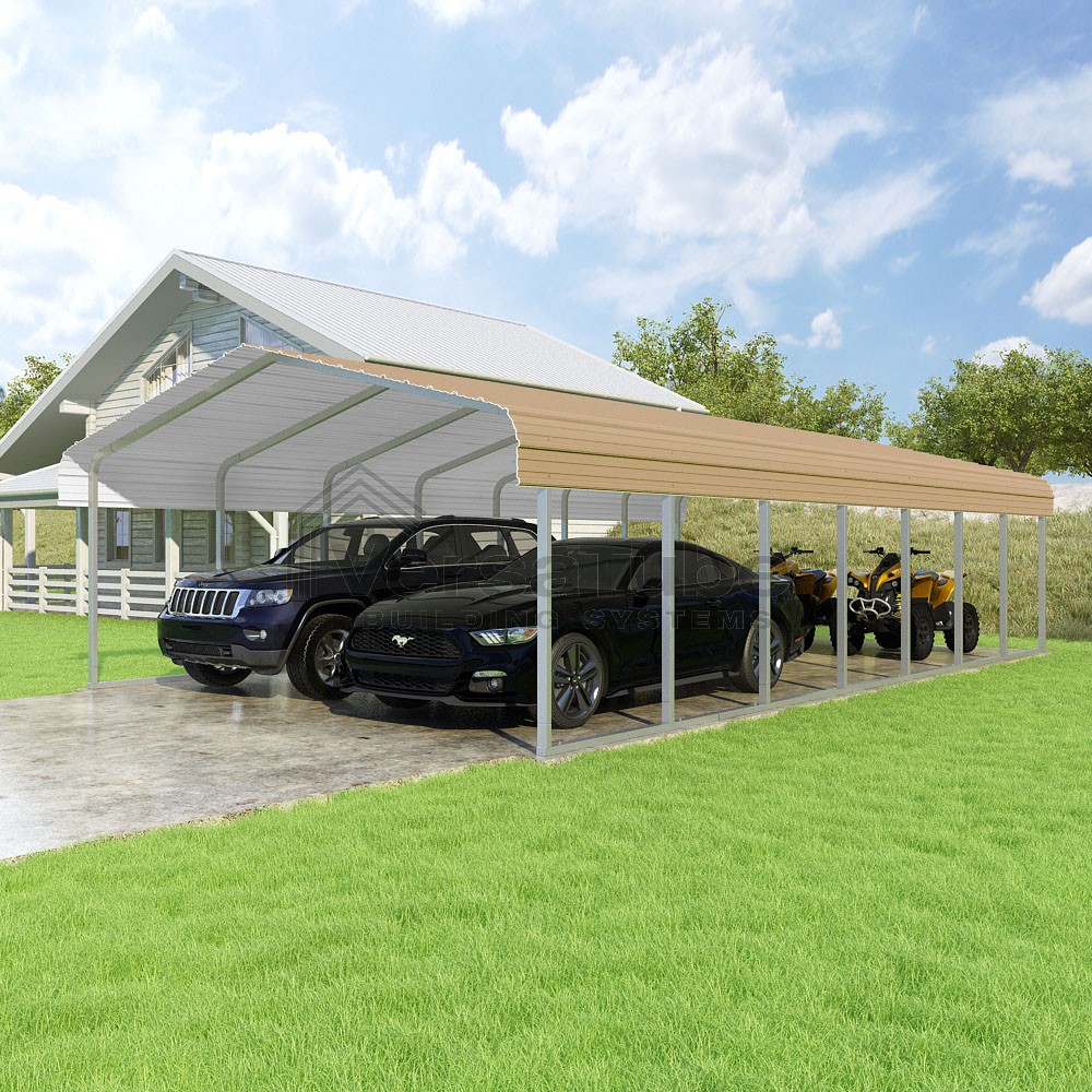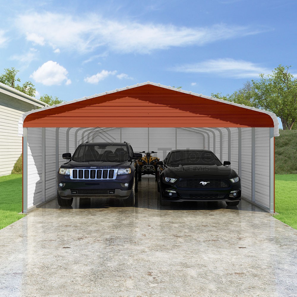Classic Series DIY carport kit features horizontal application of sheet metal panels with the extra protection of rounded eaves.